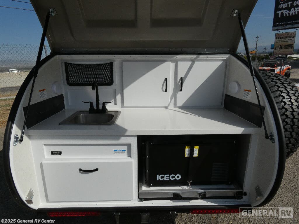 Modern Buggy RV Little Buggy teardrop trailer 12LRK highlights: Dual Entry Fireplace Memory Foam Mattress Heavy Duty Roof Rack 14" Ground Clearance Take this Little Buggy wherever the road leads you! There is sleeping space for two adults on a comfy 6" memory foam mattress, and storage for your necessities with three cubbies and four enclosed cabinets inside, all built with premium birch wood. More storage can be found in the front exterior box made of steel for either your clothing, dry food, or gear. The mattress easily converts to a sofa which is perfect for daytime relaxing. Also inside, you will enjoy a fireplace to warm you right up on those cool summer evenings or crisp, fall mornings, and the HD TV will entertain you when the weather keeps you indoors. The roof top carriage rack allows you to carry your paddle boards, bikes, or more camping gear. With the Little Buggy teardrop trailer by Modern Buggy RV, you will have all-terrain tires with 14" ground clearance allowing you to venture on bumpy, muddy and off-the-beaten path roads. Full of modern amenities including LED lights, outlets, and USB charging stations. And the teardrop is built on an industrial strength, custom aluminum frame, and is put together with AZDEL walls and a custom aluminum luggage rack with 600 lbs. of support. Get out and explore today with the Little Buggy that meant to climb on and carry all of your gear for any adventure you dream, and it can be towed behind a car!