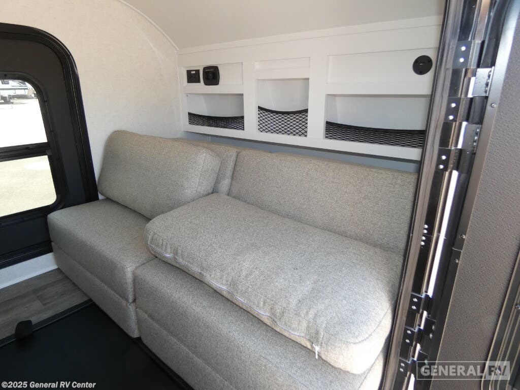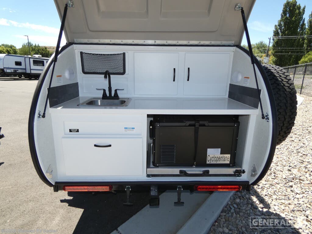 Modern Buggy RV Little Buggy teardrop trailer 12LRK highlights: Dual Entry Fireplace Memory Foam Mattress Heavy Duty Roof Rack 14" Ground Clearance Take this Little Buggy wherever the road leads you! There is sleeping space for two adults on a comfy 6" memory foam mattress, and storage for your necessities with three cubbies and four enclosed cabinets inside, all built with premium birch wood. More storage can be found in the front exterior box made of steel for either your clothing, dry food, or gear. The mattress easily converts to a sofa which is perfect for daytime relaxing. Also inside, you will enjoy a fireplace to warm you right up on those cool summer evenings or crisp, fall mornings, and the HD TV will entertain you when the weather keeps you indoors. The roof top carriage rack allows you to carry your paddle boards, bikes, or more camping gear. With the Little Buggy teardrop trailer by Modern Buggy RV, you will have all-terrain tires with 14" ground clearance allowing you to venture on bumpy, muddy and off-the-beaten path roads. Full of modern amenities including LED lights, outlets, and USB charging stations. And the teardrop is built on an industrial strength, custom aluminum frame, and is put together with AZDEL walls and a custom aluminum luggage rack with 600 lbs. of support. Get out and explore today with the Little Buggy that meant to climb on and carry all of your gear for any adventure you dream, and it can be towed behind a car!