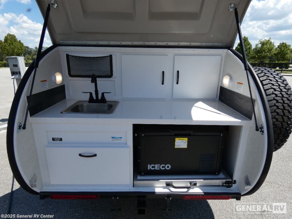 Modern Buggy RV Little Buggy teardrop trailer 12LRK highlights: Dual Entry Fireplace Memory Foam Mattress Heavy Duty Roof Rack 14" Ground Clearance Take this Little Buggy wherever the road leads you! There is sleeping space for two adults on a comfy 6" memory foam mattress, and storage for your necessities with three cubbies and four enclosed cabinets inside, all built with premium birch wood. More storage can be found in the front exterior box made of steel for either your clothing, dry food, or gear. The mattress easily converts to a sofa which is perfect for daytime relaxing. Also inside, you will enjoy a fireplace to warm you right up on those cool summer evenings or crisp, fall mornings, and the HD TV will entertain you when the weather keeps you indoors. The roof top carriage rack allows you to carry your paddle boards, bikes, or more camping gear. With the Little Buggy teardrop trailer by Modern Buggy RV, you will have all-terrain tires with 14" ground clearance allowing you to venture on bumpy, muddy and off-the-beaten path roads. Full of modern amenities including LED lights, outlets, and USB charging stations. And the teardrop is built on an industrial strength, custom aluminum frame, and is put together with AZDEL walls and a custom aluminum luggage rack with 600 lbs. of support. Get out and explore today with the Little Buggy that meant to climb on and carry all of your gear for any adventure you dream, and it can be towed behind a car!