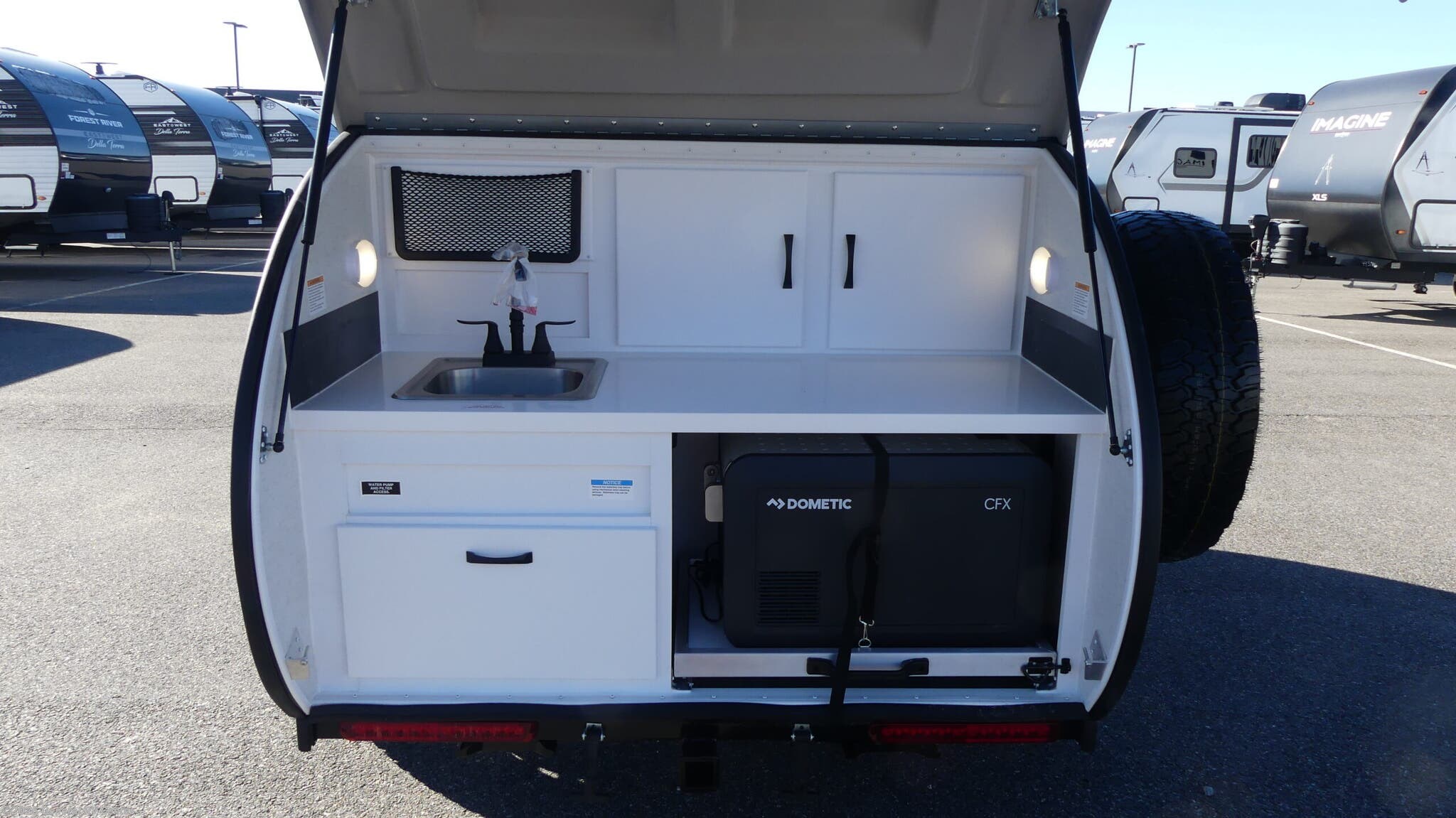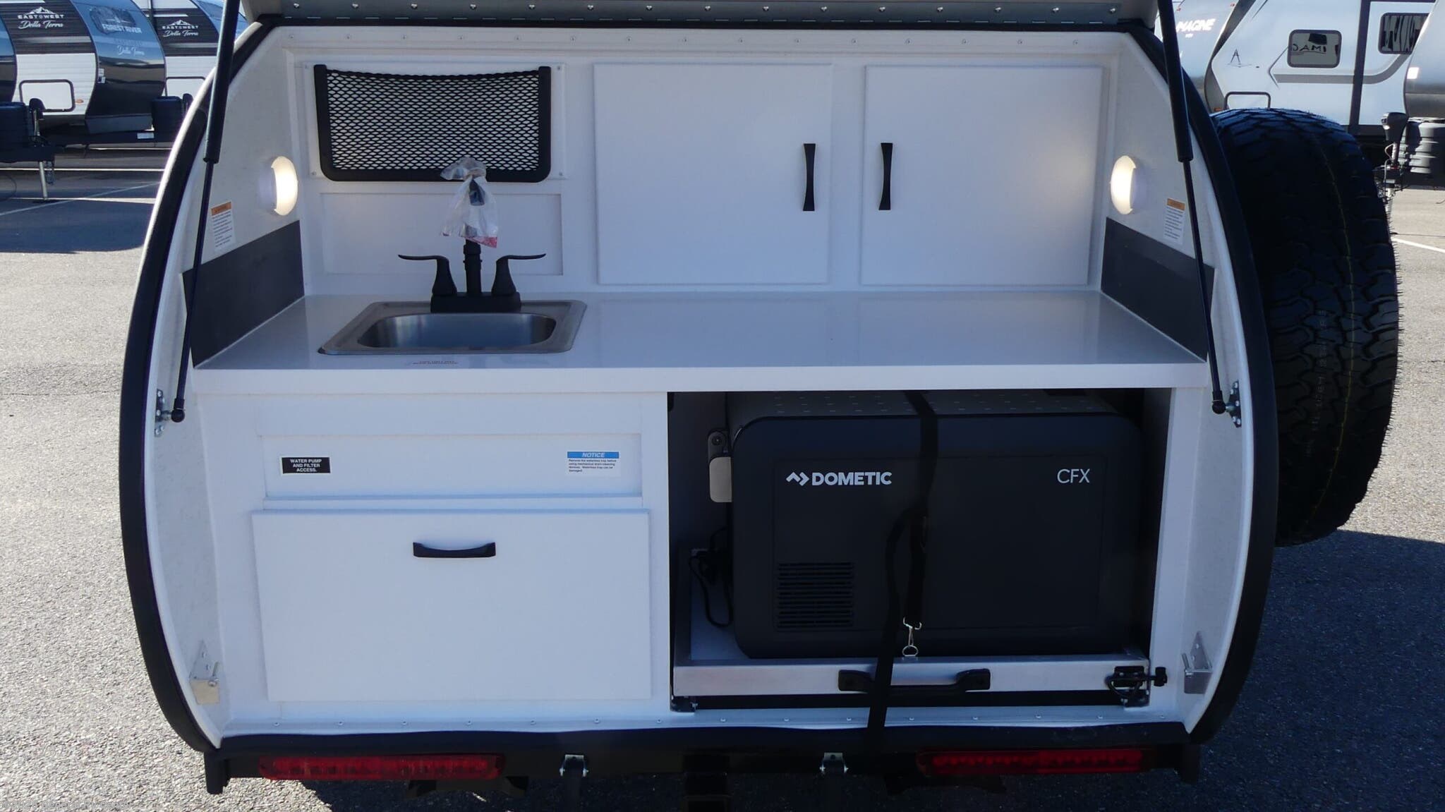 Modern Buggy RV Little Buggy teardrop trailer 12LRK highlights: Dual Entry Fireplace Memory Foam Mattress Heavy Duty Roof Rack 14" Ground Clearance Take this Little Buggy wherever the road leads you! There is sleeping space for two adults on a comfy 6" memory foam mattress, and storage for your necessities with three cubbies and four enclosed cabinets inside, all built with premium birch wood. More storage can be found in the front exterior box made of steel for either your clothing, dry food, or gear. The mattress easily converts to a sofa which is perfect for daytime relaxing. Also inside, you will enjoy a fireplace to warm you right up on those cool summer evenings or crisp, fall mornings, and the HD TV will entertain you when the weather keeps you indoors. The roof top carriage rack allows you to carry your paddle boards, bikes, or more camping gear. With the Little Buggy teardrop trailer by Modern Buggy RV, you will have all-terrain tires with 14" ground clearance allowing you to venture on bumpy, muddy and off-the-beaten path roads. Full of modern amenities including LED lights, outlets, and USB charging stations. And the teardrop is built on an industrial strength, custom aluminum frame, and is put together with AZDEL walls and a custom aluminum luggage rack with 600 lbs. of support. Get out and explore today with the Little Buggy that meant to climb on and carry all of your gear for any adventure you dream, and it can be towed behind a car!