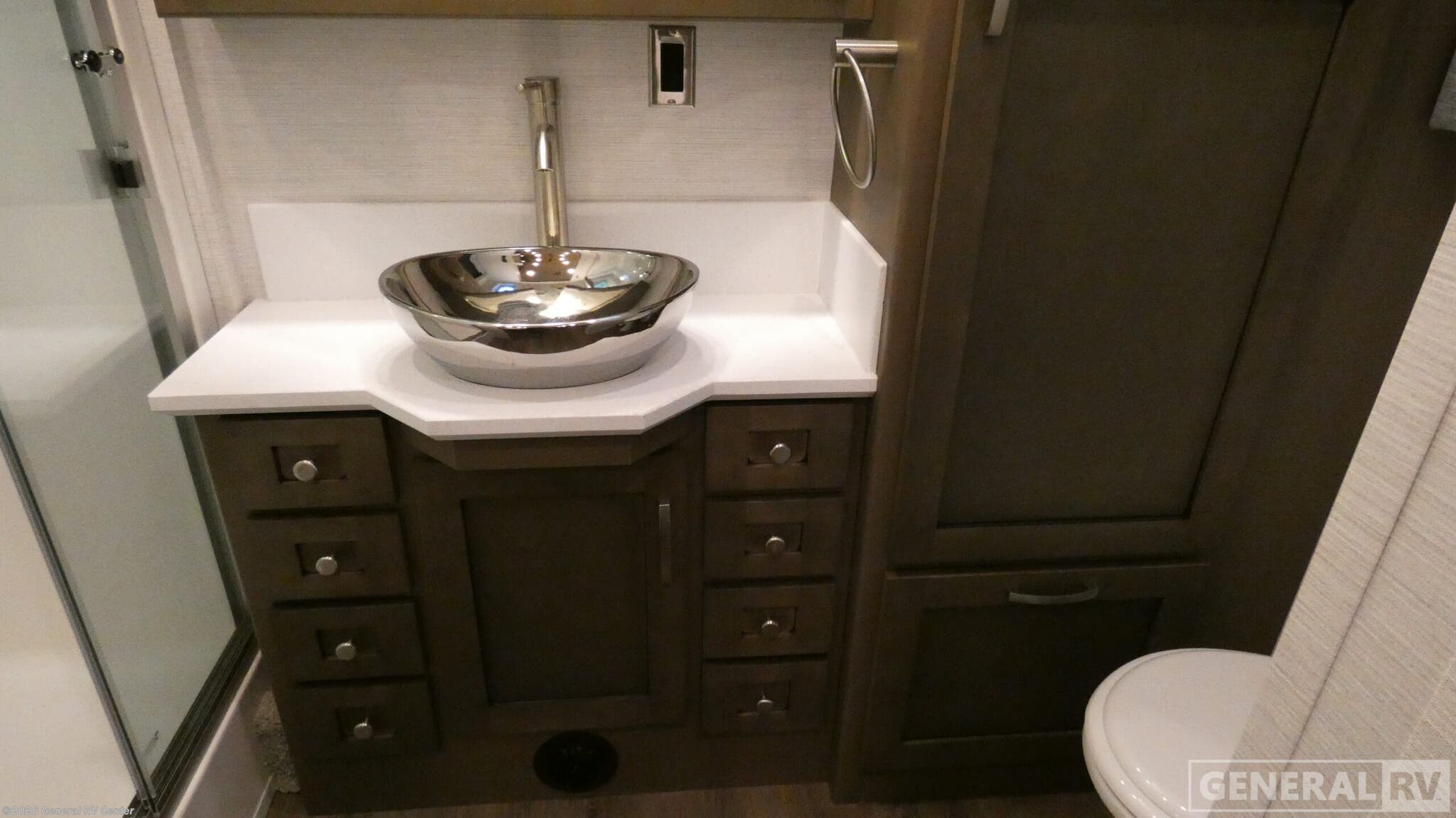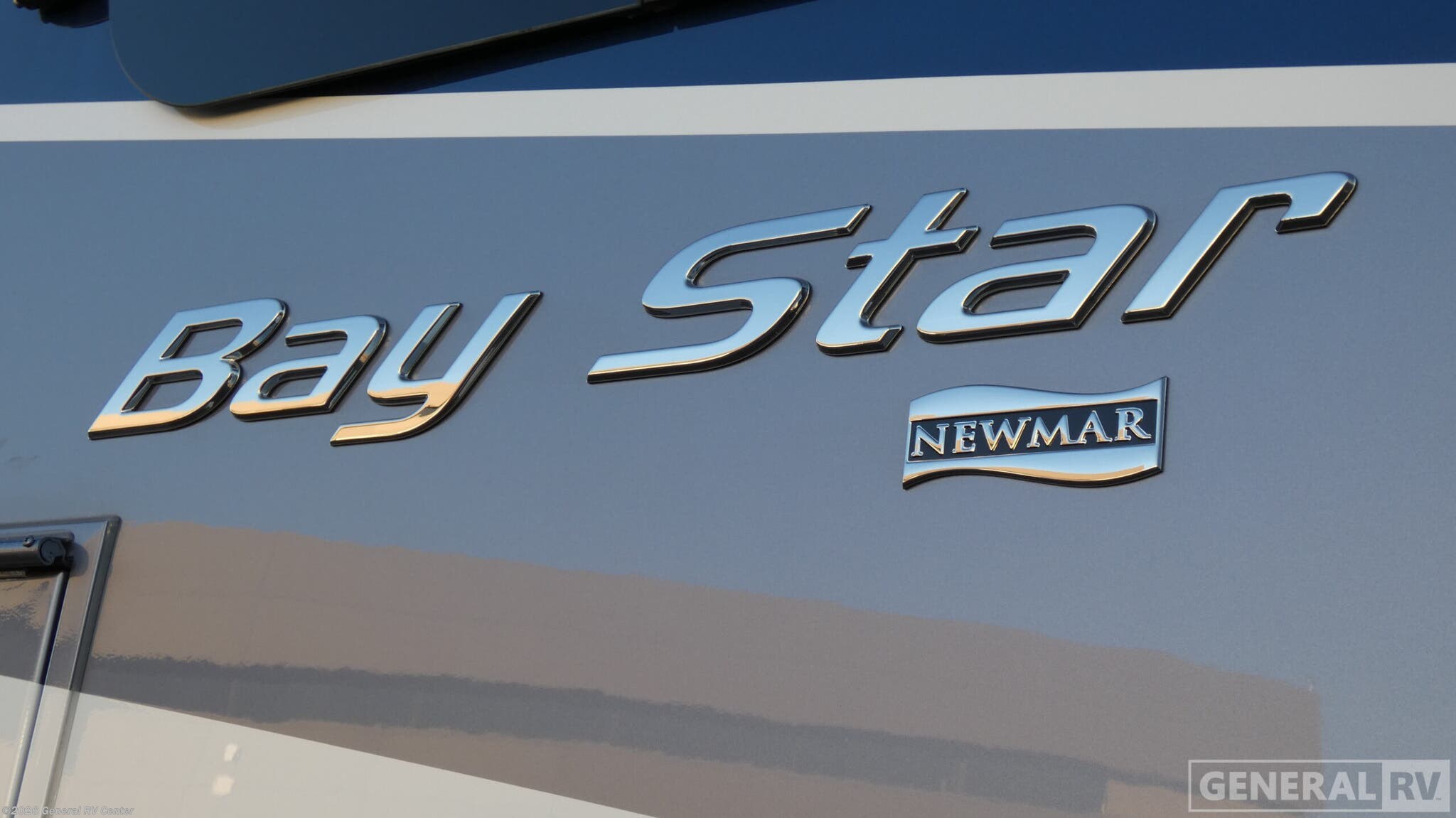 **Newmar Bay Star Class A gas motorhome 3609 highlights:** * Double Slides * Dry Bar with a TV * Bath and a Half * Dual Shirt Wardrobes in Bedroom * Booth Dinette/Sleeper You'll love every minute spent in this spacious coach! Once you park for the day, you can start lunch on the the three burner cooktop or in the convection microwave, and there is a 10 cu. ft. Norcold refrigerator where you can grab a cold drink. There is a comfort lounge sofa and booth dinette/sleeper for comfy seating spaces, and your guests can sleep here at night. Head to the master bedroom where you'll find a king bed slide out, dual shirt wardrobes and a dresser to keep your clothes organized. The full rear bath will let you freshen up in privacy, and the mid-coach half bath will be easily accessible for everyone to use! Each Bay Star Class A gas motorhome by Newmar delivers a smooth ride thanks to the standard electronic stability control, along with the 7.3-liter V8 engine with 335 HP and 468 lb./ft. of torque. The exterior is sure to turn heads with its full-paint Masterpiece Finish and new graphics packages, plus you'll have three interior decor choices and three wood choices to truly make the coach your own. Each model includes Williamsburg furniture, woven material in the slide outs, luxurious vinyl plank flooring, polished solid surface countertops in the kitchen, plus many more comforts. Head outside to find lights in the storage compartments, a 5.5kW Cummins Onan generator with remote switch, and hydraulic leveling jacks with a Bluetooth compatible touch pad for set up easy as 1-2-3!