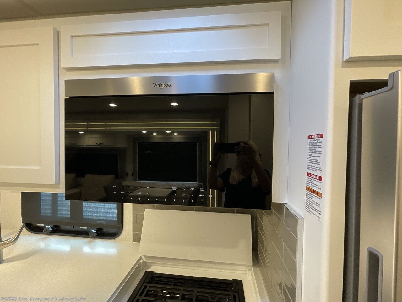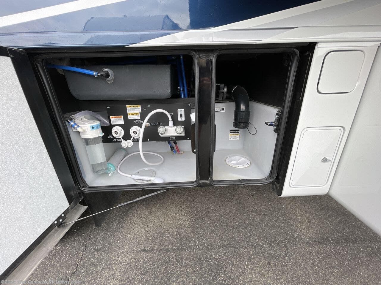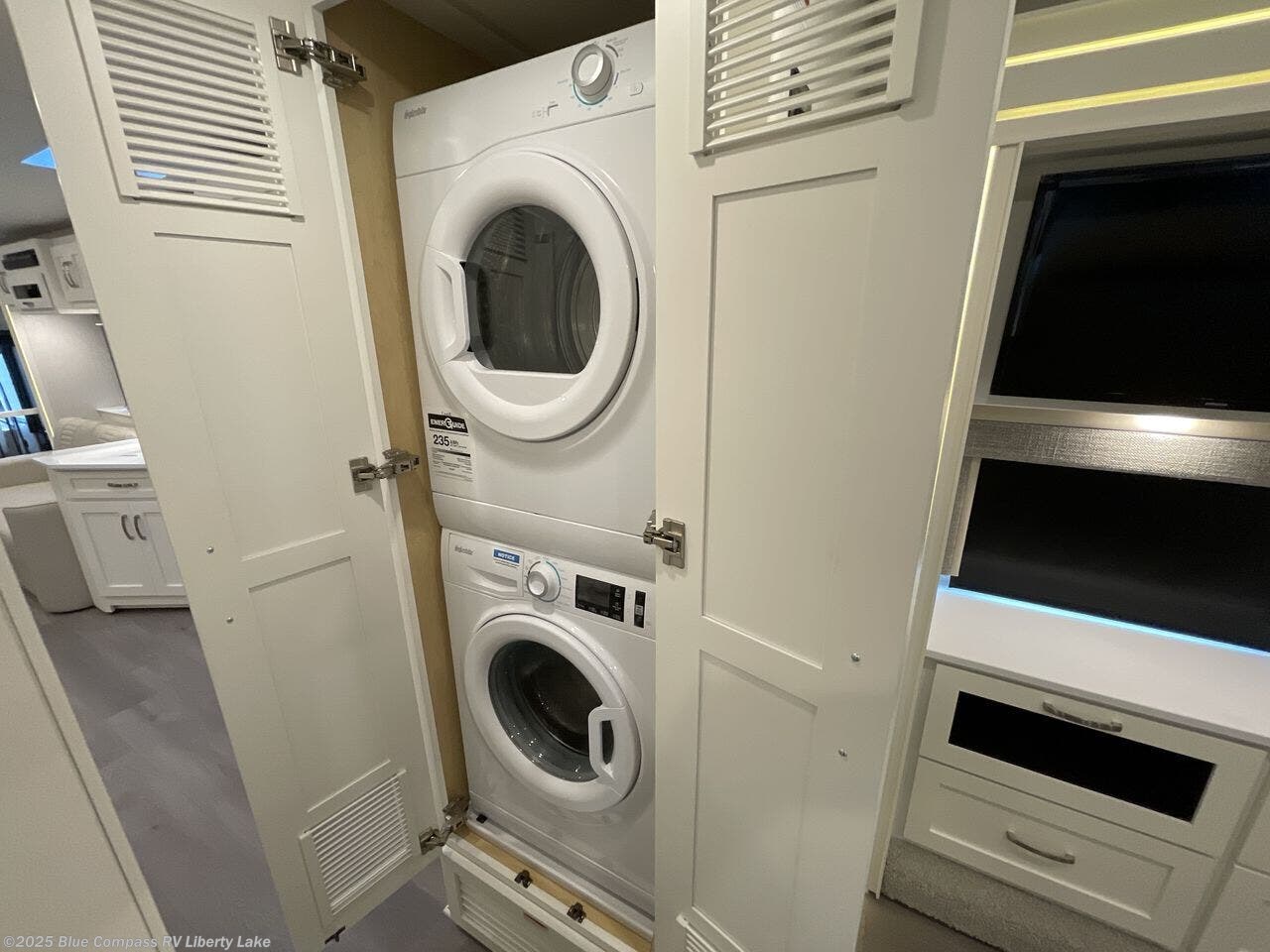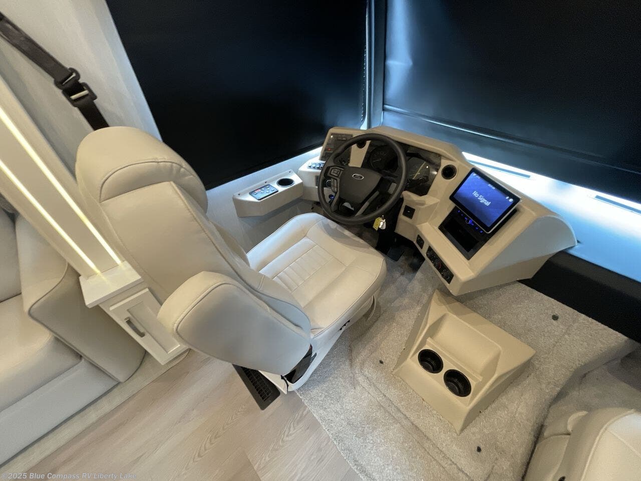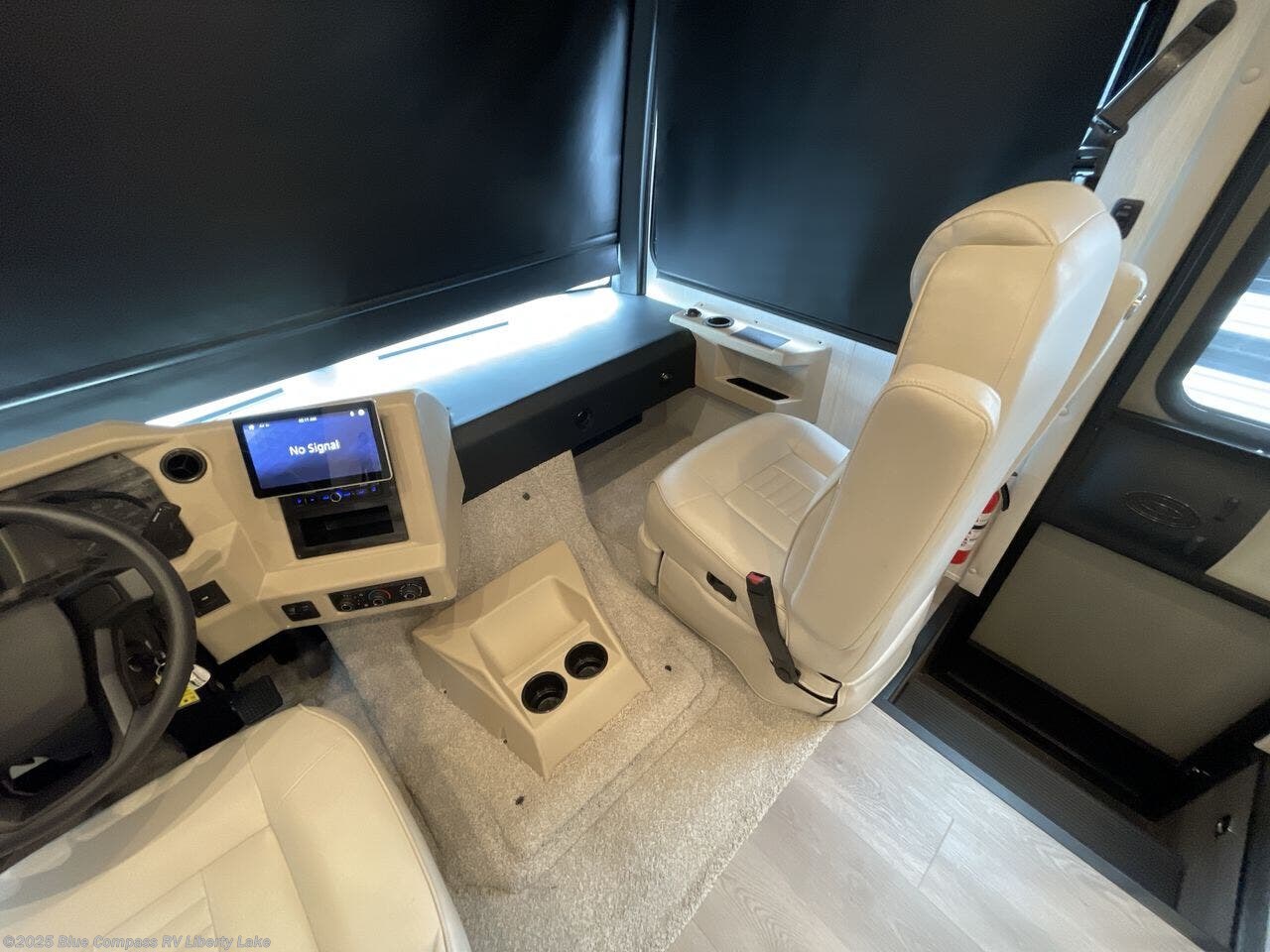 Four slide outs make this motorhome both spacious and comfortable for all your excursions! The USB charger at the passenger area will be a big plus if you need to telecommute on the way to the campground, and your guests can stay comfortable on the two comfort lounge sofas or the booth dinette. This model includes a wardrobe right across from the full bath that can be optioned out for an optional Splendide stacked washer and dryer, and the rear private bedroom will feel just like home with its king bed and shirt wardrobe. There is even a bedroom LED TV, along with the living room LED TV on power lift!