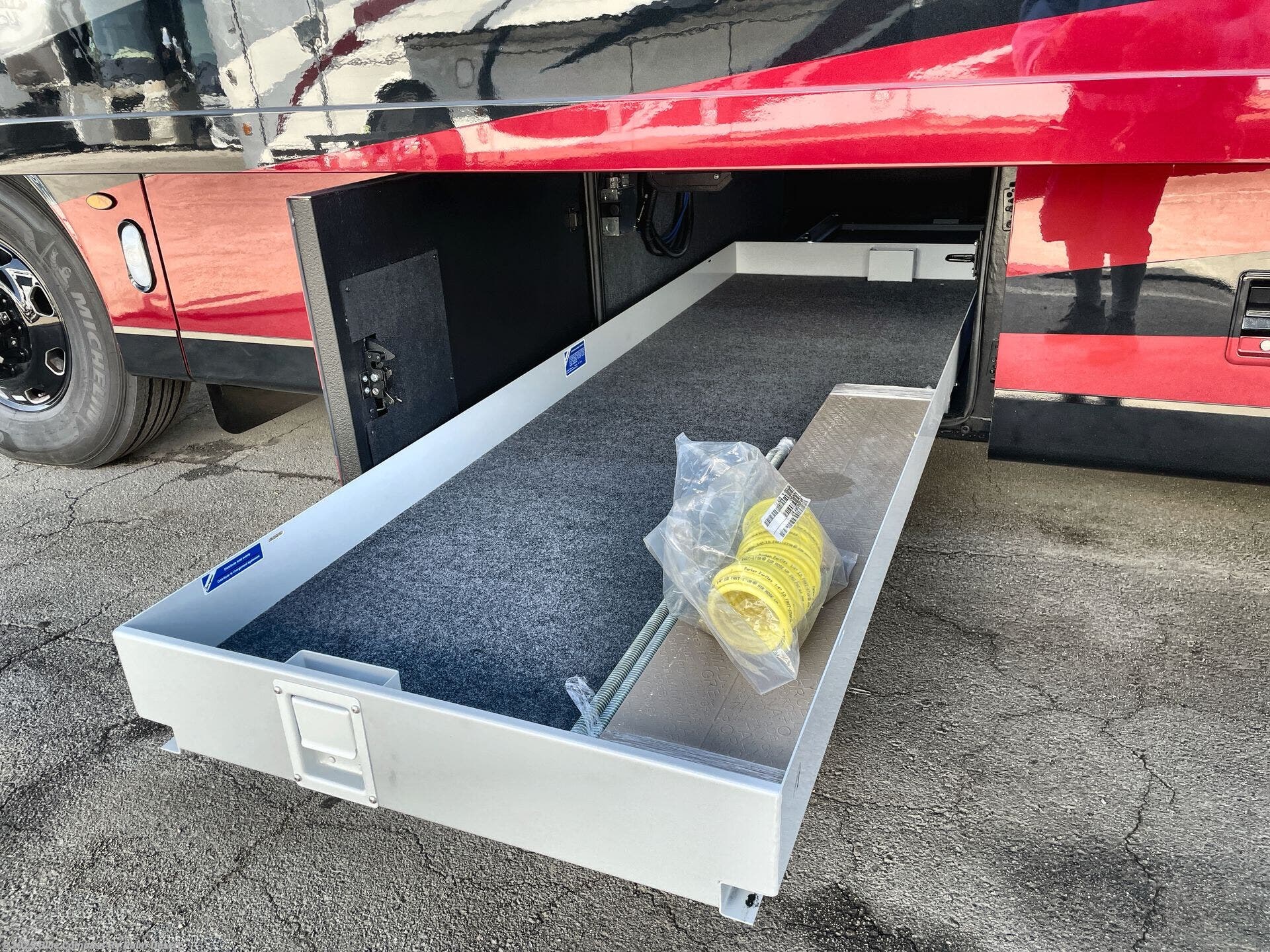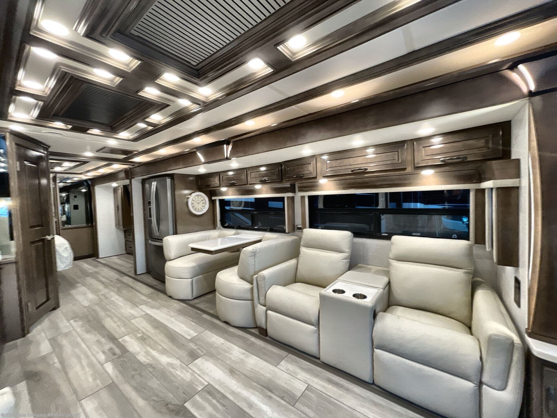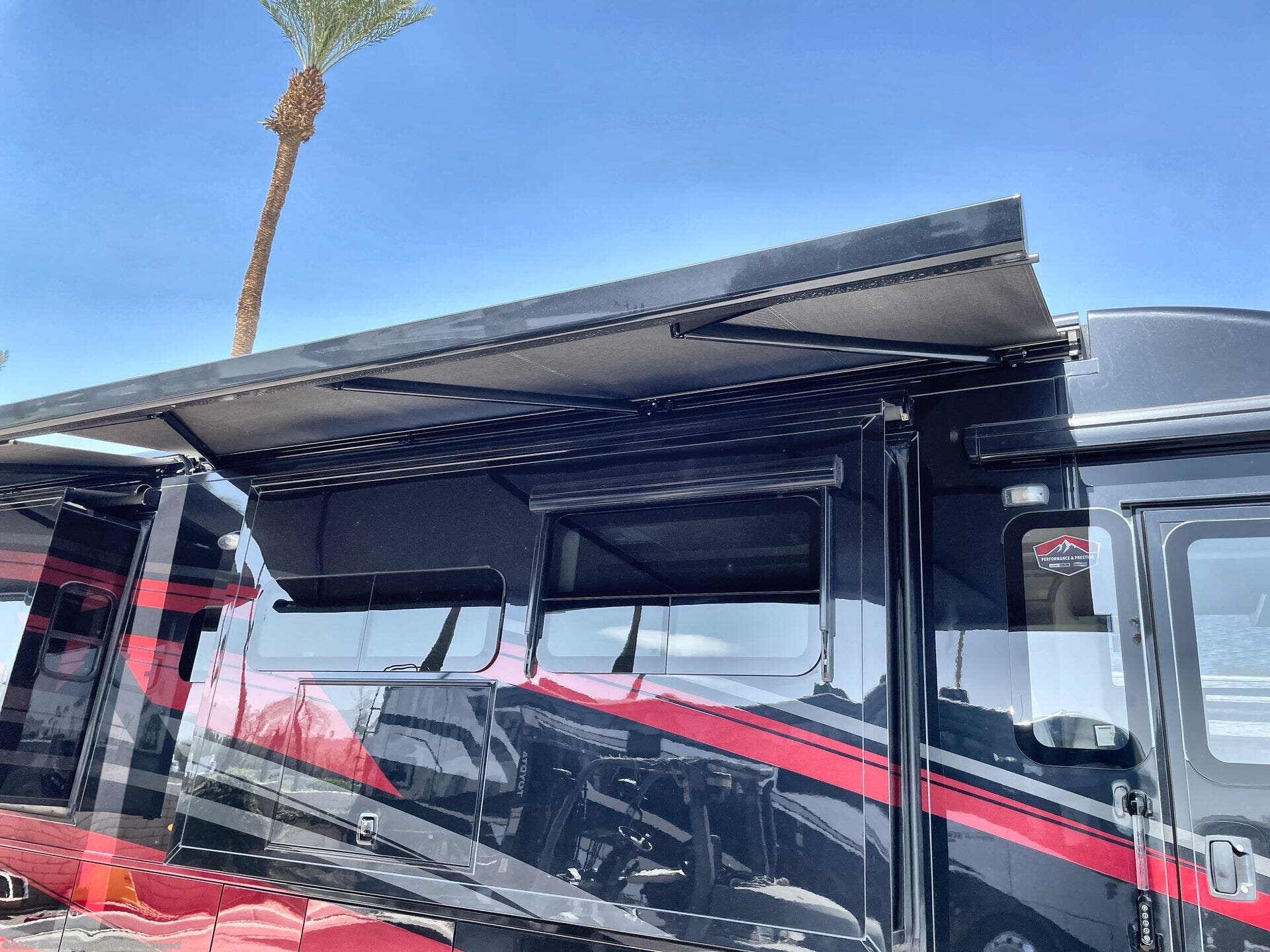 This luxurious and spacious Dutch Star Class A diesel motorhome is perfect for your family of six. The full rear bath features a cathedral ceiling with added height you are sure to appreciate, and the mid-coach half bath is great for your guests. The full-wall slide plus two additional slides provide ample interior space so that the kids can play with the dog on the floor. The kitchen also includes an all-electric flush mount induction cooktop, a stainless steel convection microwave with an air fryer feature, and a spacious Whirlpool 19.7 cu. ft. refrigerator for ample food storage. Whether you're dining at the free-standing dinette, taking a rest on the king bed slide, or enjoying some fresh air under the Girard G2000 power side awning with LED lights, you will fall in love with this home-on-wheels!