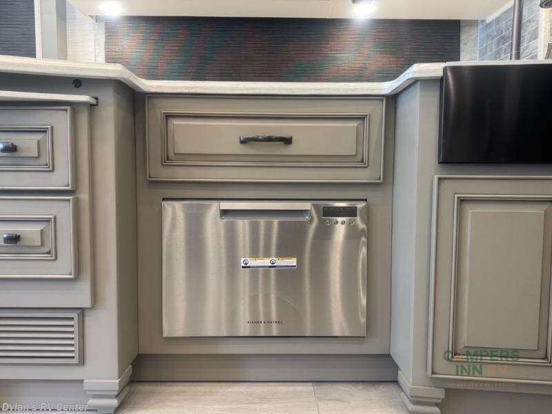 Are you looking to upgrade your motorhome to a more luxurious unit? Look no further than this Dutch Star Class A diesel motorhome. You will love the space provided by the full-wall slide and two additional slides, plus the rear bath cathedral ceiling will add extra height. Take a rest on the pillowtop king bed or relax on the hide-a-bed sofa. There is a passenger workstation and a hide-a-leaf dinette if you're needing to get some work done while on vacation, and the power awning outside will provide shade if you're wanting to work in fresh air. Don't worry about stopping for food because this model includes a Whirlpool 19.7-cu. ft. refrigerator that will allow you to stock up for the week, and you can cook with the all-electric induction cooktop or stainless steel convection microwave with an air fryer feature! Specifications shown are with the standard Freightliner tag axle chassis. See dealer for details if optional Spartan K2 tag axle chassis is selected.