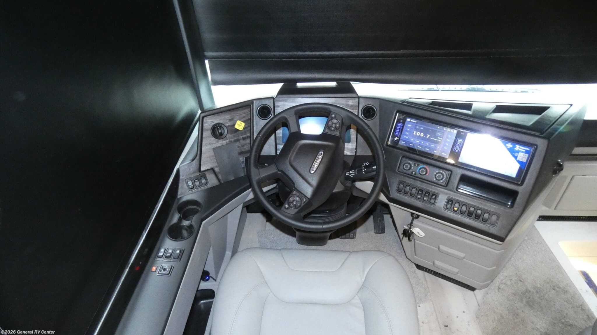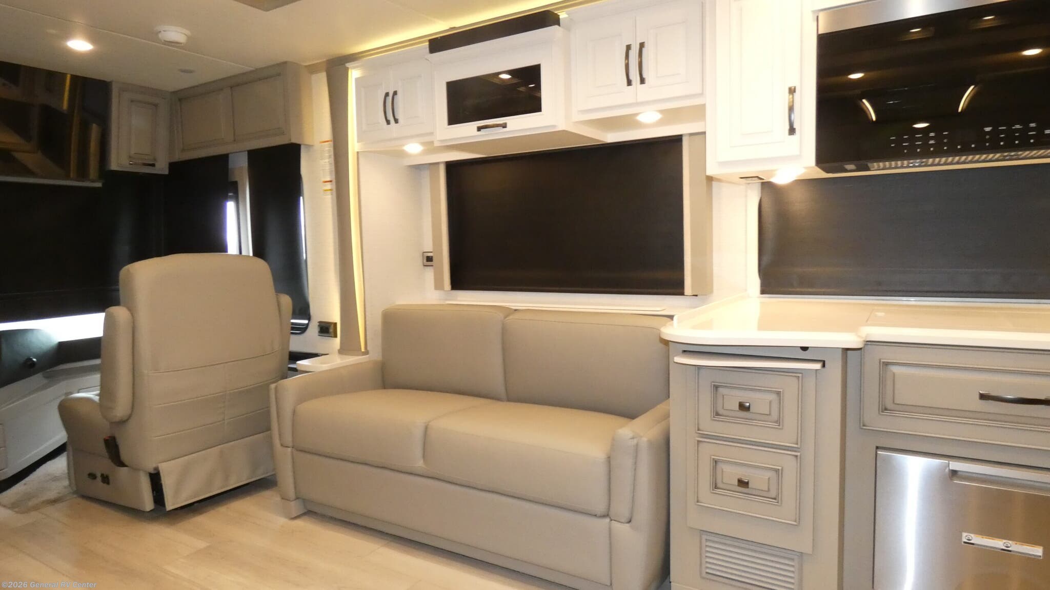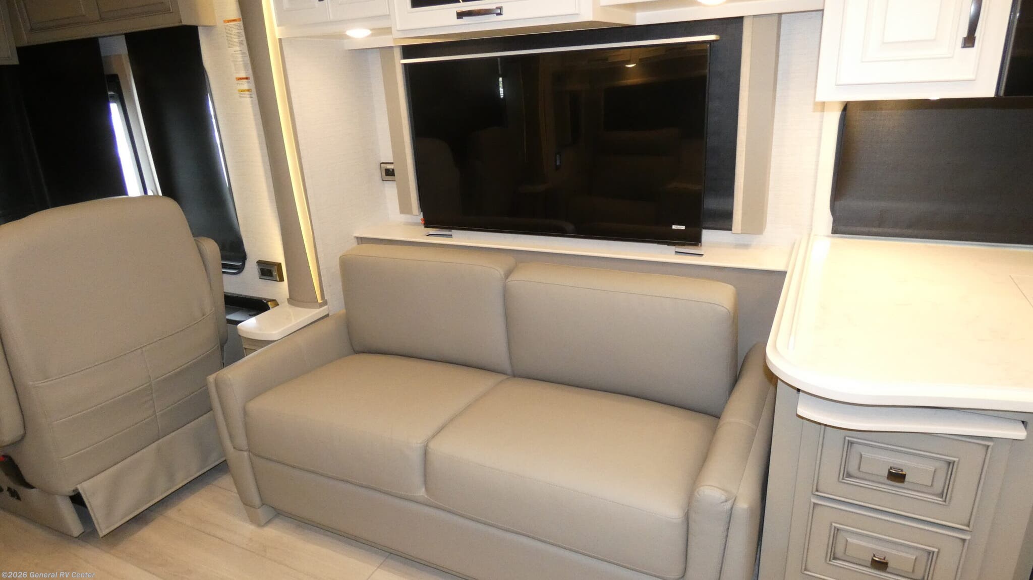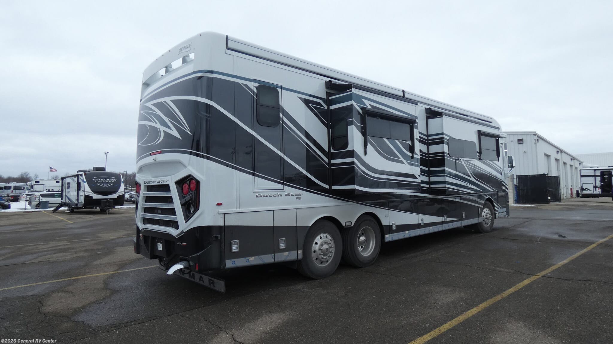 The 2026 Newmar Dutch Star 4081 is a luxurious diesel pusher that redefines comfort and style on the road. At nearly 41 feet long, this RV is a masterpiece of design and engineering, built on a sturdy Freightliner XC-Series chassis and powered by a robust Cummins I6 engine with 450 horsepower and 1250 lb-ft of torque. The spacious interior is enhanced by three slides, providing ample room for relaxation and entertainment. The front living area features a jackknife sofa and a side hide-a-bed sofa, perfect for accommodating up to six sleepers. The centerpiece is a stunning king-sized bed in the center bedroom, ensuring restful nights after a day of adventure. Step into the heart of the Dutch Star, where a center kitchen awaits with top-of-the-line amenities, including a two-burner cooktop and a full-size electric refrigerator. The convection cooking capability and hide-a-leaf dinette make meal preparation and dining a delight. The rear and center bath areas are thoughtfully designed with high-quality fixtures and a washer/dryer for added convenience. With a fresh water capacity of 105 gallons and a powered retractable awning, this RV is ready for extended journeys. Whether you're cruising down the highway or parked at a scenic spot, the Dutch Star 4081 offers unmatched luxury and functionality. For more details, visit your nearest General RV dealership.