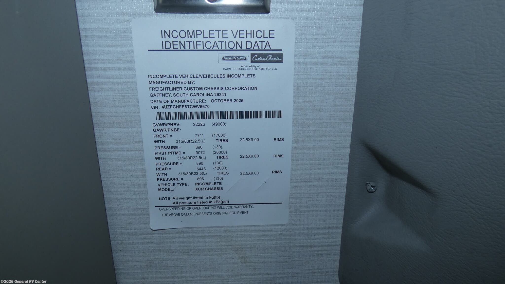- VIN4UZFCHFE6TCWV5670