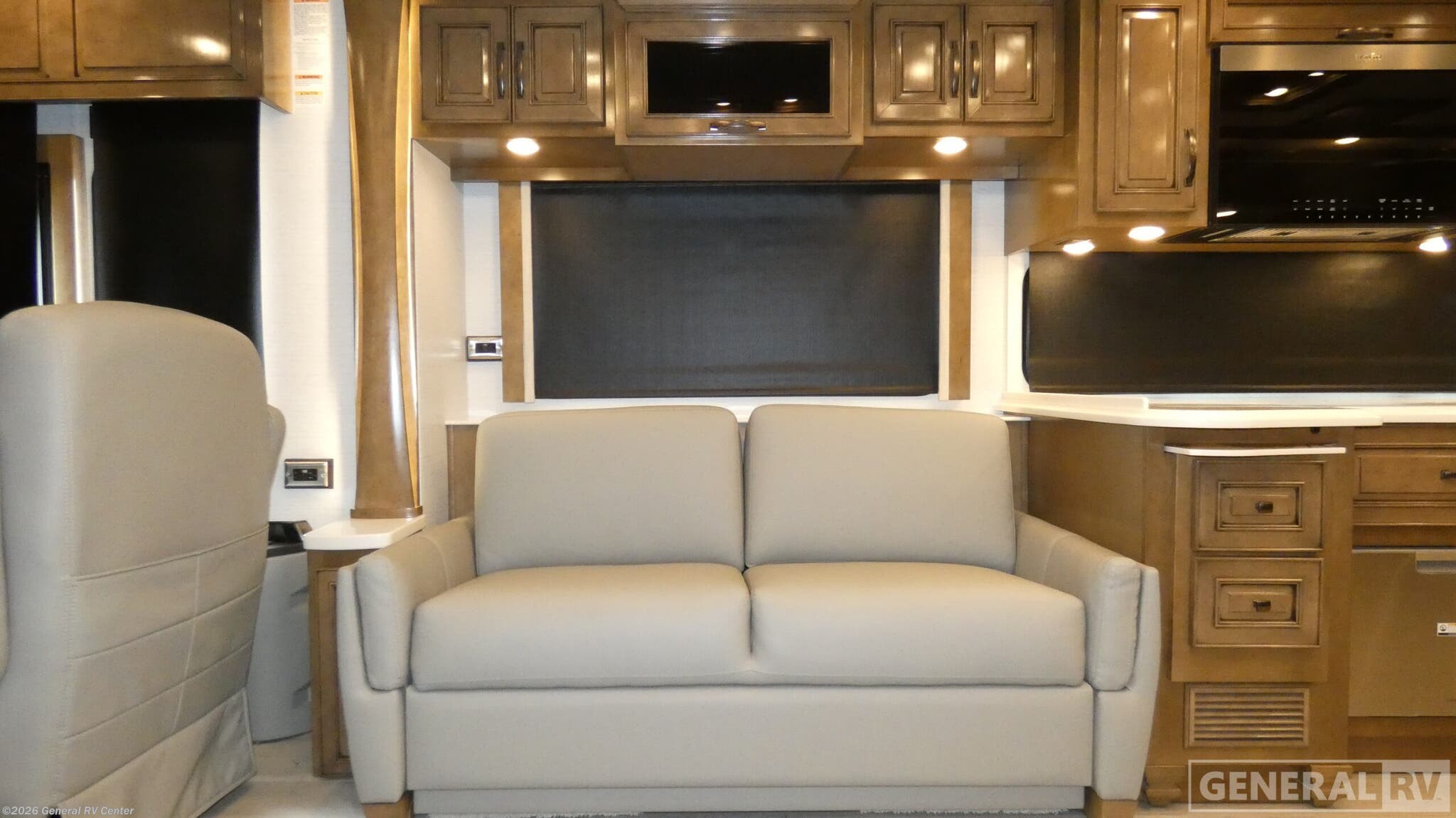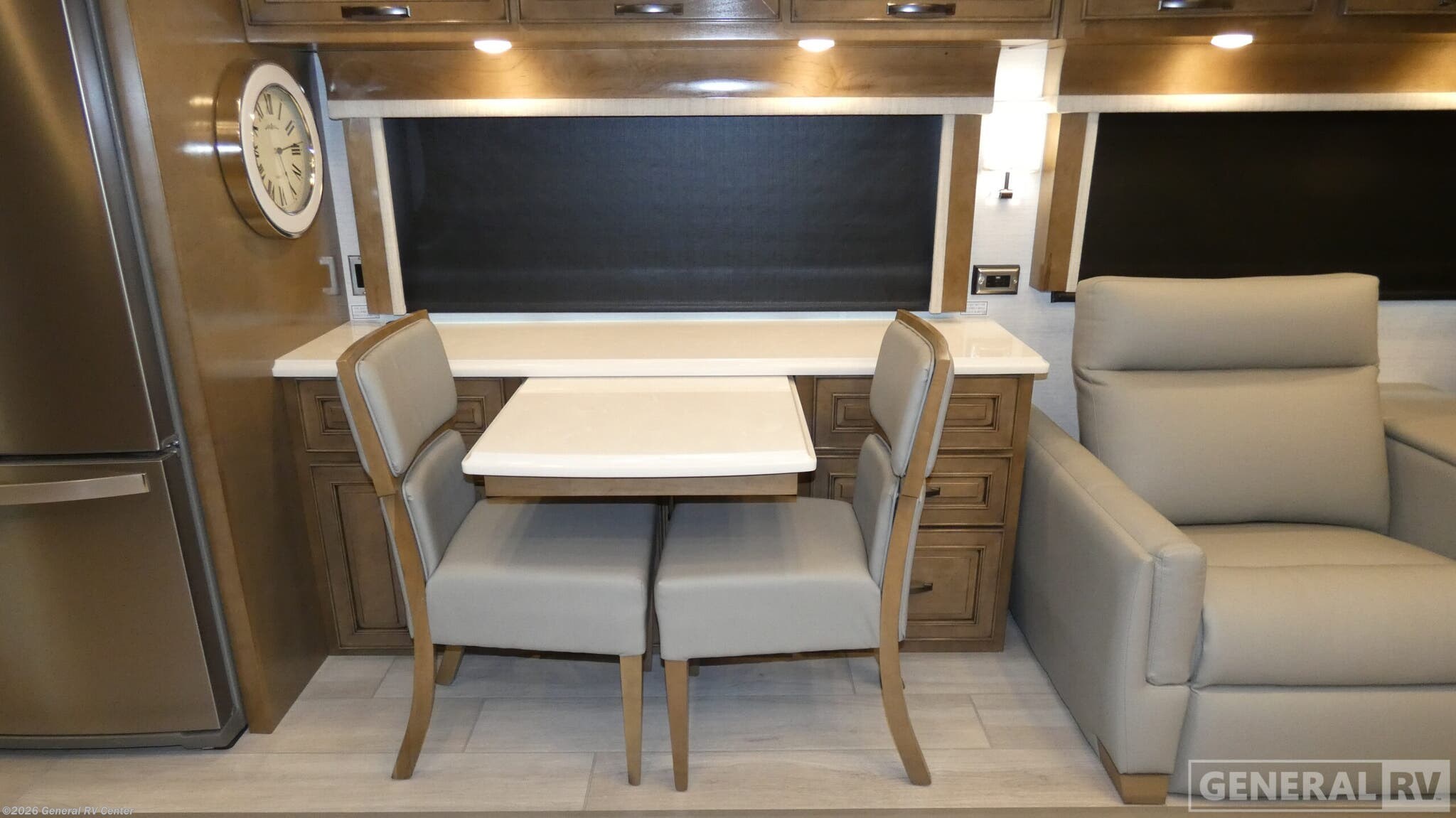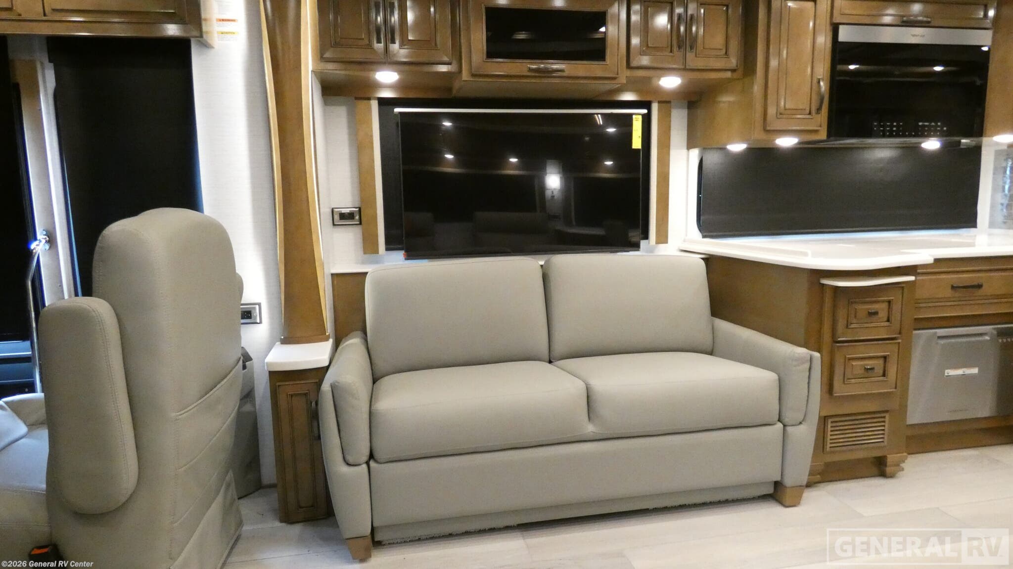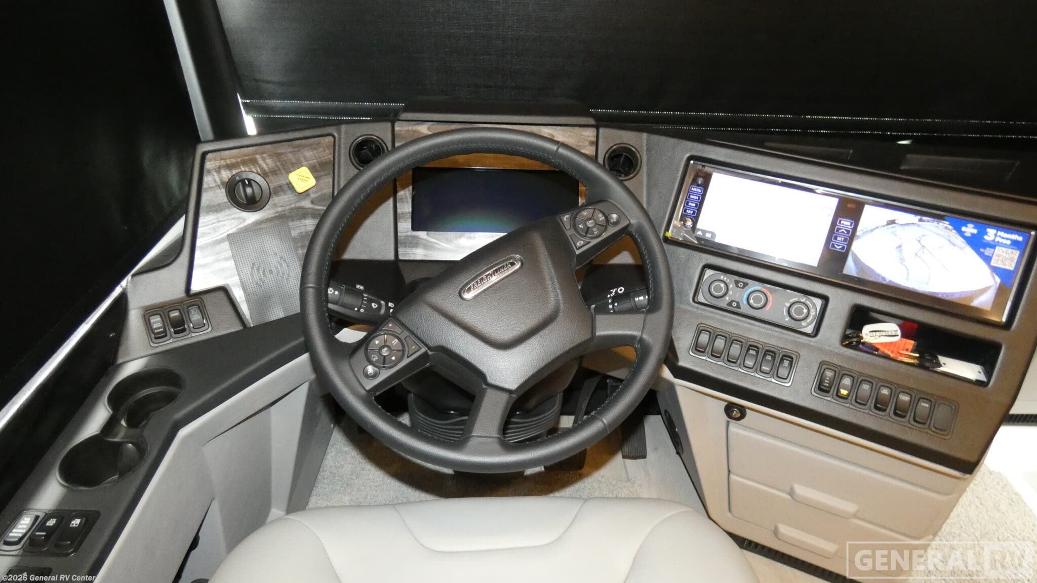 The 2026 Newmar Dutch Star 4081 is a luxurious diesel pusher that redefines comfort and style on the road. At nearly 41 feet long, this RV is a masterpiece of design and engineering, built on a sturdy Freightliner XC-Series chassis and powered by a robust Cummins I6 engine with 450 horsepower and 1250 lb-ft of torque. The spacious interior is enhanced by three slides, providing ample room for relaxation and entertainment. The front living area features a jackknife sofa and a side hide-a-bed sofa, perfect for accommodating up to six sleepers. The centerpiece is a stunning king-sized bed in the center bedroom, ensuring restful nights after a day of adventure. Step into the heart of the Dutch Star, where a center kitchen awaits with top-of-the-line amenities, including a two-burner cooktop and a full-size electric refrigerator. The convection cooking capability and hide-a-leaf dinette make meal preparation and dining a delight. The rear and center bath areas are thoughtfully designed with high-quality fixtures and a washer/dryer for added convenience. With a fresh water capacity of 105 gallons and a powered retractable awning, this RV is ready for extended journeys. Whether you're cruising down the highway or parked at a scenic spot, the Dutch Star 4081 offers unmatched luxury and functionality. For more details, visit your nearest General RV dealership.