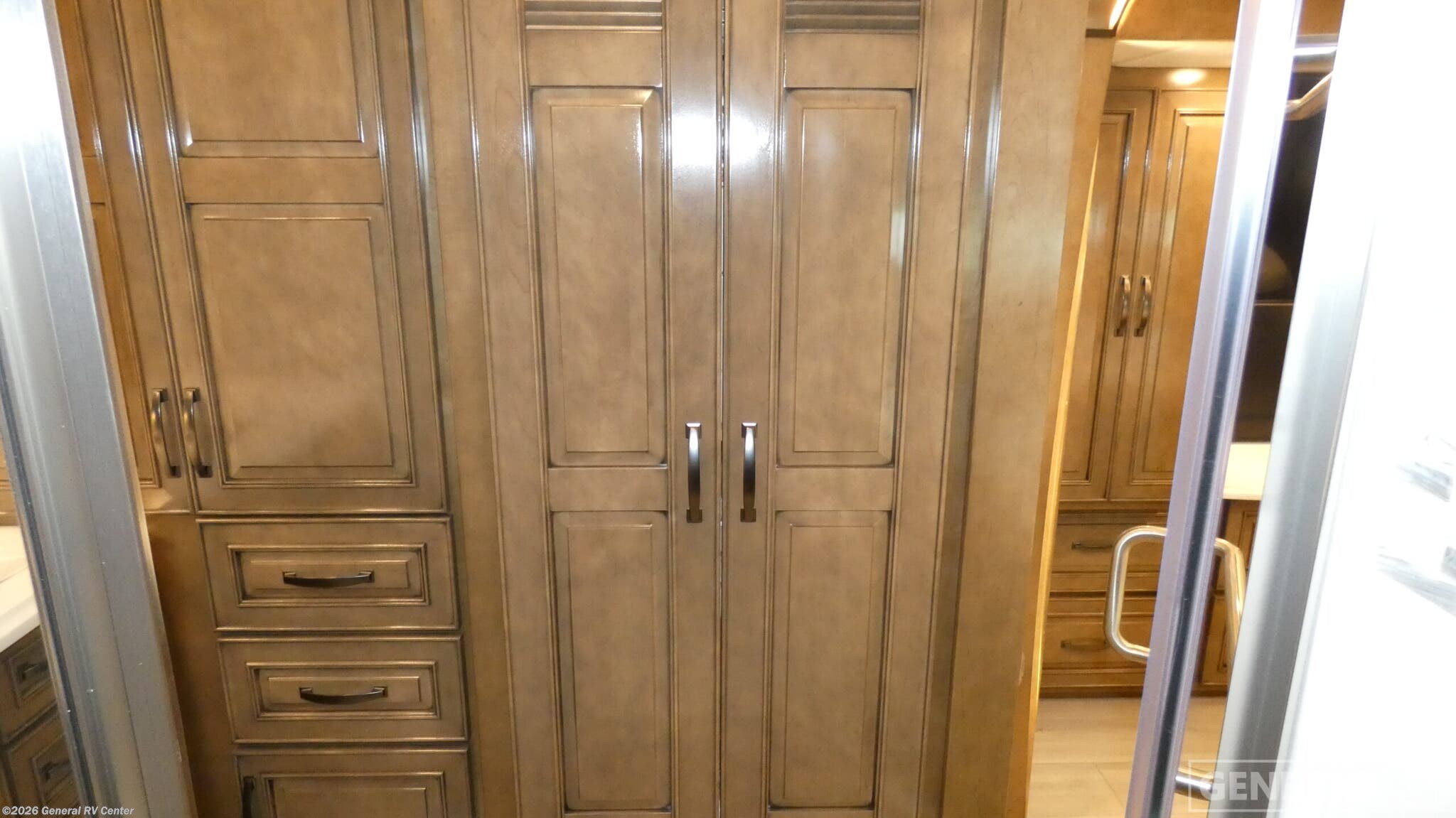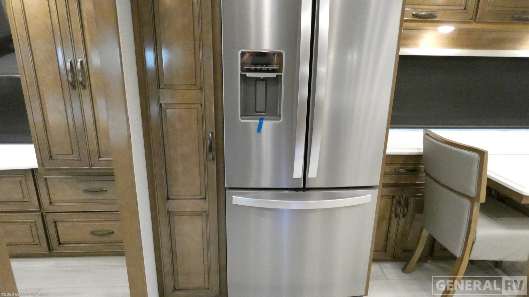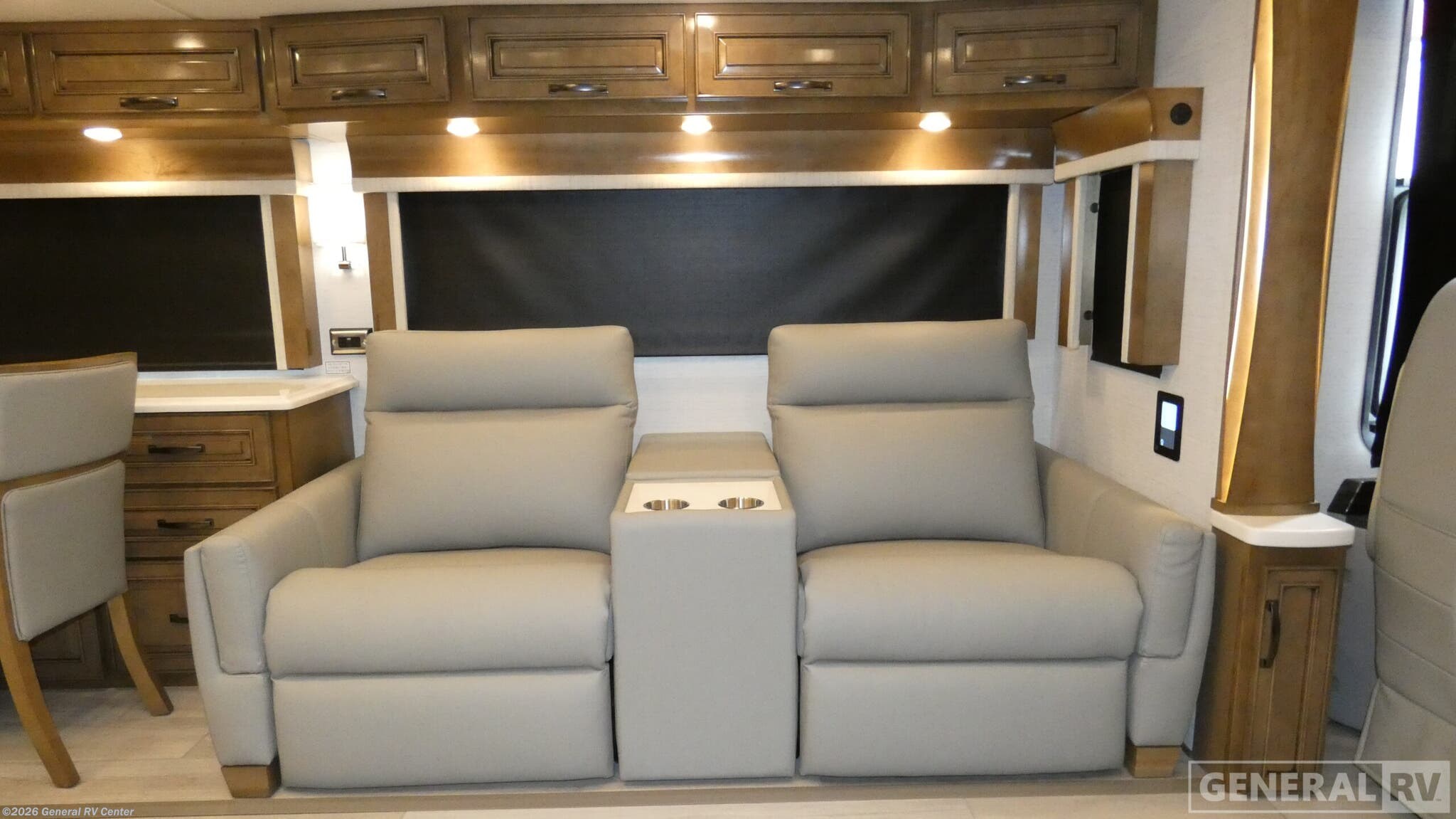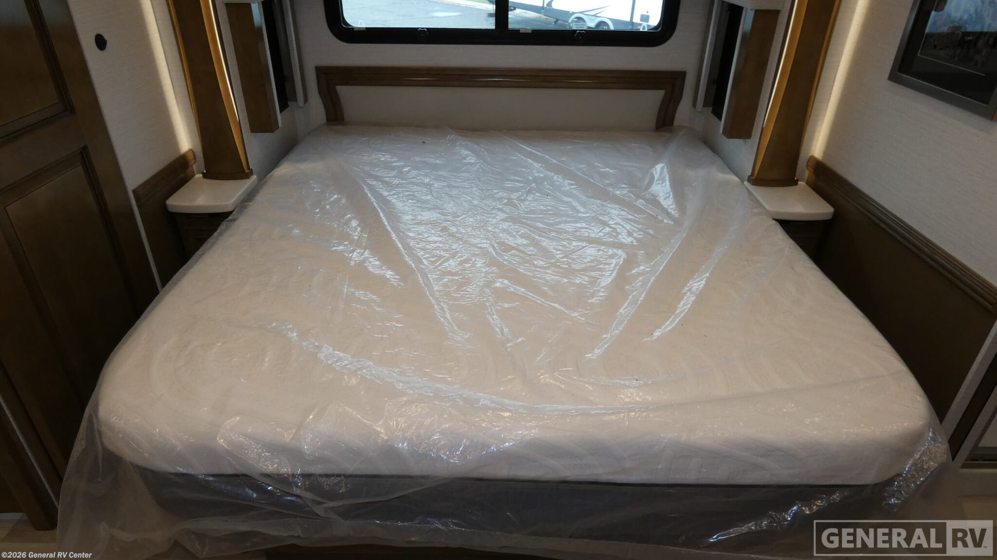The 2026 Newmar Dutch Star 4081 is a luxurious diesel pusher that redefines comfort and style on the road. At nearly 41 feet long, this RV is a masterpiece of design and engineering, built on a sturdy Freightliner XC-Series chassis and powered by a robust Cummins I6 engine with 450 horsepower and 1250 lb-ft of torque. The spacious interior is enhanced by three slides, providing ample room for relaxation and entertainment. The front living area features a jackknife sofa and a side hide-a-bed sofa, perfect for accommodating up to six sleepers. The centerpiece is a stunning king-sized bed in the center bedroom, ensuring restful nights after a day of adventure. Step into the heart of the Dutch Star, where a center kitchen awaits with top-of-the-line amenities, including a two-burner cooktop and a full-size electric refrigerator. The convection cooking capability and hide-a-leaf dinette make meal preparation and dining a delight. The rear and center bath areas are thoughtfully designed with high-quality fixtures and a washer/dryer for added convenience. With a fresh water capacity of 105 gallons and a powered retractable awning, this RV is ready for extended journeys. Whether you're cruising down the highway or parked at a scenic spot, the Dutch Star 4081 offers unmatched luxury and functionality. For more details, visit your nearest General RV dealership.