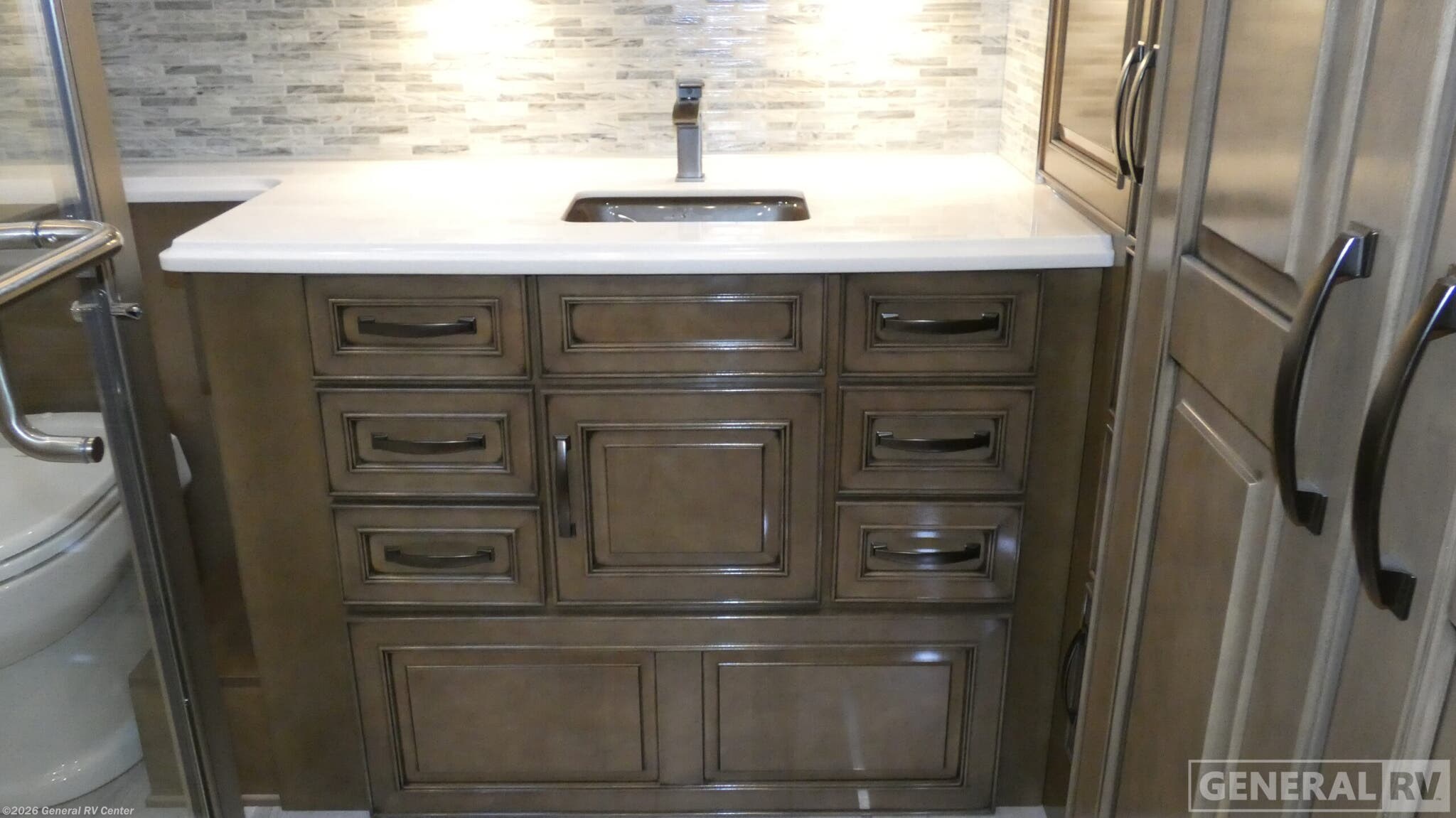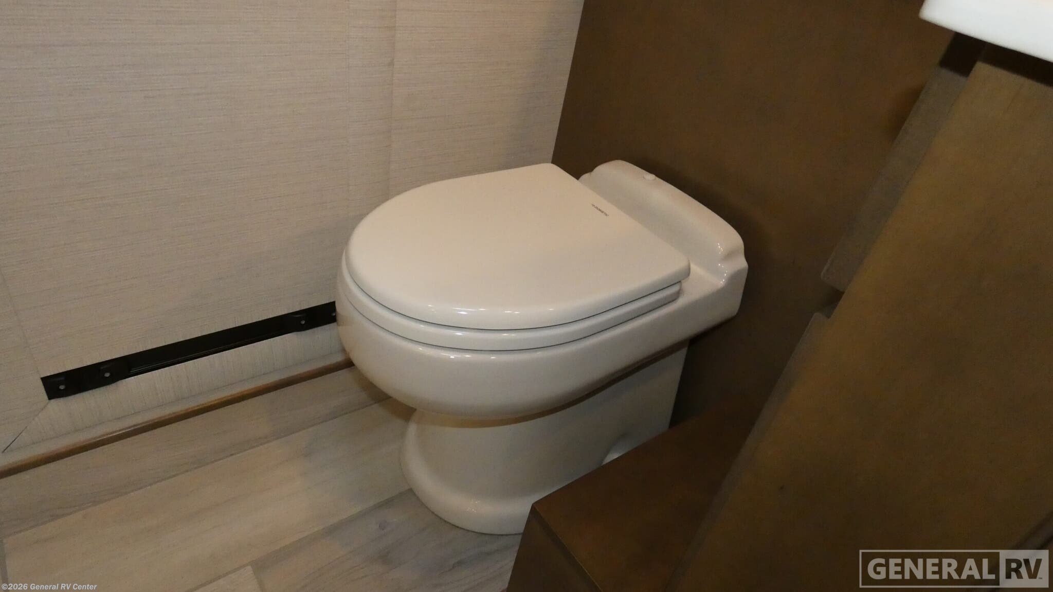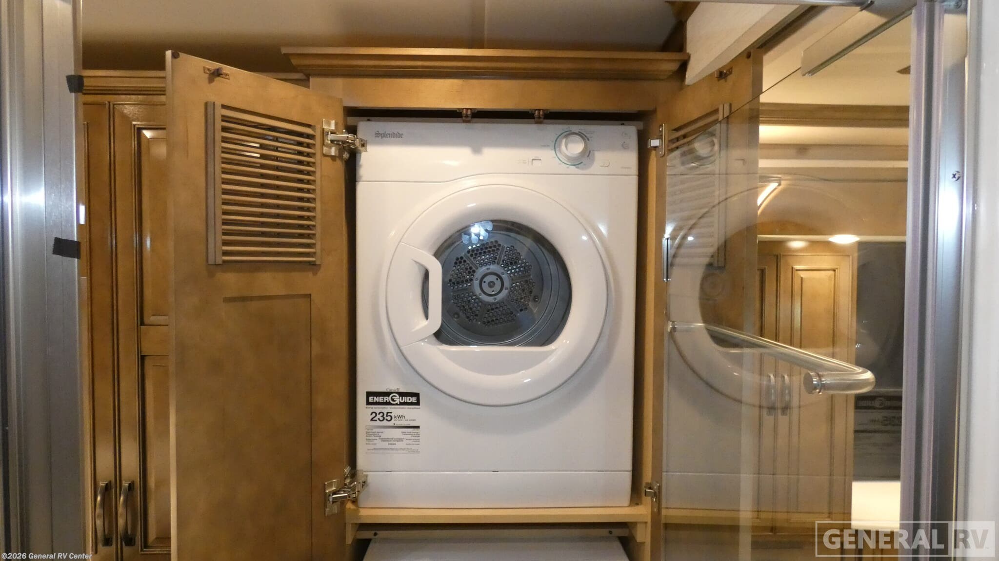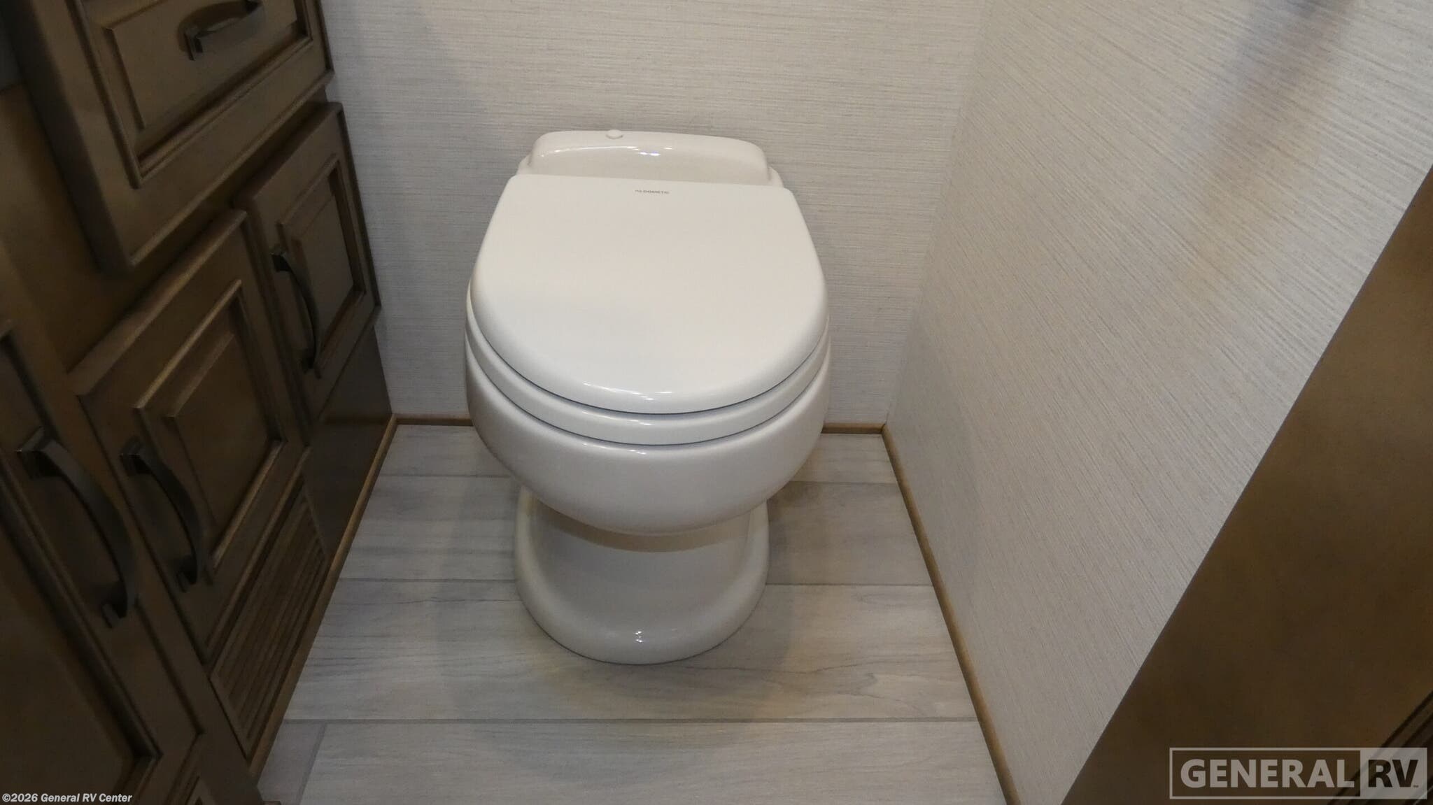The 2026 Newmar Dutch Star 4081 is a luxurious diesel pusher that redefines comfort and style on the road. At nearly 41 feet long, this RV is a masterpiece of design and engineering, built on a sturdy Freightliner XC-Series chassis and powered by a robust Cummins I6 engine with 450 horsepower and 1250 lb-ft of torque. The spacious interior is enhanced by three slides, providing ample room for relaxation and entertainment. The front living area features a jackknife sofa and a side hide-a-bed sofa, perfect for accommodating up to six sleepers. The centerpiece is a stunning king-sized bed in the center bedroom, ensuring restful nights after a day of adventure. Step into the heart of the Dutch Star, where a center kitchen awaits with top-of-the-line amenities, including a two-burner cooktop and a full-size electric refrigerator. The convection cooking capability and hide-a-leaf dinette make meal preparation and dining a delight. The rear and center bath areas are thoughtfully designed with high-quality fixtures and a washer/dryer for added convenience. With a fresh water capacity of 105 gallons and a powered retractable awning, this RV is ready for extended journeys. Whether you're cruising down the highway or parked at a scenic spot, the Dutch Star 4081 offers unmatched luxury and functionality. For more details, visit your nearest General RV dealership.