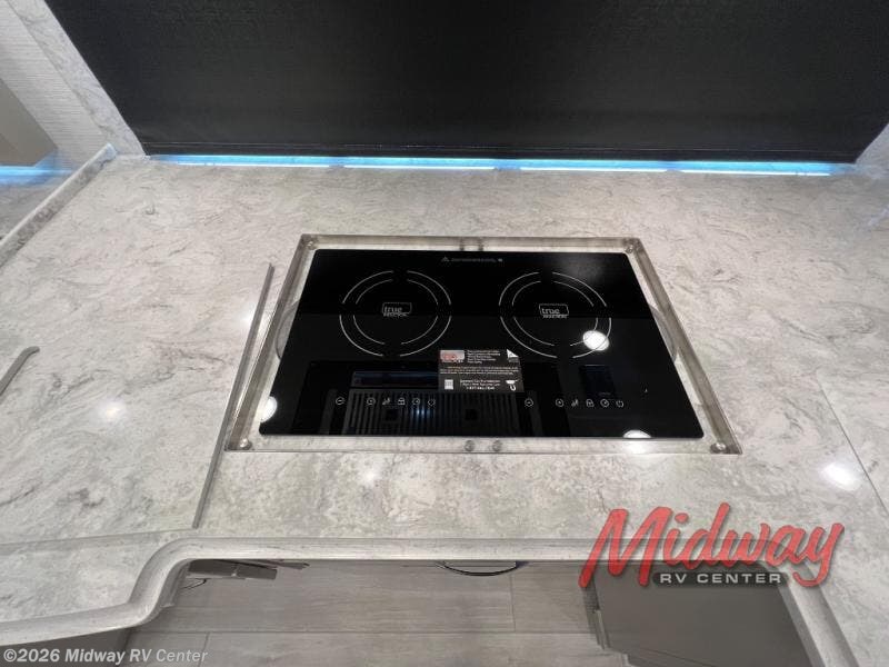 Luxury is waiting for you in this spacious Dutch Star Class A diesel motorhome that can comfortably sleep six each night. The full-wall slide plus two additional slides will open up the whole unit for a more at-home feel. Relax on the hide-a-bed sofa or read a book on the jackknife sofa. The hide-a-leaf dinette will be the perfect place to catch up on some work while you're away from home. Easily prepare breakfast, lunch, and dinner on the all-electric induction cooktop, or use the convenient stainless steel convection microwave with an air fryer feature. This model features a master suite with a pillowtop king bed, dual wardrobes and a dresser, plus an LED TV. You will love the rear bath cathedral ceiling that will add additional height, plus there is plenty of storage space and two bath sinks so that you and your spouse can freshen up at once! Specifications shown are with the standard Freightliner tag axle chassis. See dealer for details if optional Spartan K2 tag axle chassis is selected.