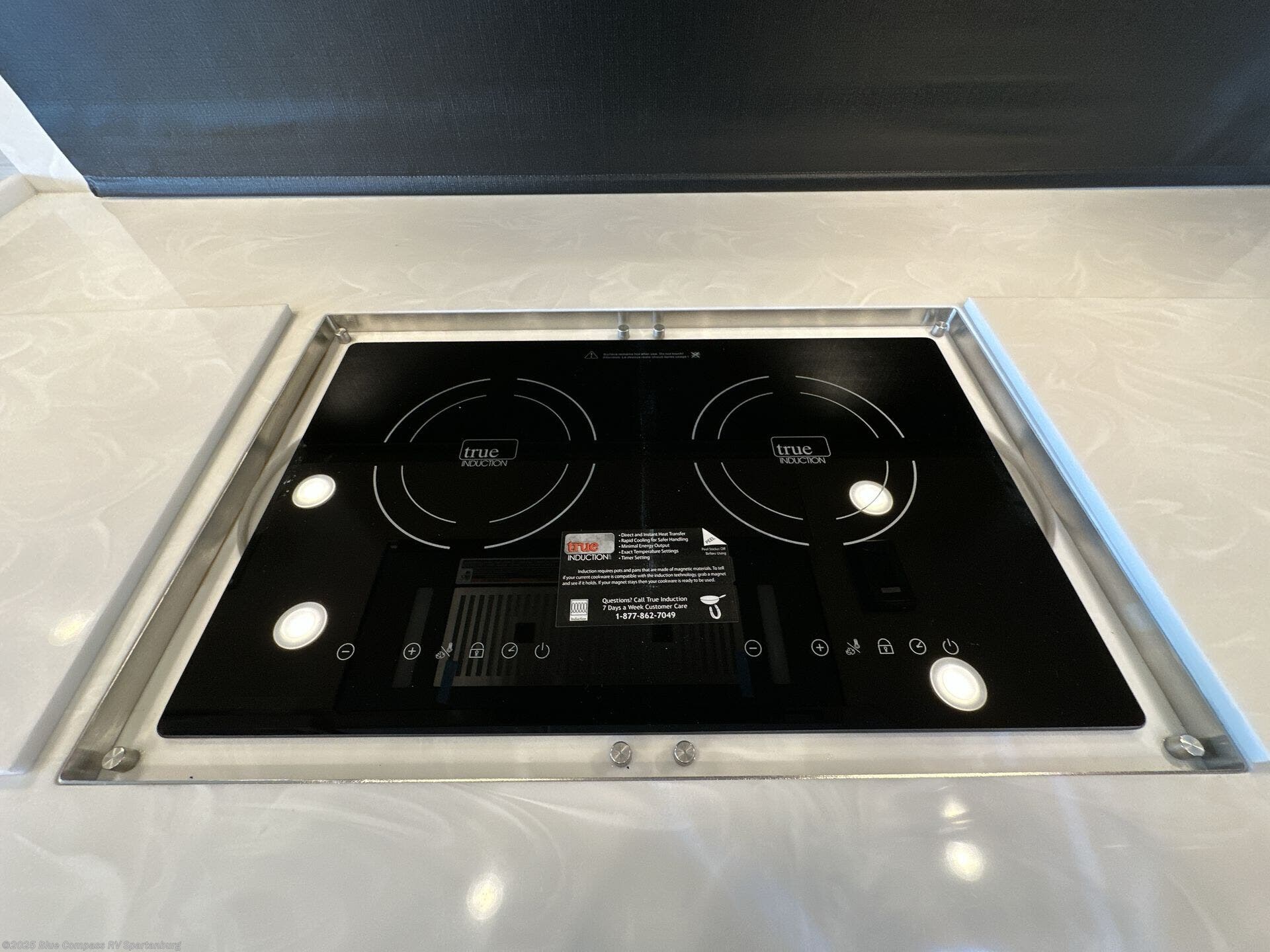 Luxury is waiting for you in this spacious Dutch Star Class A diesel motorhome that can comfortably sleep six each night. The full-wall slide plus two additional slides will open up the whole unit for a more at-home feel. Relax on the hide-a-bed sofa or read a book on the jackknife sofa. The hide-a-leaf dinette will be the perfect place to catch up on some work while you're away from home. Easily prepare breakfast, lunch, and dinner on the all-electric induction cooktop, or use the convenient stainless steel convection microwave with an air fryer feature. This model features a master suite with a pillowtop king bed, dual wardrobes and a dresser, plus an LED TV. You will love the rear bath cathedral ceiling that will add additional height, plus there is plenty of storage space and two bath sinks so that you and your spouse can freshen up at once! Specifications shown are with the standard Freightliner tag axle chassis. See dealer for details if optional Spartan K2 tag axle chassis is selected.