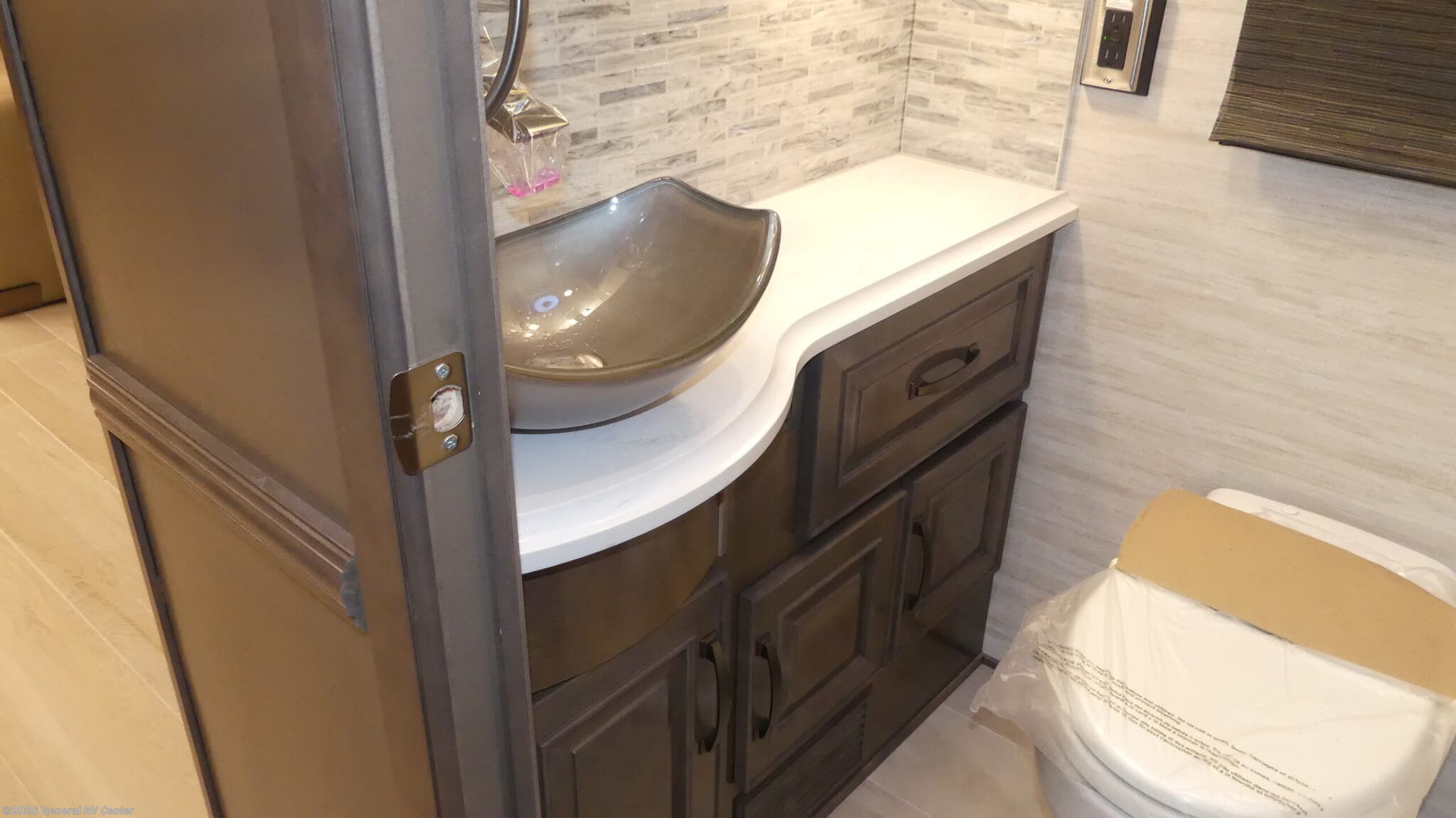 Luxury is waiting for you in this spacious Dutch Star Class A diesel motorhome that can comfortably sleep six each night. The full-wall slide plus two additional slides will open up the whole unit for a more at-home feel. Relax on the hide-a-bed sofa or read a book on the jackknife sofa. The hide-a-leaf dinette will be the perfect place to catch up on some work while you're away from home. Easily prepare breakfast, lunch, and dinner on the all-electric induction cooktop, or use the convenient stainless steel convection microwave with an air fryer feature. This model features a master suite with a pillowtop king bed, dual wardrobes and a dresser, plus an LED TV. You will love the rear bath cathedral ceiling that will add additional height, plus there is plenty of storage space and two bath sinks so that you and your spouse can freshen up at once! Specifications shown are with the standard Freightliner tag axle chassis. Luxurious accommodations and elegant amenities are found in abundance on the Newmar Dutch Star Class A diesel motorhome! The interior features a tile floor, decorative wall art, hardwood raised panel doors, and MCD window shades. There are also super-polished solid-surface countertops, six-way power cab seats with recliner and footrest, and push-to-release drawer slides in the pantry. And the electric radiant heat installed below the main floor and bedroom tile is sure to bring comfort wherever you go! You'll find great convenience from the rearview color monitor system with audio, and there is a Bluetooth microphone for the dash radio. The roof has been prepped for a satellite dish, and the dash radio comes with a Harman/JBL 180W sound system and subwoofer.