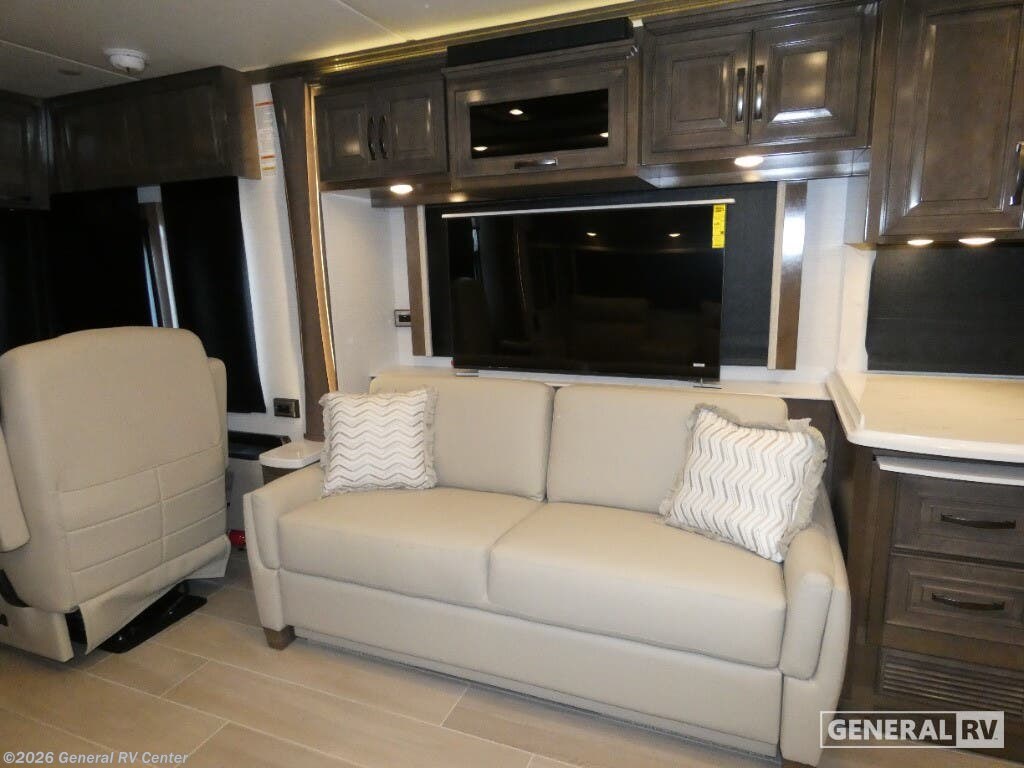 Discover the epitome of luxury travel with the 2026 Newmar Dutch Star 4369. This exquisite RV combines elegance and functionality, making it the perfect home on wheels for those who crave adventure without sacrificing comfort. At nearly 44 feet in length, this diesel pusher is powered by a robust 450-horsepower Cummins engine, ensuring a smooth and powerful ride. The Freightliner XC-Series chassis provides a sturdy foundation, while the automatic heater and full-size electric refrigerator add modern conveniences to your journey. Inside, the Dutch Star 4369 boasts a thoughtfully designed floorplan with a center kitchen and front living area, perfect for entertaining or relaxing after a day of exploration. The spacious interior features three slides, expanding your living space to accommodate up to six guests comfortably. Enjoy the plush king-sized bed in the master suite, while the convertible sofas offer additional sleeping options. The rear bathroom, complete with a dual-sink vanity and a large shower, provides a spa-like retreat. With the added convenience of washer and dryer prep, extended stays are a breeze. Whether you're lounging under the powered retractable awning or dining at the hide-a-leaf dinette, every moment in the Dutch Star 4369 is a testament to luxury and style. With a towing capacity of 15,000 pounds, this RV is ready for any adventure you have in mind. For more information and to experience this remarkable RV firsthand, visit your nearest General RV dealership.
