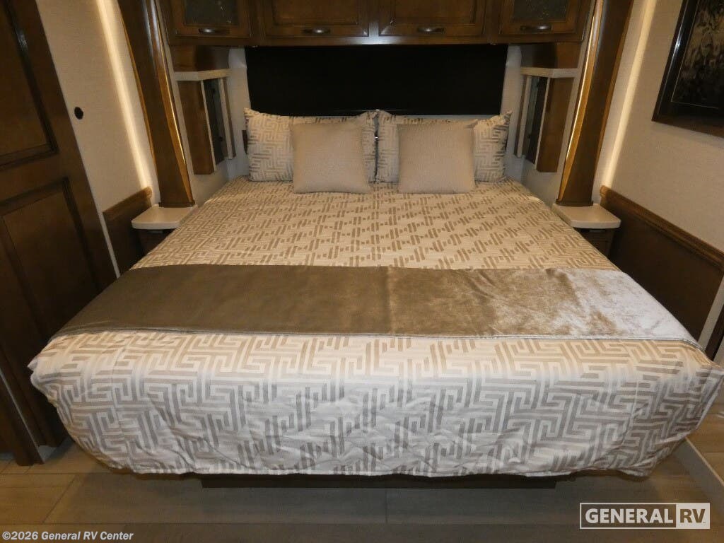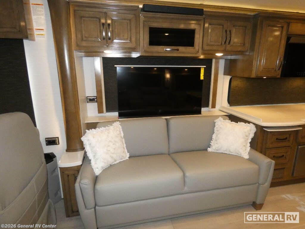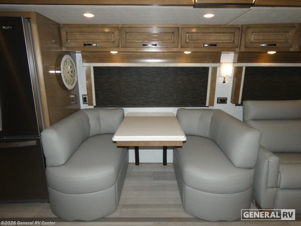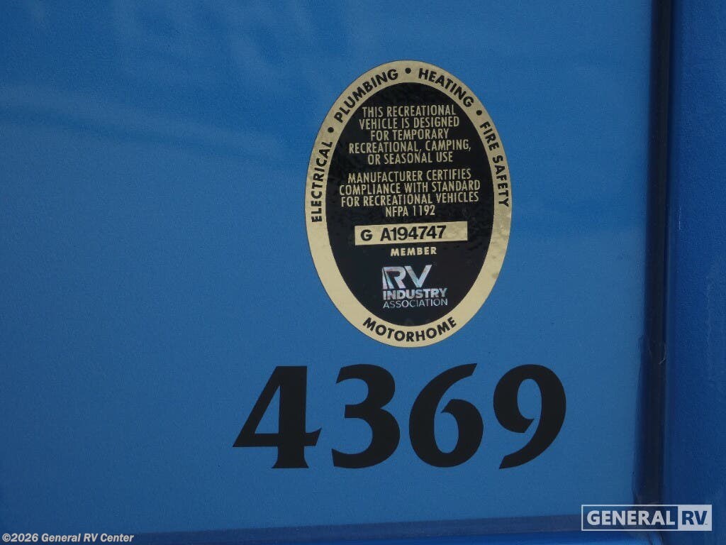 Discover the epitome of luxury travel with the 2026 Newmar Dutch Star 4369. This exquisite RV combines elegance and functionality, making it the perfect home on wheels for those who crave adventure without sacrificing comfort. At nearly 44 feet in length, this diesel pusher is powered by a robust 450-horsepower Cummins engine, ensuring a smooth and powerful ride. The Freightliner XC-Series chassis provides a sturdy foundation, while the automatic heater and full-size electric refrigerator add modern conveniences to your journey. Inside, the Dutch Star 4369 boasts a thoughtfully designed floorplan with a center kitchen and front living area, perfect for entertaining or relaxing after a day of exploration. The spacious interior features three slides, expanding your living space to accommodate up to six guests comfortably. Enjoy the plush king-sized bed in the master suite, while the convertible sofas offer additional sleeping options. The rear bathroom, complete with a dual-sink vanity and a large shower, provides a spa-like retreat. With the added convenience of washer and dryer prep, extended stays are a breeze. Whether you're lounging under the powered retractable awning or dining at the hide-a-leaf dinette, every moment in the Dutch Star 4369 is a testament to luxury and style. With a towing capacity of 15,000 pounds, this RV is ready for any adventure you have in mind. For more information and to experience this remarkable RV firsthand, visit your nearest General RV dealership.