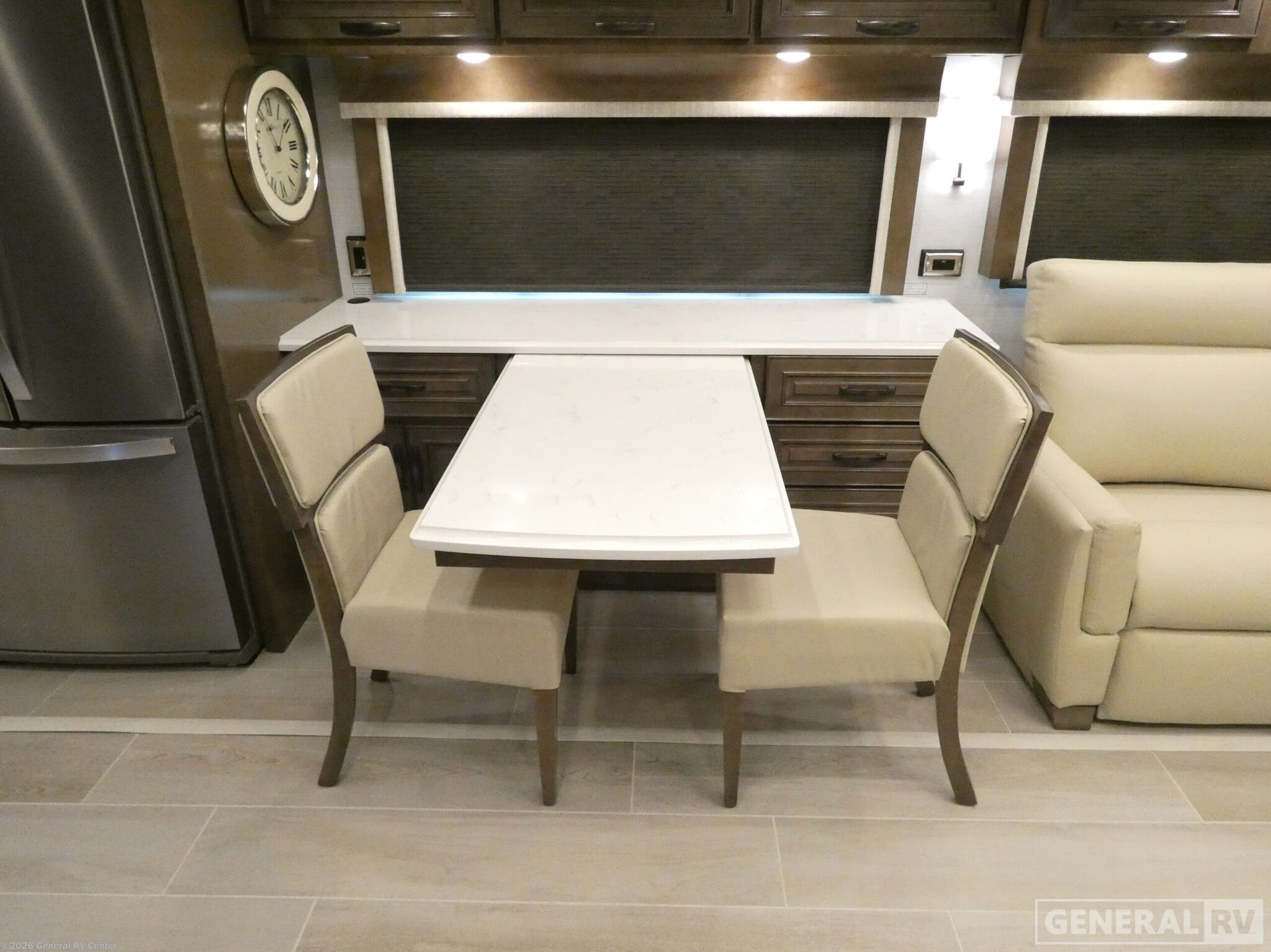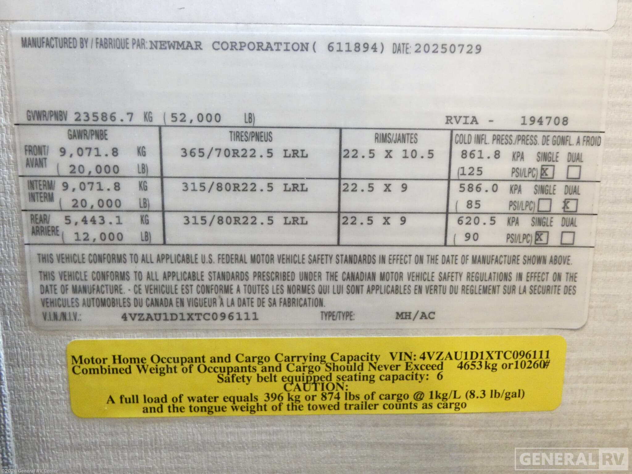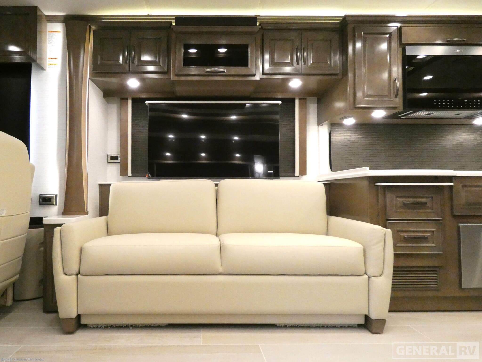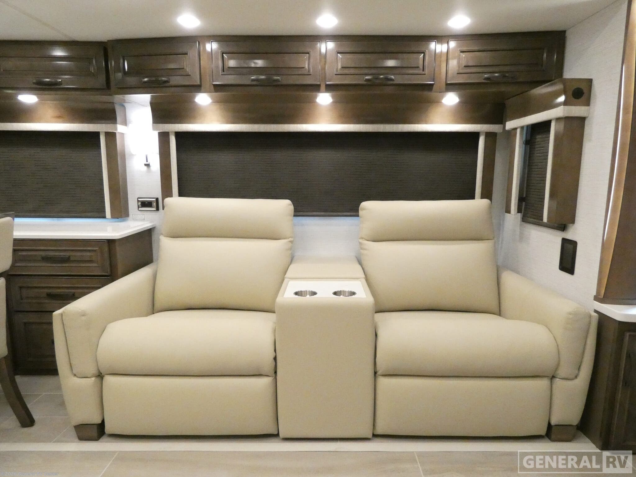 Discover the epitome of luxury travel with the 2025 Newmar Dutch Star 4369. This exquisite RV combines elegance and functionality, making it the perfect home on wheels for those who crave adventure without sacrificing comfort. At nearly 44 feet in length, this diesel pusher is powered by a robust 450-horsepower Cummins engine, ensuring a smooth and powerful ride. The Freightliner XC-Series chassis provides a sturdy foundation, while the automatic heater and full-size electric refrigerator add modern conveniences to your journey. Inside, the Dutch Star 4369 boasts a thoughtfully designed floorplan with a center kitchen and front living area, perfect for entertaining or relaxing after a day of exploration. The spacious interior features three slides, expanding your living space to accommodate up to six guests comfortably. Enjoy the plush king-sized bed in the master suite, while the convertible sofas offer additional sleeping options. The rear bathroom, complete with a dual-sink vanity and a large shower, provides a spa-like retreat. With the added convenience of washer and dryer prep, extended stays are a breeze. Whether you're lounging under the powered retractable awning or dining at the hide-a-leaf dinette, every moment in the Dutch Star 4369 is a testament to luxury and style. With a towing capacity of 15,000 pounds, this RV is ready for any adventure you have in mind. For more information and to experience this remarkable RV firsthand, visit your nearest General RV dealership.