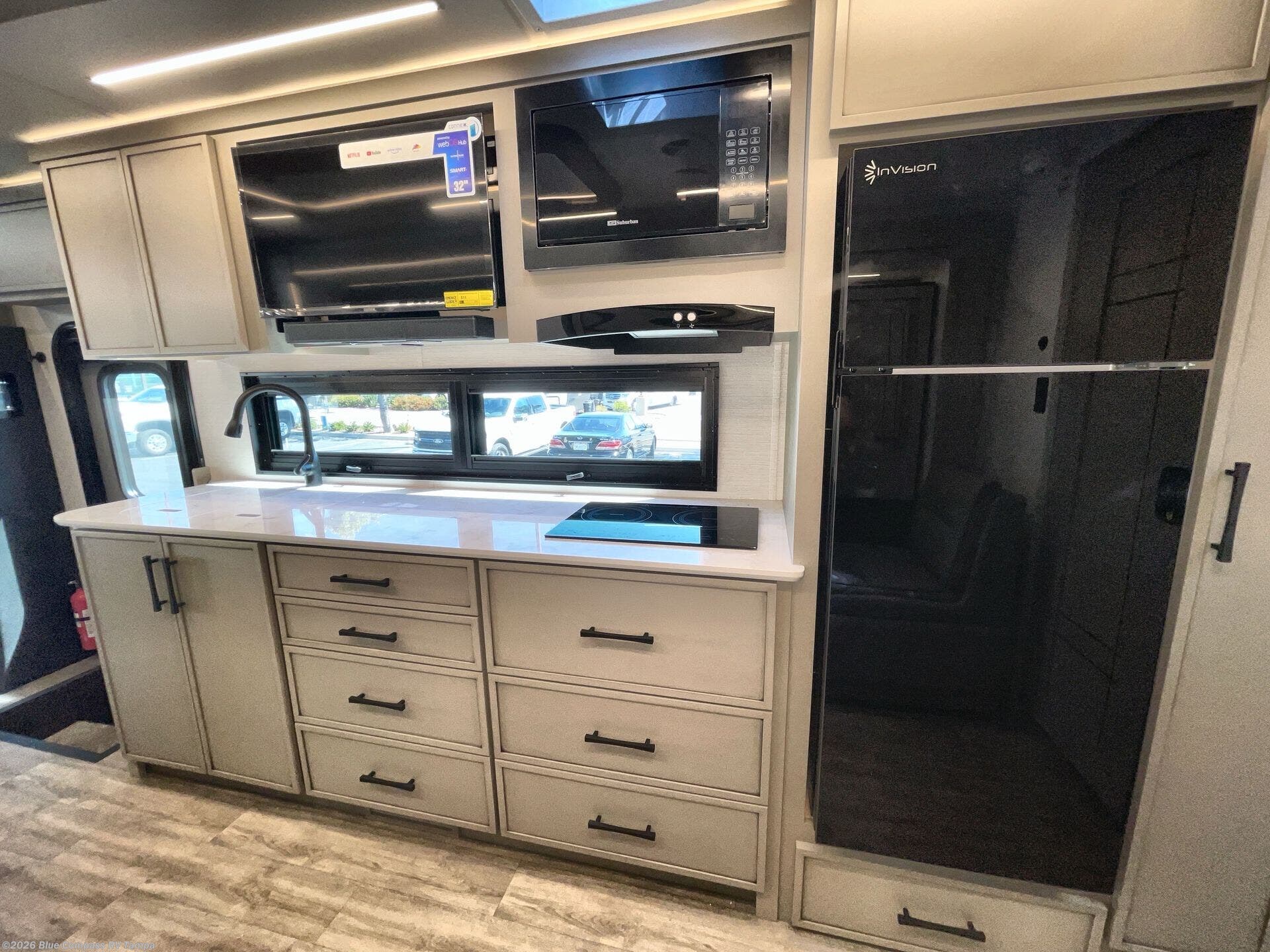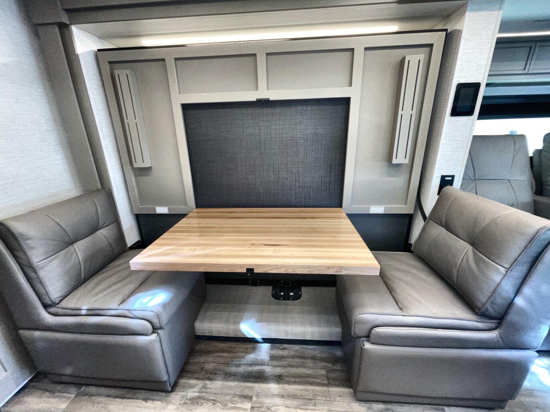 Experience true comfort in this spacious coach for six! There is a full-wall slide which houses the fold-down Murphy bed with a 74" sofa, plus a U-shaped dinette where you dine each day. And a 49" x 78" cab-over bunk lets additional guests sleep over. You can prepare lunch on the two burner cooktop when you've worked up an appetite, then store leftovers in the 8 cu. ft. Suburban refrigerator. A full rear bath includes a 32" x 24" shower, a wardrobe for your clothes, and extra storage for towels and bath necessities. An optional layout for this unit features a booth dinette in place of the sofa and a theater seat in place of the U-shaped dinette if you choose this configuration instead!