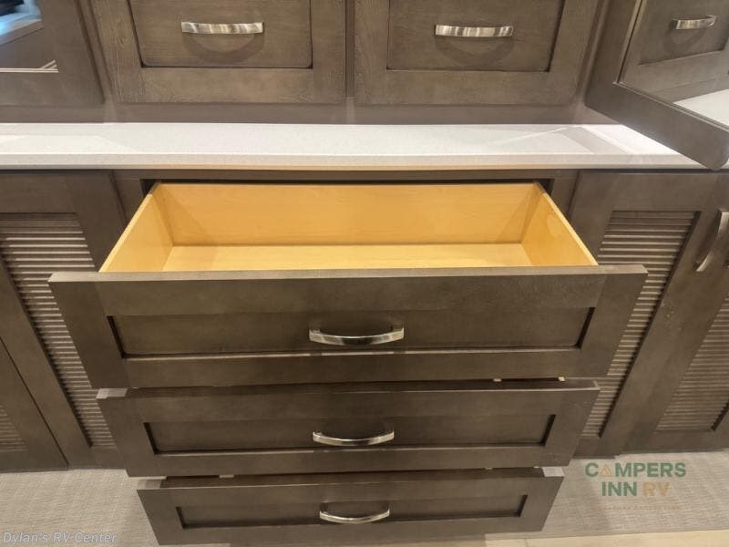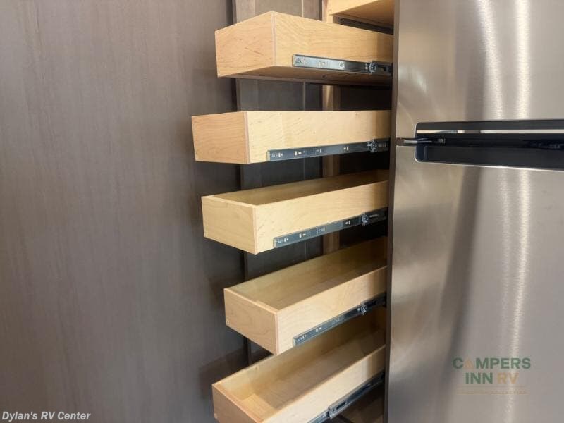 - Multiple slide-outs expand the living space, creating an open, airy environment.
