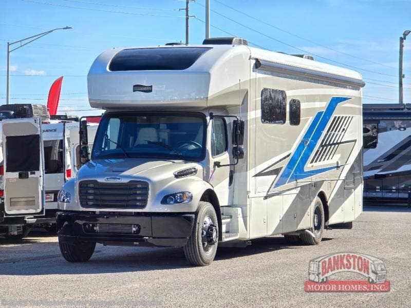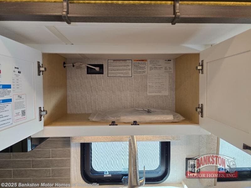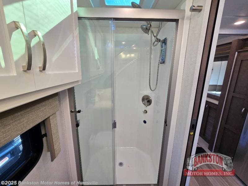 This motorhome is perfect for first time RVers who are looking for a smaller floorplan! The rear private bedroom has a retracting king bed slide across from shirt wardrobes and dresser with an optional washer and dryer below it. If you need more sleeping space then you can utilize the bunk over cab, transform the booth dinette, or lay on the 68" sofa comfort lounge. The chef can prepare their best home cooked meals with the microwave convection oven with air fryer and 18 cu. ft. residential refrigerator, plus you could add the optional induction cooktop or optional dishwasher for easy cleanup. After a long day of traveling, you can easily freshen up in the full bathroom with the 40" x 30" shower and store any necessary toiletries in the overhead cabinets!