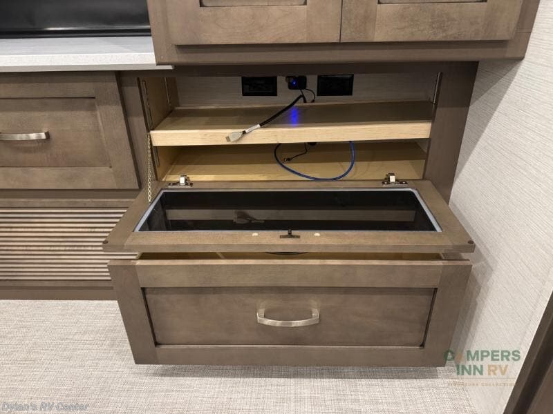 - Expandable Living Area – With expansive slide-outs and a cozy living room featuring plush seating, you’ll have plenty of room to relax, entertain guests, or unwind after a long day on the road.