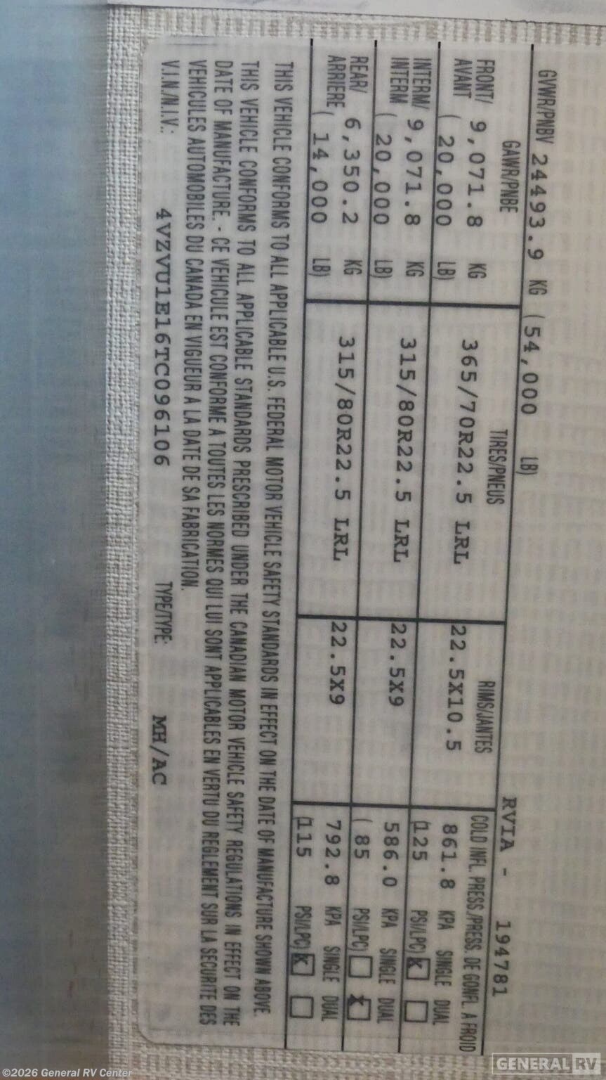 - VIN4VZVU1E16TC096106