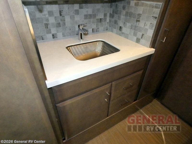 Don't pass up your opportunity to travel in pure luxury with this motorhome! The master suite has a king bed slide for a good night's rest across from a dresser with a Samsung LED TV and shirt wardrobes on either side. Attached to the bedroom is your very own full rear bathroom which has a 40" x 32" shower with a seat next to a linen closet and wardrobe, as well as a Splendide two-piece washer and dryer next to the vanity sink. The chef will have everything they need to prepare delicious home cooked meals including a cabinet pull-out, a stainless steel 30" convection microwave with air fryer feature and a Whirlpool 19.7 cu. ft. refrigerator to keep the perishables fresh, plus the half bathroom is by the kitchen for quick bathroom breaks while cooking. Enjoy your meals at the hide-a-leaf dinette and relax on either the 84" hide-a-bed sofa or the 62" jackknife sofa while watching your favorite movies on the Samsung LED TV on power lift!