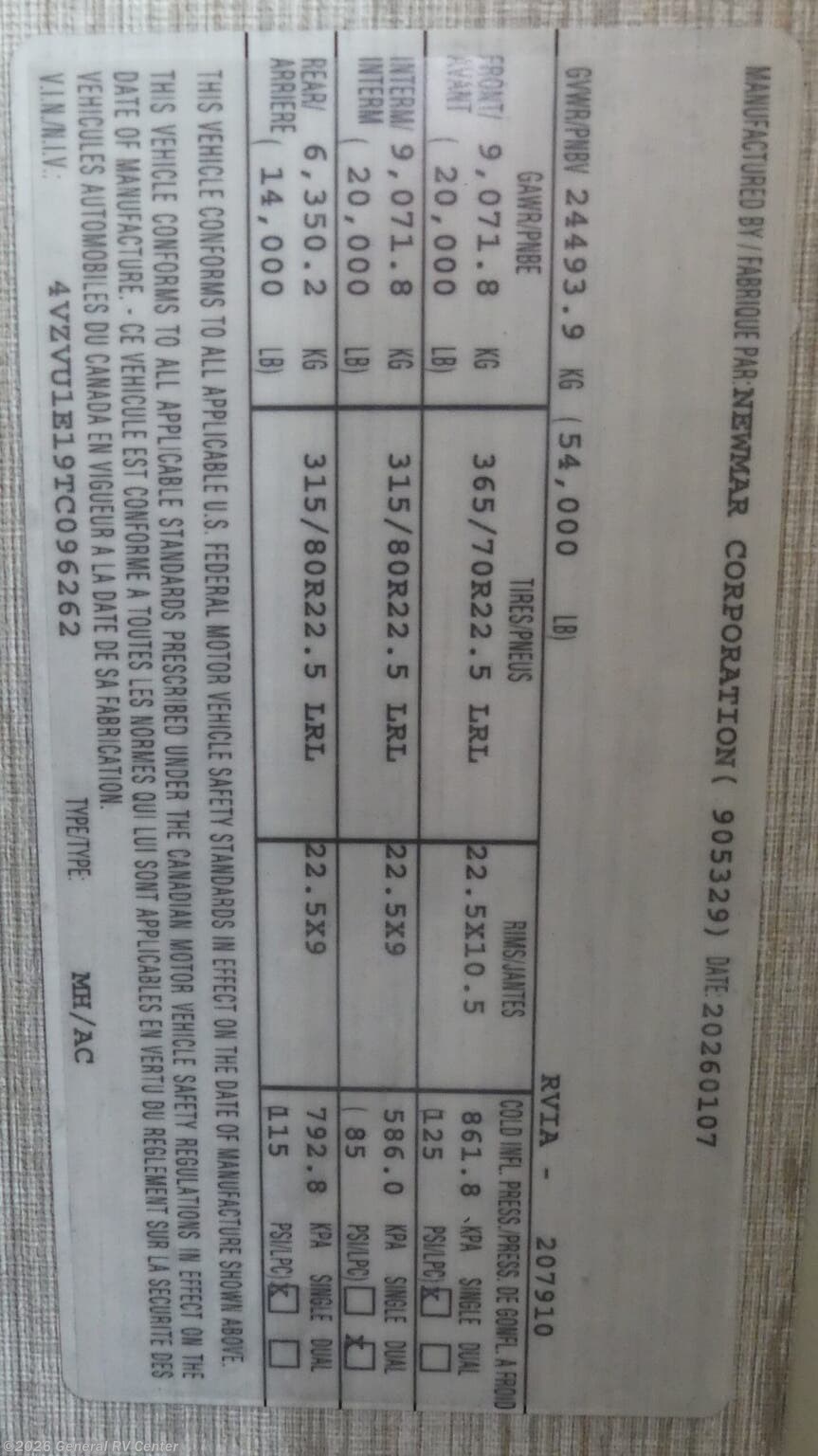 - VIN4VZVU1E19TC096262