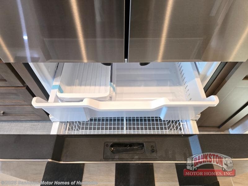 Pack your bags for an extended vacation in this four slide out coach! Once you've parked for the day, you can make lunch in the full kitchen that includes a 30" stainless steel convection microwave with a three burner cooktop and an air fryer feature. There is a 10 cu. ft. Norcold refrigerator and pantry to store your food, plus a booth dinette where you can dine together. A Jackknife sofa provides more seating space, or you may just find yourselves outdoors under the Carefree Travel'r awning. The mid-coach full bath will be easily accessible for everyone to use, and the rear private bedroom provides you with your own space at night. Here, you'll enjoy a queen bed slide out with overhead storage, a dresser with a Samsung LED TV, plus a wardrobe with sliding mirror doors. There is even a second wardrobe with an optional Splendide two-piece stacked washer and dryer if you plan to go full-time!
