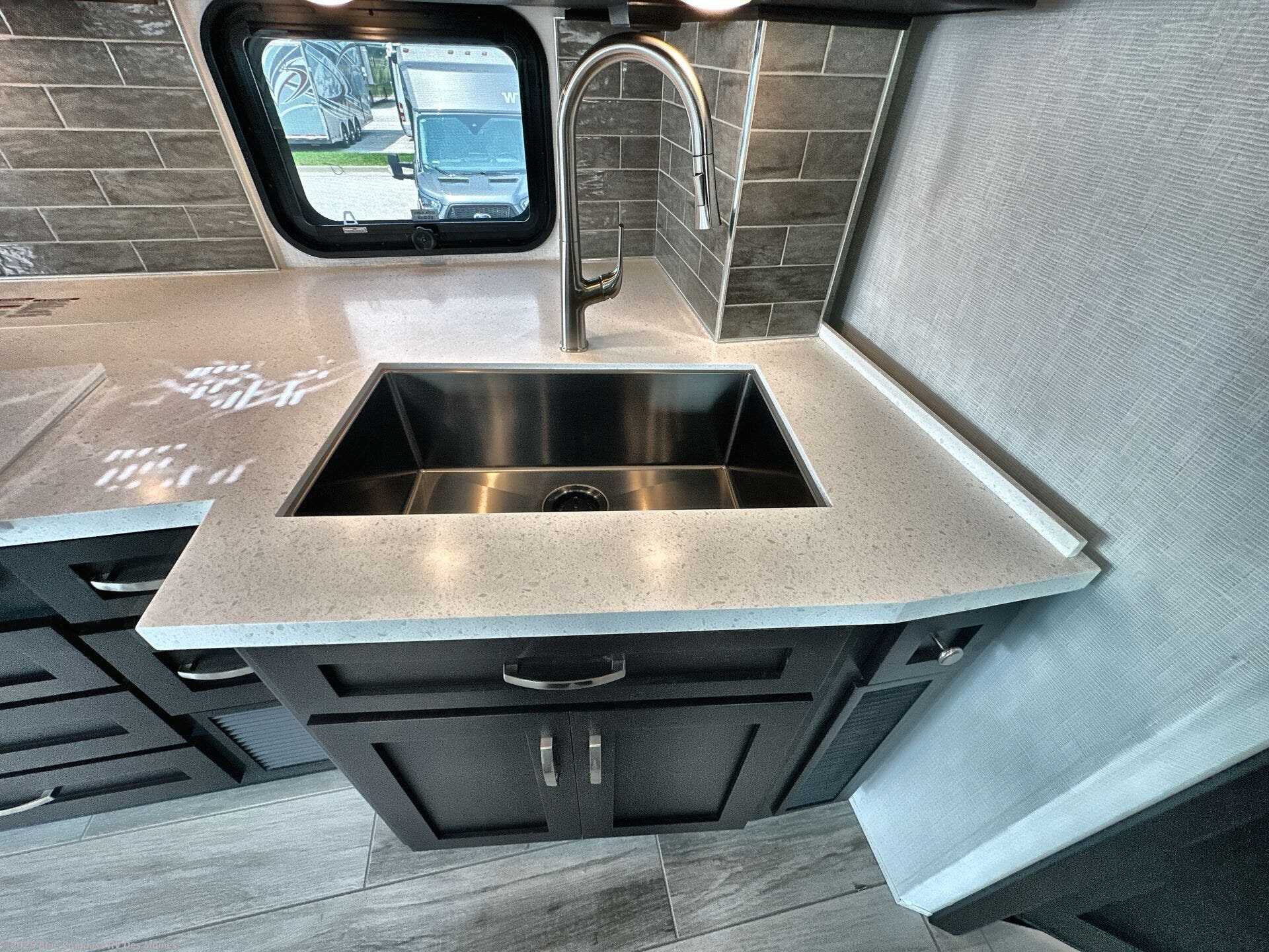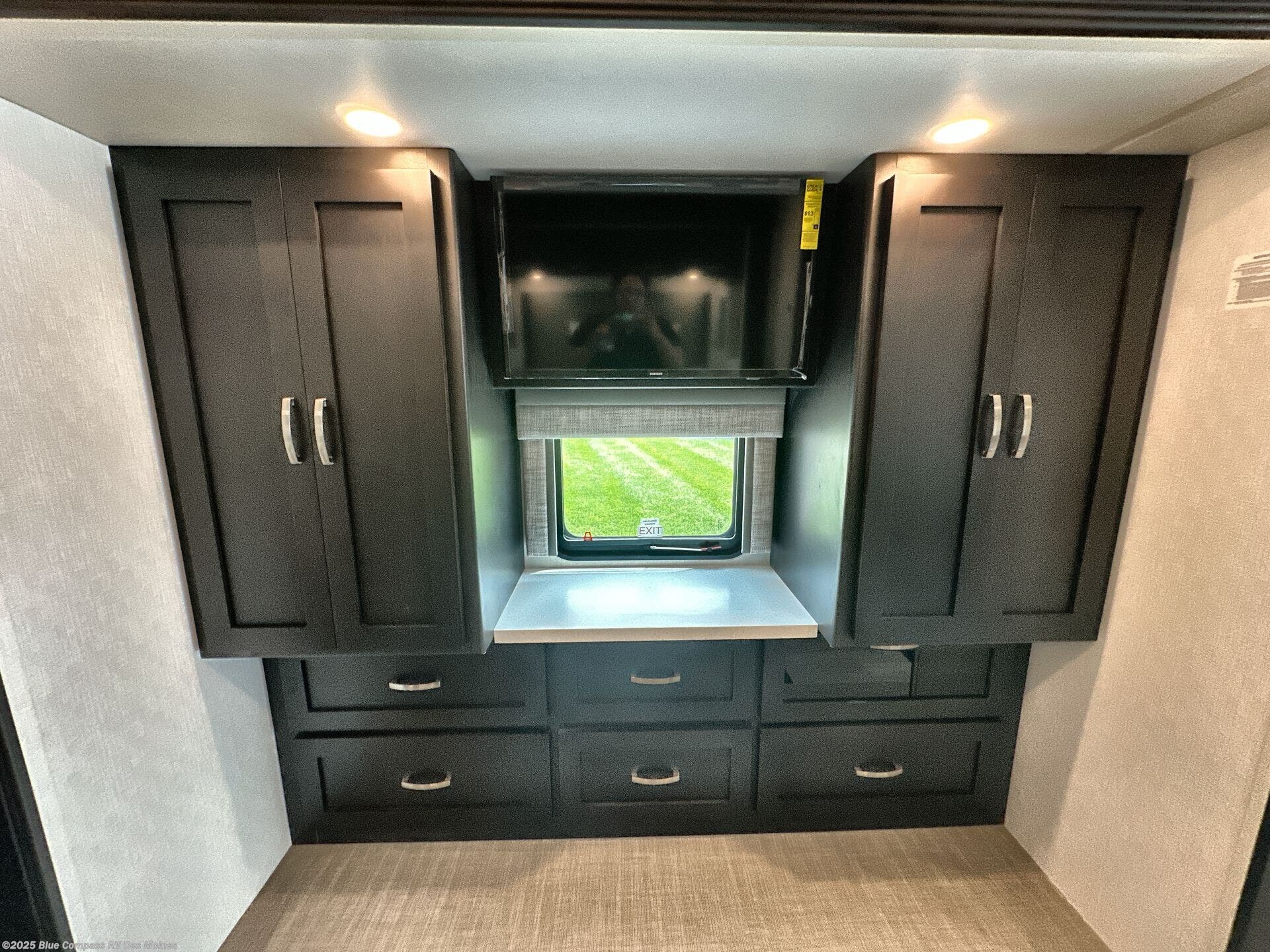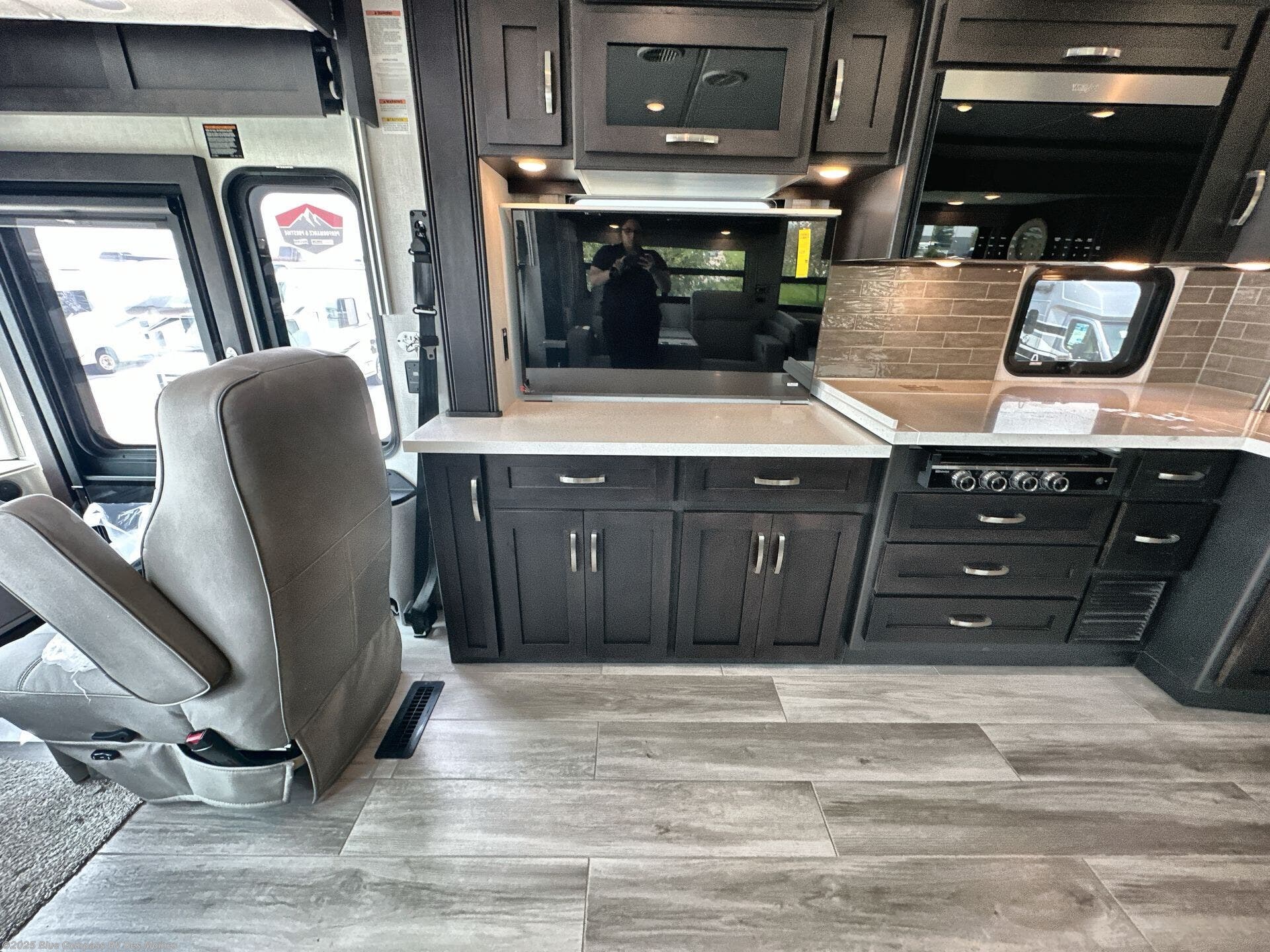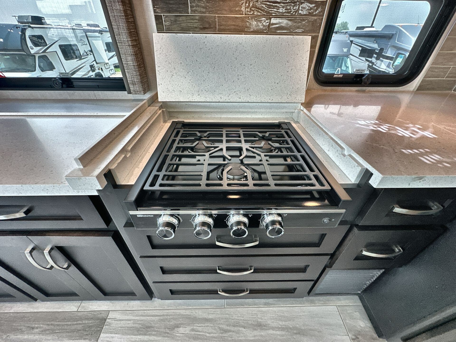 You will be met with comfort when you travel in this triple slide out coach! The main living area includes a Jackknife sofa and booth dinette across from a Samsung LED TV on power lift so you can enjoy movie nights. A full kitchen is waiting for you to create delicious meals on the three burner cooktop or in the convection microwave. There is also an air fryer feature you are sure to enjoy plus a 10 cu. ft. Norcold refrigerator and a pantry to keep food stocked. You will love having your own master bedroom that includes a king bed slide out, dual shirt wardrobes and a dresser, plus a Samsung LED TV. The full rear bath is both spacious and accommodating with its 50" x 30" shower plus optional washer and dryer, and your guests can use the mid-coach half bath during the day!