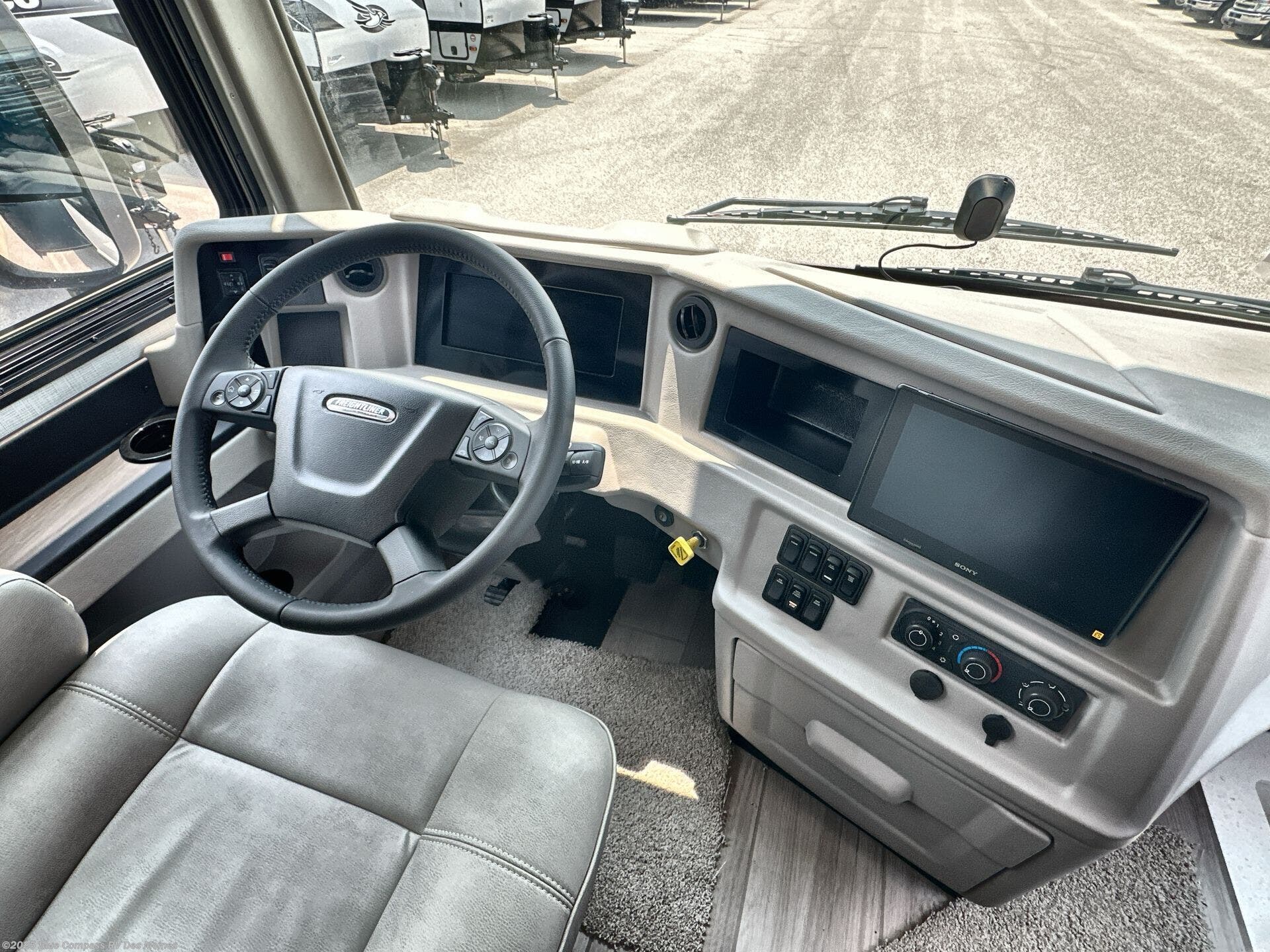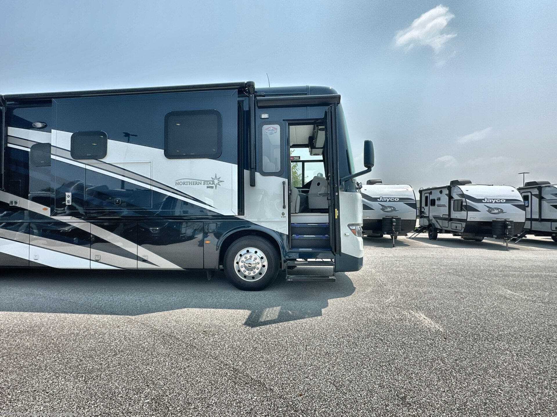 Step right up to the diesel pusher lifestyle with Newmar's most affordable Class A diesel coach, the Northern Star! You will be met with a luxurious interior that includes maple cabinet doors, polished solid-surface countertops, Villa Comfort Fit furniture, and MCD window shades to name a few comforts. The Full-Paint Masterpiece Finish is ultra sleek, and the diamond shield protection on the front cap will help against debris, bugs, and more. The driver is sure to appreciate the V-Ride drive axle suspension, along with the anti-lock braking system and Mobileye lane tracking and lane departure warning system for added safety. Each model also includes a Samsung LED TV in the living room and bedroom, a 10" Sony dash radio, a Bose soundbar sound system, and more entertainment features to ensure you'll never go bored on rainy days!