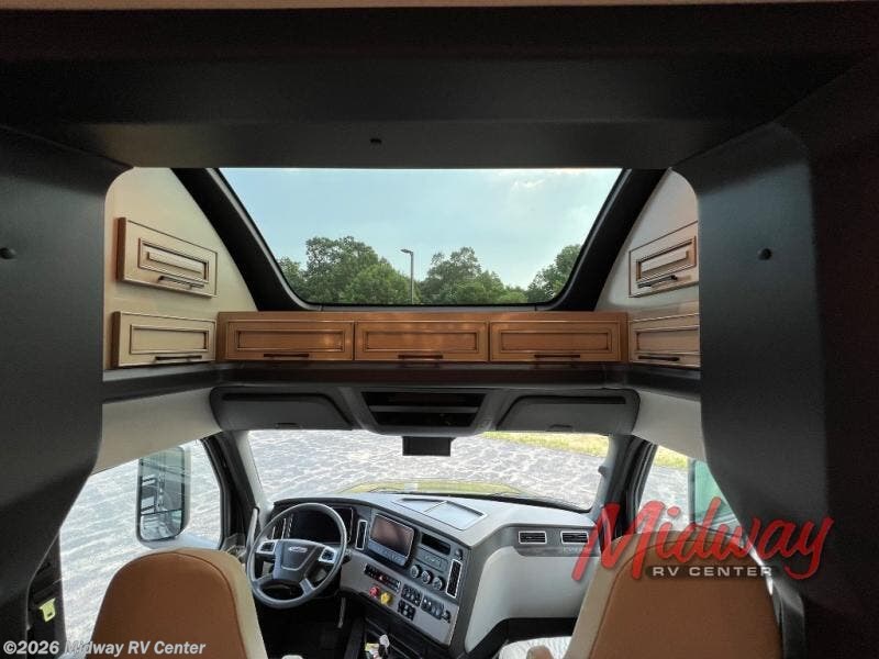 - Camino Decor, Crestone Full Paint, Morel Glazed Maple Cabinets, Freightliner Cascadia Chassis, 600HP, Onyx Package, Dishwasher, Starlink Internet System, Universal Toll Module, Winegard SK2 Satellite Dish, Theater Seating, LED Lights Below Perimeter, LED Lights Under ODS Slides, Lithium Ion 640 w/2 3K Inverters, 4 Merlin Solar Panels, Assist Handles in Showers, RV Sanicon Turbo System, Flag Pole Bracket, ,