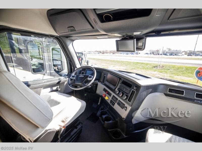 With any Summit Aire Super C diesel motorhome by Newmar, you will experience what happens when power meets luxury! The Freightliner Cascadia chassis provides a strong and durable foundation to your coach, and there is a 30,000 lb. rear hitch for towing your family car along. A full-paint Masterpiece Finish with cut and buff is ultra sleek, and the smart level hydraulic leveling jacks with a Bluetooth compatible touchpad will have you set up at the campground in no-time. You will stay powered up by the eight 6V AGM house batteries, 12.5 kW Cummins Onan diesel generator, and 3000W Pure Sine inverter, plus there is an energy management system to monitor power usage. There are super polished solid surface countertops in the kitchen, bedroom, and bathroom, and you're sure to appreciate the electric radiant heat installed below the floor tile for added comfort. Additional interior comforts include an Aqua Miser shower system, air ride captain's seats, a plush pillow top mattress, a central vacuum with a tool kit, and the list goes on!