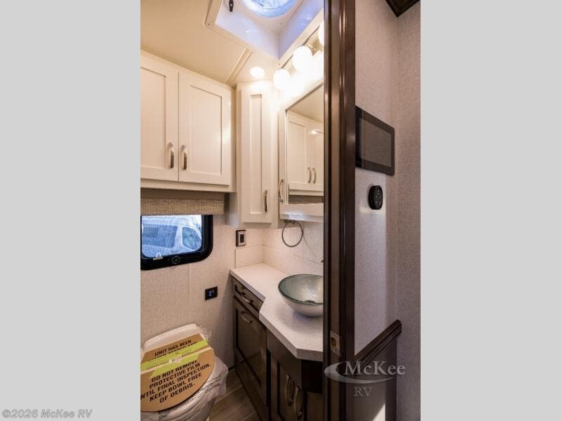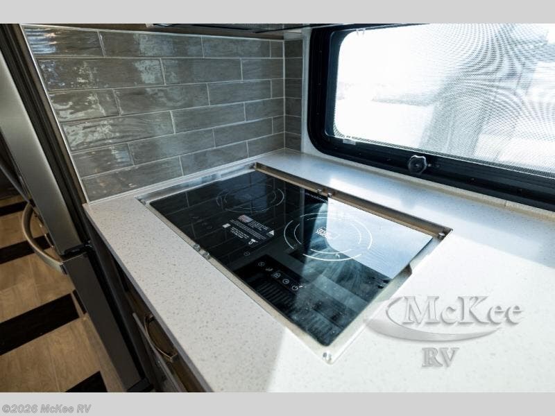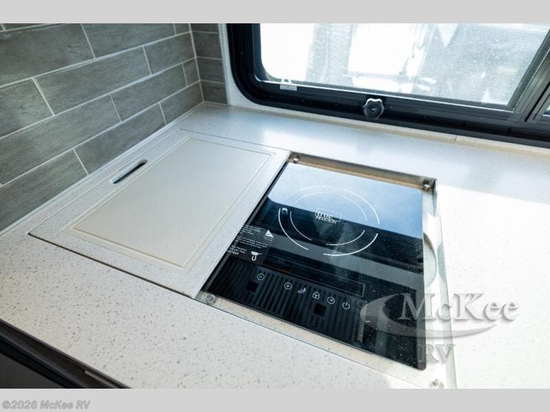 Traveling with friends and family is easier than ever in this coach with a bath and a half plus sleeping space for five to six! There is a hide-a-bed sofa across from a TV on power lift to make movie nights fun and a booth dinette to dine at or sleep an extra guest or two. The chef of your crew will love the spacious kitchen with an all-electric flush mount induction cooktop and a countertop extension for more prep space. There is also a pantry and a 19.7 cu. ft. refrigerator that provides tons of food storage space. The mid-ship half bath is centrally located for easy use, and the full rear bath includes a wardrobe with washer and dryer prep if you want the option to make wash day easier. When you're ready for some shut-eye, the queen bed slide out in the master bedroom is sure to bring a great night's rest!