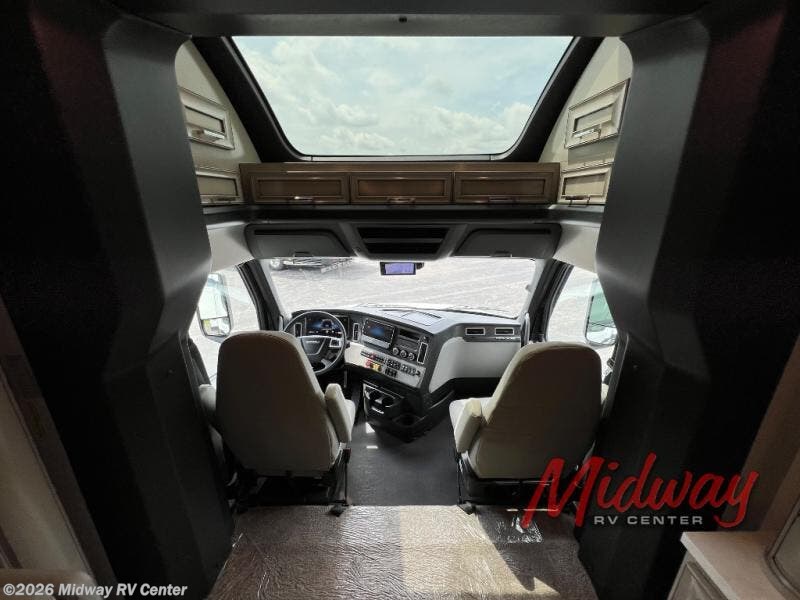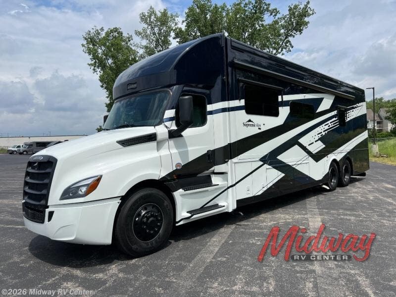 The Newmar Supreme Aire Super C diesel motorhomes continue to raise the bar with even more luxury and innovation you will not find on most other Super C coaches. Built on the Freightliner Cascadia chassis with serious diesel power and heavy-duty towing capability, they are made for confident travel whether your destination is the coast, the mountains, or anywhere in between. Inside, the Supreme Aire feels more like a high-end residence than a motorhome, with refined cabinetry, premium seating options, and a thoughtfully designed living area that can be tailored to how you relax. A sky window above the cockpit brings in natural light when you want it, and the power shade lets you dial it back for movie nights or mid-day naps. Up front, air-ride captain’s chairs, a modern digital dash, and the Xite infotainment system work together to make every mile feel smooth, quiet, and under control.