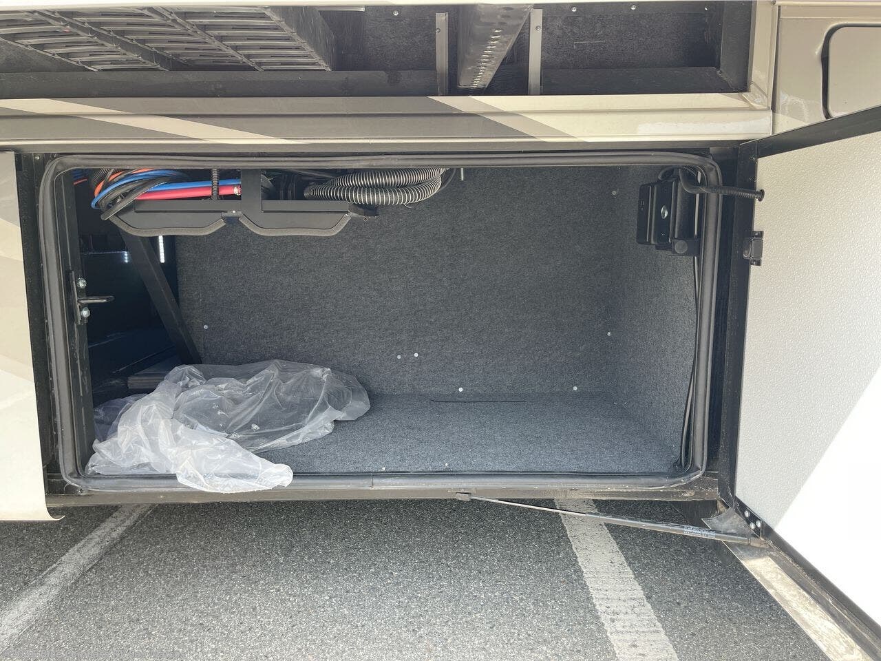 You can be sure to have plenty of space in this coach thanks to the four slide outs! Once you park for the night, your crew can relax on the hide-a-bed sofa across from the LED TV on power lift, or play a game at the booth dinette, and both furniture can double as sleeping space at night. While the chef of your group is preparing dinner on the all electric induction cooktop or in the stainless steel convection microwave, you can grab snacks from the pantry and set them out on the dry bar. The full bath will allow everyone space to freshen up each day, and the rear private bedroom will have you feeling right at home. Here, you'll sleep soundly on the king bed, be able to store your clothes in the dual wardrobes, and watch a movie in bed with the bedroom LED TV. There are even two more wardrobes, with one including washer and dryer prep!