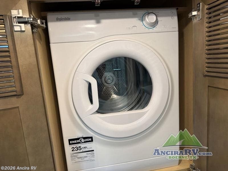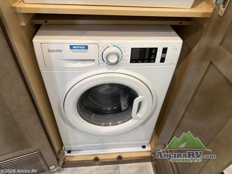 Experience a home away from home with this motorhome! Two can get ready at once in the full rear bathroom with the dual sink vanity, plus it has a 50" x 34" shower with a seat, a linen closet, a wardrobe with doors, adjustable shelves, and even washer and dryer prep. The master suite has access to the bathroom, a king bed slide, and a dresser with wardrobes on either side and a Samsung LED 4K TV. You can prepare your best meals with the all electric induction cooktop, pull-out cabinet, and large pantry then enjoy them at the free-standing dinette with chairs. Now that your belly is full, head to either the 87" hide-a-bed sofa or the 74" jackknife sofa while a movie plays on the 50" Samsung LED 4K TV on a power lift!