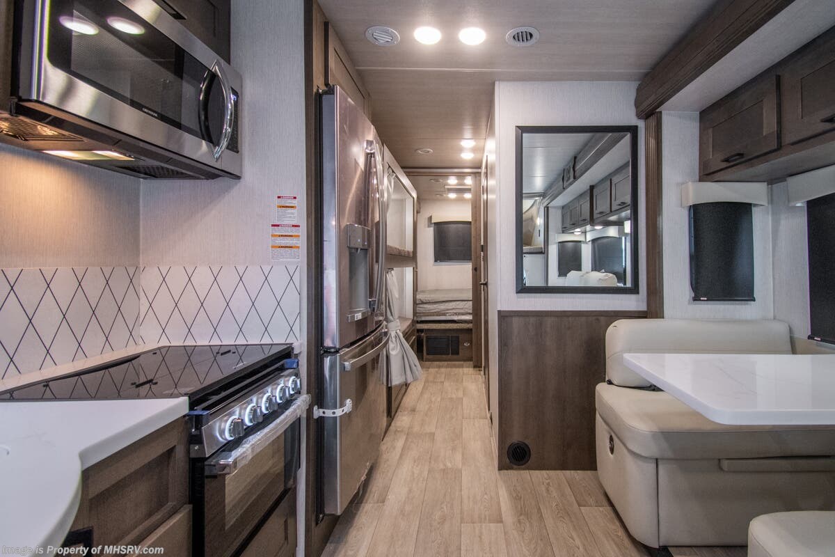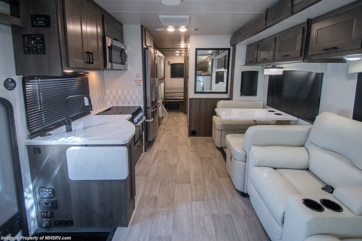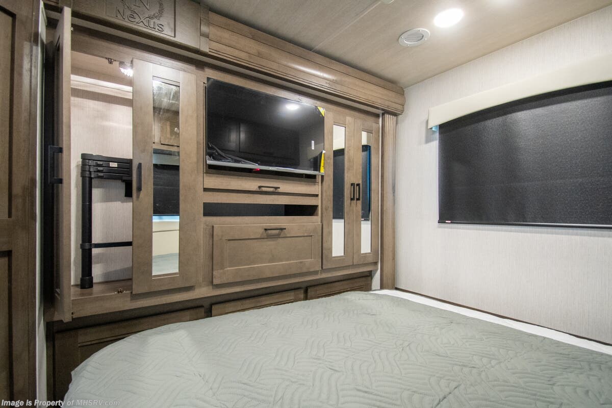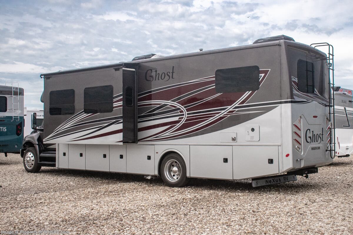 M.S.R.P. $336,811- New 2026 Nexus Ghost 36DS Luxury International Diesel Super C RV for Sale at Motor Home Specialist; the #1 Volume Selling Motor Home Dealership in the World. This unit is approximately 36 feet in length and features 2 slides, a 360HP Cummins diesel engine, International durastar chassis, and a king bed. Options include the Ghost value package, solar, theater seating, oven, rear chrome skirt guard and diamond shield. This luxurious RV also features the Ghost Value Package which includes a 6-speed 3000 series transmission, composite substrate in walls and roof, high strength alloy steel frame throughout, one piece fiberglass cap and metal HVAC ducting. Additional features found in the Nexus RV include galvanized steel storage boxes, heated and enclosed holding tanks, upgraded flooring and "plug and play" electrical harnesses throughout the coach making every Nexus RV's electrical system more dependable. Strength, Safety and Customer Satisfaction are the 3 cornerstones found in every Nexus RV. The strength of the International chassis is nothing short of legendary and the 360HP diesel engine delivers exceptional power and performance. The construction of the Nexus RV far exceeds the industry norm. First, and arguable foremost, the Nexus RV boast an all STEEL cage construction instead of the normal aluminum framed construction found in the competition. Steel cage construction is 72% stronger than aluminum and is only common place is RVs such as the Foretravel Realm or a Prevost bus conversion; both of which would have an M.S.R.P. value well over $1 million dollars! That same commitment to strength and safety is found throughout the Nexus line-up. You will also find construction highlights such as 2 layers of Azdel substrate in the sidewalls & roof! The Azdel product provides 3X the insulation value of wood and is 50% lighter which will help optimize your engine’s performance and fuel economy, and because it is not a wood material harvested from the rain forest it is both greener and provides a less that 1% chance of retaining any moisture that could ever lead to wall separation or mold. It is also formaldehyde free, impact resistant and a sound absorbing material creating a much quieter RV. To further protect and insulate the RV from the elements Nexus utilizes high grade UV protected automotive window seals. The roof is a pre-stamped metal roof truss system that is further highlighted by the exterior layer of seamless fiberglass as opposed to the normal TPO or "rubber roofs" found in most RVs built today. The steel roof is also designed to incorporate Nexus RV's Easy-Flow Air Distribution system. This HVAC ducting is a tried-and-true system that provides more evenly distributed A/C throughout the coach as well as helps promote cleaner air and reduce allergens. For additional details on this unit and our entire inventory including brochures, window sticker, videos, photos, reviews & testimonials as well as additional information about Motor Home Specialist and our manufacturers please visit us at or call 800-335-6054. At Motor Home Specialist, we DO NOT charge any prep or orientation fees like you will find at other dealerships. All sale prices include a 200-point inspection, interior & exterior wash, detail service and a fully automated high-pressure rain booth test and coach wash that is a standout service unlike that of any other in the industry. You will also receive a thorough coach orientation with an MHSRV technician, a night stay in our delivery park featuring landscaped and covered pads with full hook-ups and much more! Read Thousands upon Thousands of 5-Star Reviews at and See What They Had to Say About Their Experience at Motor Home Specialist. WHY PAY MORE? WHY SETTLE FOR LESS?