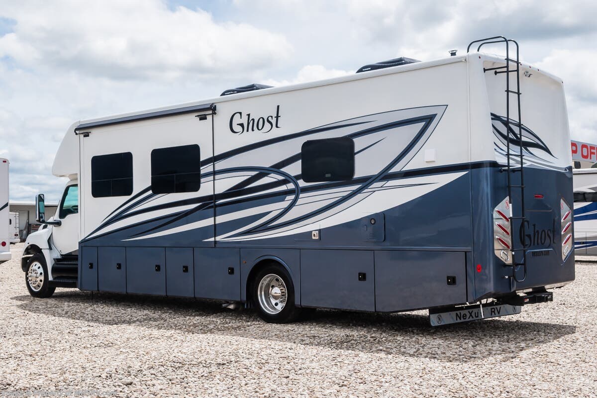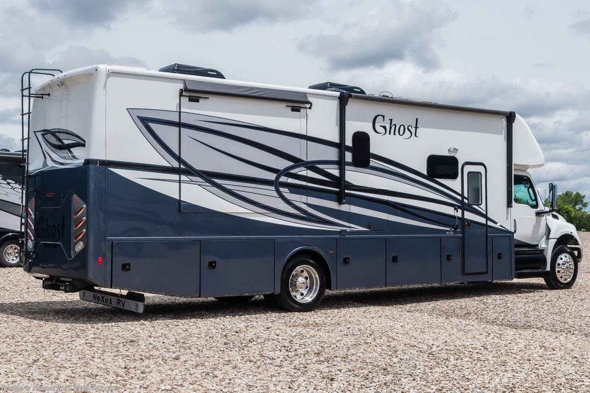 M.S.R.P. $339,433- New 2026 Nexus Ghost 37DS Luxury International Diesel Super C RV for Sale at Motor Home Specialist; the #1 Volume Selling Motor Home Dealership in the World. This unit is approximately 37 feet in length and features 2 slides, a 360HP Cummins diesel engine, International durastar chassis, and a king bed. Options include the Ghost value package, outside entertainment center w/ TV, additional solar watt panel, nexair fan in living room, theater seating, oven, stackable washer/dryer, roof ladder, rear chrome skirt guard with logo and diamond shield. This luxurious RV also features the Ghost Value Package which includes a 6-speed 3000 series transmission, composite substrate in walls and roof, high strength alloy steel frame throughout, one piece fiberglass cap and metal HVAC ducting. Additional features found in the Nexus RV include galvanized steel storage boxes, heated and enclosed holding tanks, upgraded flooring and "plug and play" electrical harnesses throughout the coach making every Nexus RV's electrical system more dependable. Strength, Safety and Customer Satisfaction are the 3 cornerstones found in every Nexus RV. The strength of the International chassis is nothing short of legendary and the 360HP diesel engine delivers exceptional power and performance. The construction of the Nexus RV far exceeds the industry norm. First, and arguable foremost, the Nexus RV boast an all STEEL cage construction instead of the normal aluminum framed construction found in the competition. Steel cage construction is 72% stronger than aluminum and is only common place is RVs such as the Foretravel Realm or a Prevost bus conversion; both of which would have an M.S.R.P. value well over $1 million dollars! That same commitment to strength and safety is found throughout the Nexus line-up. You will also find construction highlights such as 2 layers of Azdel substrate in the sidewalls & roof! The Azdel product provides 3X the insulation value of wood and is 50% lighter which will help optimize your engine’s performance and fuel economy, and because it is not a wood material harvested from the rain forest it is both greener and provides a less that 1% chance of retaining any moisture that could ever lead to wall separation or mold. It is also formaldehyde free, impact resistant and a sound absorbing material creating a much quieter RV. To further protect and insulate the RV from the elements Nexus utilizes high grade UV protected automotive window seals. The roof is a pre-stamped metal roof truss system that is further highlighted by the exterior layer of seamless fiberglass as opposed to the normal TPO or "rubber roofs" found in most RVs built today. The steel roof is also designed to incorporate Nexus RV's Easy-Flow Air Distribution system. This HVAC ducting is a tried-and-true system that provides more evenly distributed A/C throughout the coach as well as helps promote cleaner air and reduce allergens. Shop hundreds of motorhomes including Super C RVs at 1 location! Choose from Entegra Accolade – Accolade XL – Accolade XT – Esteem XL – Dynamax DX3 – Dynaquest XL – Europa – isata 5 - Thor Magnitude – Magnitude Grand – Omni – Omni Trail – Pasadena – Inception - East to West Bravado – Nexus Ghost – Wraith – Rebel – Verrado and much more. We also sell quality pre-owned models such as Jayco Seneca XT – Seneca – Seneca Prestige - Greyhawk XL – Tiffin Allegro Bay – Newmar Super Star – Supreme Aire – Renegade Veracruz – Valencia – Verona – Verona LE – Explorer – Coachmen Entourage and much more. Visit for our complete line-up and the sale prices that have made us the #1 volume selling motor home dealership in the world 12 years in a row! For additional details on this unit and our entire inventory including brochures, window sticker, videos, photos, reviews & testimonials as well as additional information about Motor Home Specialist and our manufacturers please visit us at or call 800-335-6054. At Motor Home Specialist, we DO NOT charge any prep or orientation fees like you will find at other dealerships. All sale prices include a 200-point inspection, interior & exterior wash, detail service and a fully automated high-pressure rain booth test and coach wash that is a standout service unlike that of any other in the industry. You will also receive a thorough coach orientation with an MHSRV technician, a night stay in our delivery park featuring landscaped and covered pads with full hook-ups and much more! Read Thousands upon Thousands of 5-Star Reviews at and See What They Had to Say About Their Experience at Motor Home Specialist. WHY PAY MORE? WHY SETTLE FOR LESS?
