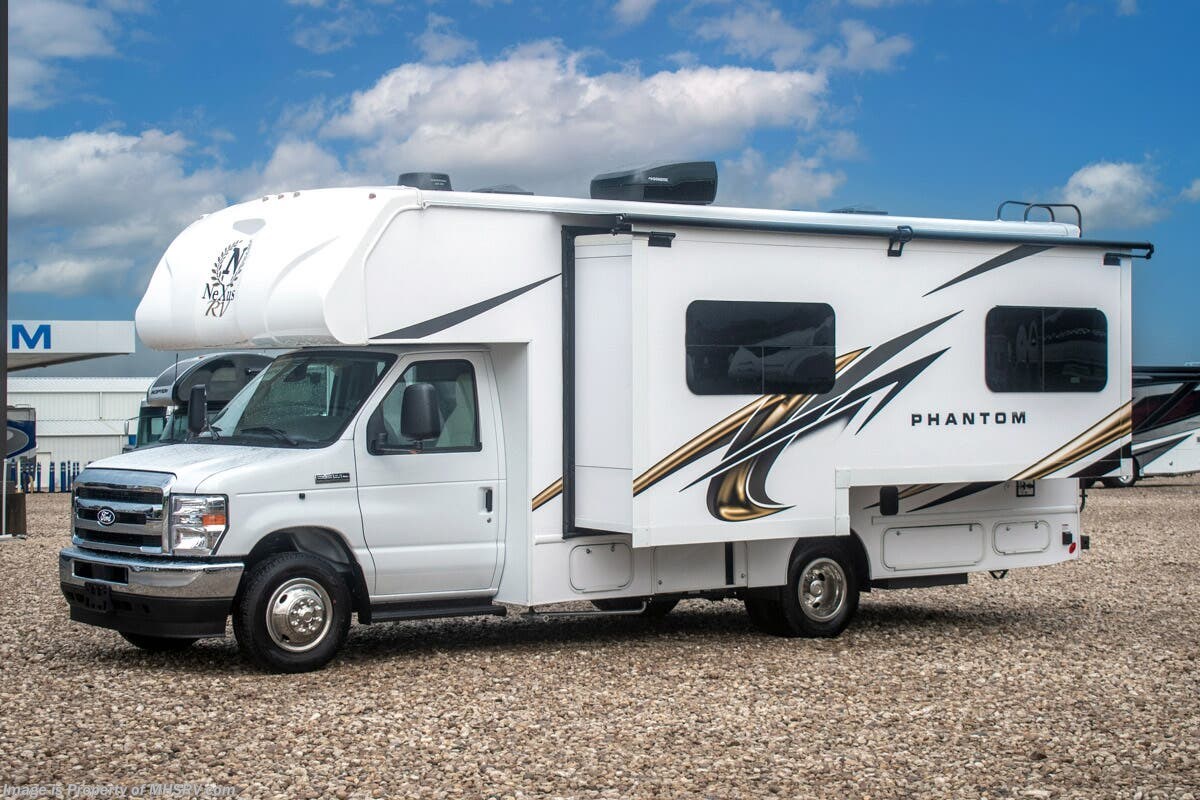 M.S.R.P. $144,607 - All New 2026 Nexus Phantom Sport 24PS RV for Sale at Motor Home Specialist; the #1 Volume Selling Motor Home Dealership in the World. This unit is approximately 25 feet 0 inches in length. It rides on the amazing new Ford® E-Series chassis with a 7.3L V8 engine! Optional features include the phantom sport series value package, convection microwave, soft touch driver and passenger seats, swivel driver and passenger seat, TV in bedroom, roof ladder, aluminum running boards, side view cameras and heated and remote mirrors. This amazing Class C RV also features the Phantom Sport Value Package which includes a fiberglass roof, large 1.6 cu. ft. microwave, 10 cu. ft. 12V refrigerator, high strength low allow steel frame, fiberglass front cap and rear fiberglass radius eyebrow. Additional features found in the Nexus RV include galvanized steel storage boxes, and heated and enclosed holding tanks. Strength, Safety and Customer Satisfaction are the 3 cornerstones found in every Nexus RV. The construction of the Nexus RV far exceeds the industry norm. First, and arguable foremost, the Nexus RV boast an all STEEL cage construction instead of the normal aluminum framed construction found in the competition. Steel cage construction is 72% stronger than aluminum and is only common place on RVs such as the Foretravel Realm or a Prevost bus conversion; both of which would have an M.S.R.P. value well over $1 million dollars! That same commitment to strength and safety is found throughout the Nexus line-up. You will also find construction highlights such as 2 layers of Azdel substrate in the sidewalls & roof! The Azdel product provides 3X the insulation value of wood and is 50% lighter which will help optimize your engine’s performance and fuel economy, and because it is not a wood material harvested from the rain forest it is both greener and provides a less that 1% chance of retaining any moisture that could ever lead to wall separation or mold. It is also formaldehyde free, impact resistant and a sound absorbing material creating a much quieter RV. To further protect and insulate the RV from the elements Nexus utilizes high grade UV protected automotive window seals. The roof is a pre-stamped metal roof truss system that is further highlighted by the exterior layer of seamless fiberglass as opposed to the normal TPO or "rubber roofs" found in most RVs built today. The steel roof is also designed to incorporate Nexus RV's Easy-Flow Air Distribution system. This HVAC ducting is a tried-and-true system that provides more evenly distributed A/C throughout the coach as well as helps promote cleaner air and reduce allergens. Shop hundreds of class C gas RVs at 1 location! Choose from Fleetwood Altitude - Gulf Stream BT Cruiser - Thor Chateau - Four Winds - Geneva and Quantum - Entegra Coach Odyssey Odyssey SE and Esteem - East to West Entrada - Forest River Forester - Forester LE - Nexus Phantom - Viper and much more. We also sell quality pre-owned models such as Jayco Greyhawk – Redhawk - Redhawk SE - Thor Magnitude - Winnebago Spirit - and Minnie Winnie - Coachmen Freelander and Leprechaun - Forest River Sunseeker Classic - Sunseeker LE – Solera - Holiday Rambler Incline and much more. Visit for our complete line-up and the sale prices that have made us the #1 volume selling motor home dealership in the world 12 years in a row! For more complete details on this unit and our entire inventory including brochures, window sticker, videos, photos, reviews & testimonials as well as additional information about Motor Home Specialist and our manufacturers please visit us at or call 800-335-6054. All sale prices include a multi-point inspection, interior & exterior wash, detail service and a fully automated high-pressure rain booth test and coach wash that is a standout service unlike that of any other in the industry. You will also receive a thorough coach orientation with an MHSRV technician, a night stay in our delivery park featuring landscaped and covered pads with full hook-ups and much more! Read Thousands upon Thousands of 5-Star Reviews at and see what they had to say about their experience at Motor Home Specialist. or 800-335-6054 - Why Pay More? Why Settle for Less?