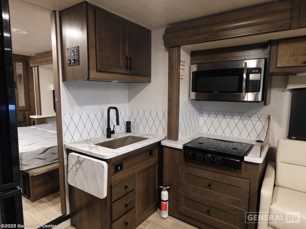 Experience the open road like never before with the 2026 NeXus RV Triumph 29T. This remarkable motorhome blends comfort and functionality, making it an ideal choice for families or groups seeking adventure. With its spacious interior, this RV comfortably sleeps up to eight, featuring a luxurious king bed, a full-size bed, and two convertible sleeping areas. The center kitchen is equipped with a full-size electric refrigerator, a three-burner cooktop, and convection cooking, ensuring you have everything you need to whip up delicious meals on the go. The thoughtfully designed layout includes a front living area with a cozy dinette and a 64" sofa, perfect for relaxing after a day of exploration. The rear bedroom offers a tranquil retreat with ample storage, while the rear bath ensures privacy and convenience. Enjoy the outdoors with the powered retractable awning, and rest easy knowing you're backed by the reliable Ford E450 chassis with 325 horsepower. Whether you're embarking on a cross-country journey or a weekend getaway, the Triumph 29T is your ticket to unforgettable memories. For more details or to see it in person, visit your nearest General RV dealership.