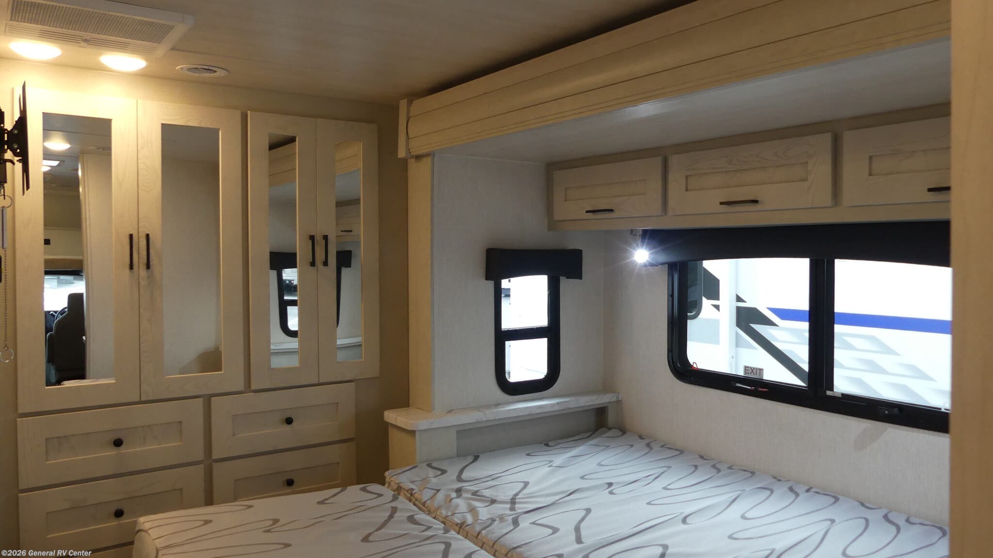 Experience the open road like never before with the 2026 NeXus RV Triumph 29T. This remarkable motorhome blends comfort and functionality, making it an ideal choice for families or groups seeking adventure. With its spacious interior, this RV comfortably sleeps up to eight, featuring a luxurious king bed, a full-size bed, and two convertible sleeping areas. The center kitchen is equipped with a full-size electric refrigerator, a three-burner cooktop, and convection cooking, ensuring you have everything you need to whip up delicious meals on the go. The thoughtfully designed layout includes a front living area with a cozy dinette and a 64" sofa, perfect for relaxing after a day of exploration. The rear bedroom offers a tranquil retreat with ample storage, while the rear bath ensures privacy and convenience. Enjoy the outdoors with the powered retractable awning, and rest easy knowing you're backed by the reliable Ford E450 chassis with 325 horsepower. Whether you're embarking on a cross-country journey or a weekend getaway, the Triumph 29T is your ticket to unforgettable memories. For more details or to see it in person, visit your nearest General RV dealership.