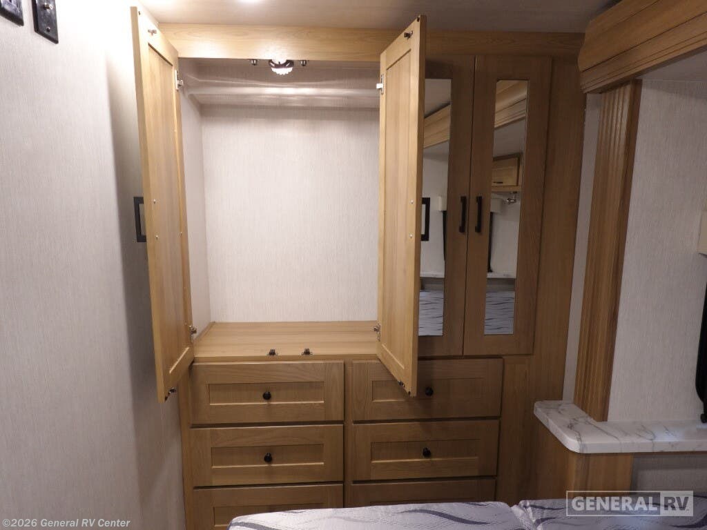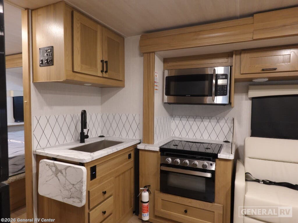 Experience the open road like never before with the 2026 NeXus RV Triumph 29T. This remarkable motorhome blends comfort and functionality, making it an ideal choice for families or groups seeking adventure. With its spacious interior, this RV comfortably sleeps up to eight, featuring a luxurious king bed, a full-size bed, and two convertible sleeping areas. The center kitchen is equipped with a full-size electric refrigerator, a three-burner cooktop, and convection cooking, ensuring you have everything you need to whip up delicious meals on the go. The thoughtfully designed layout includes a front living area with a cozy dinette and a 64" sofa, perfect for relaxing after a day of exploration. The rear bedroom offers a tranquil retreat with ample storage, while the rear bath ensures privacy and convenience. Enjoy the outdoors with the powered retractable awning, and rest easy knowing you're backed by the reliable Ford E450 chassis with 325 horsepower. Whether you're embarking on a cross-country journey or a weekend getaway, the Triumph 29T is your ticket to unforgettable memories. For more details or to see it in person, visit your nearest General RV dealership.
