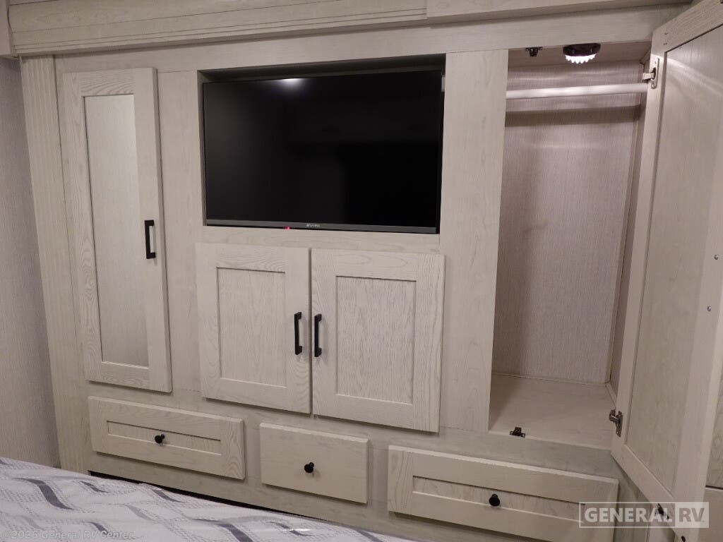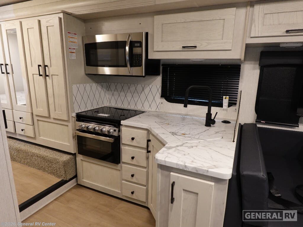 Experience the open road like never before with the 2025 NeXus RV Triumph 30T. This thoughtfully designed motorhome combines comfort and functionality, making it the perfect choice for families and adventure seekers alike. With the capacity to sleep up to eight people, this RV features a queen bed, a full-size bed, and two convertible sleeping areas, ensuring everyone has a cozy place to rest. The front living area is inviting and spacious, with a comfortable sofa and a dinette that encourages quality time and relaxation. The center kitchen is equipped with a full-size electric refrigerator, three-burner cooktop, and convection cooking capabilities, making meal preparation a breeze. The powered retractable awning extends your living space to the outdoors, creating an ideal setting for alfresco dining or simply enjoying the scenery. The rear bedroom offers a serene retreat, complete with ample storage and a dedicated space for entertainment. Built on a robust Ford E450 chassis with a 325 horsepower engine, the Triumph 30T is ready to take you on your next adventure with confidence and style. For more information or to explore this RV in person, visit your nearest General RV Dealership.