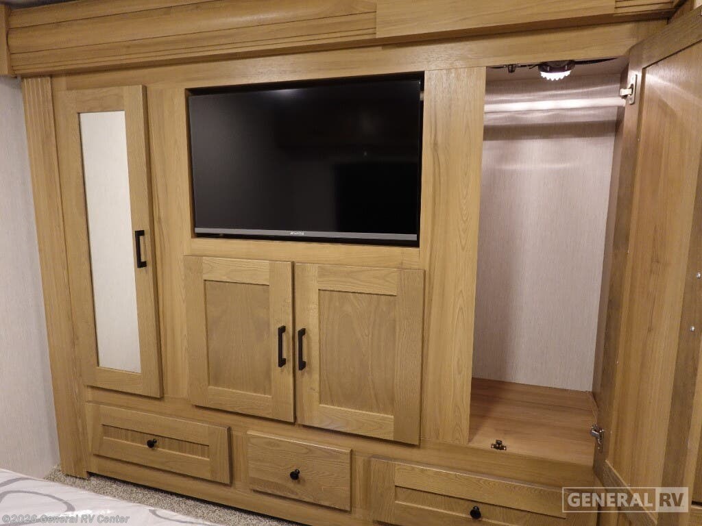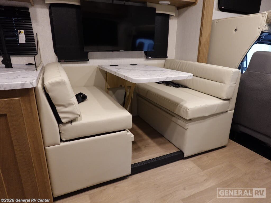 The 2025 NeXus RV Triumph 30T is a masterpiece of modern RV design, offering both comfort and style for your adventures. This motorhome, built on the robust Ford E450 chassis, combines power and reliability with its 325 horsepower engine and 450 lb-ft of torque. Measuring just over 31 feet, it provides a spacious yet manageable driving experience, perfect for families or groups of up to eight. The full-size and queen beds, along with convertible sleeping areas, ensure everyone has a cozy place to rest. The front living area is designed for relaxation, featuring a plush sofa and dinette, ideal for gathering and entertainment. The center kitchen is a chef’s delight, equipped with a full-size electric refrigerator, convection cooking, and a three-burner cooktop, making meal prep a breeze. The center bath, complete with a shower curtain, offers convenience and privacy. As you move towards the rear, the bedroom provides a serene retreat with ample storage, thanks to multiple closets and a dresser. The powered retractable awning invites you to enjoy the outdoors, while the automatic heater keeps you warm on cooler nights. With a 60-amp electrical service and a generous fresh water capacity of 40 gallons, this RV is ready for extended journeys. For more information or to experience the Triumph 30T in person, visit your nearest General RV dealership.