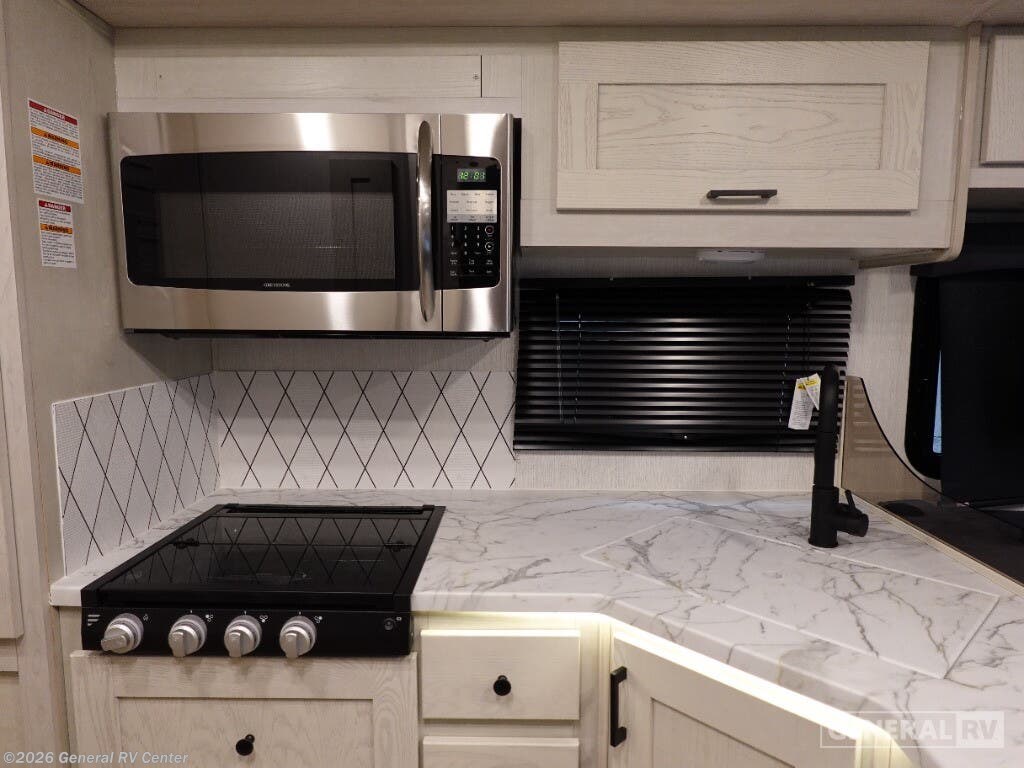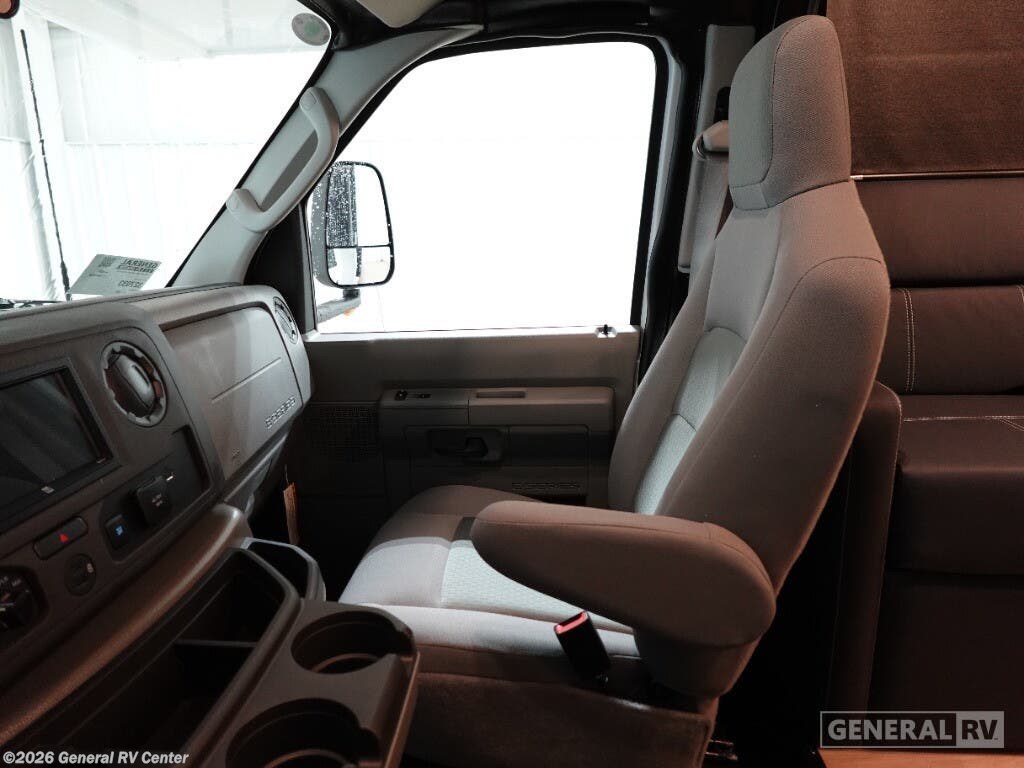 The 2025 NeXus RV Triumph 30T is a masterpiece of modern RV design, offering both comfort and style for your adventures. This motorhome, built on the robust Ford E450 chassis, combines power and reliability with its 325 horsepower engine and 450 lb-ft of torque. Measuring just over 31 feet, it provides a spacious yet manageable driving experience, perfect for families or groups of up to eight. The full-size and queen beds, along with convertible sleeping areas, ensure everyone has a cozy place to rest. The front living area is designed for relaxation, featuring a plush sofa and dinette, ideal for gathering and entertainment. The center kitchen is a chef’s delight, equipped with a full-size electric refrigerator, convection cooking, and a three-burner cooktop, making meal prep a breeze. The center bath, complete with a shower curtain, offers convenience and privacy. As you move towards the rear, the bedroom provides a serene retreat with ample storage, thanks to multiple closets and a dresser. The powered retractable awning invites you to enjoy the outdoors, while the automatic heater keeps you warm on cooler nights. With a 60-amp electrical service and a generous fresh water capacity of 40 gallons, this RV is ready for extended journeys. For more information or to experience the Triumph 30T in person, visit your nearest General RV dealership.
