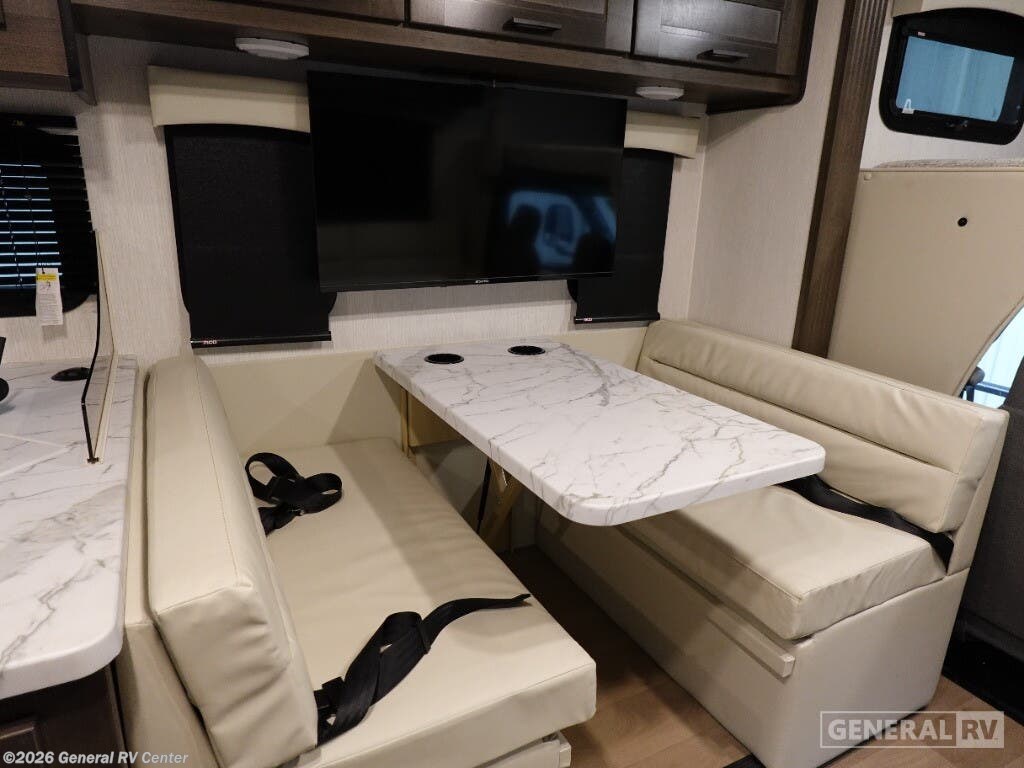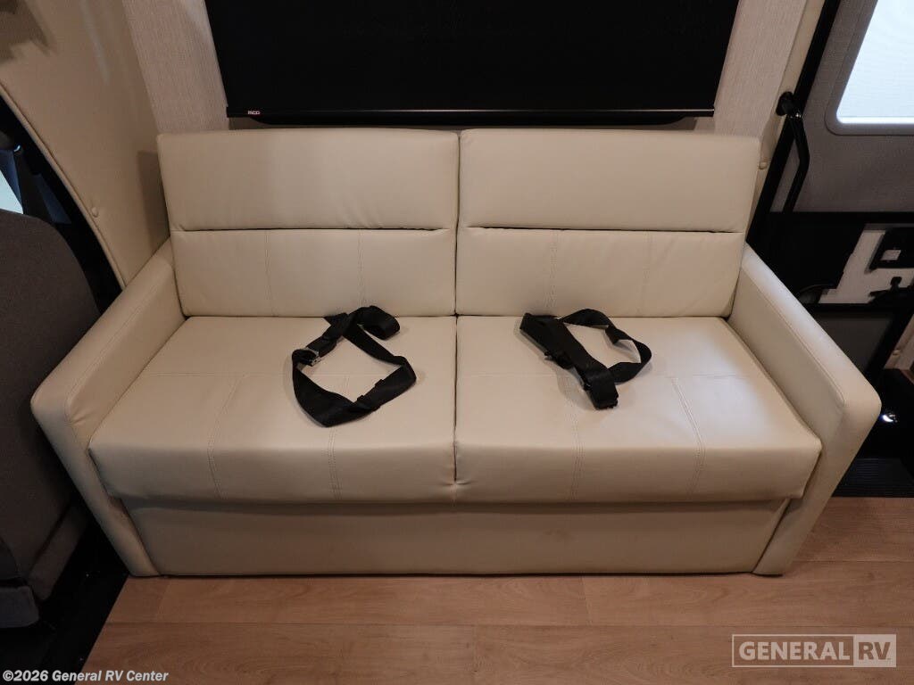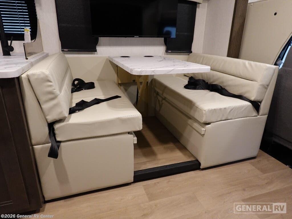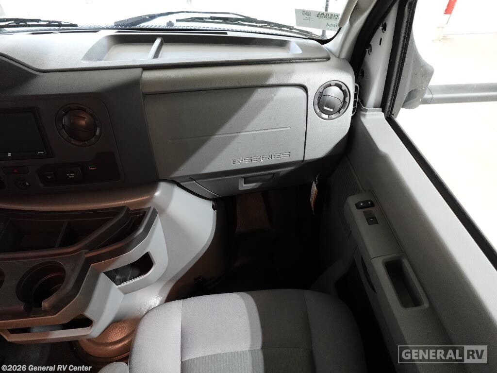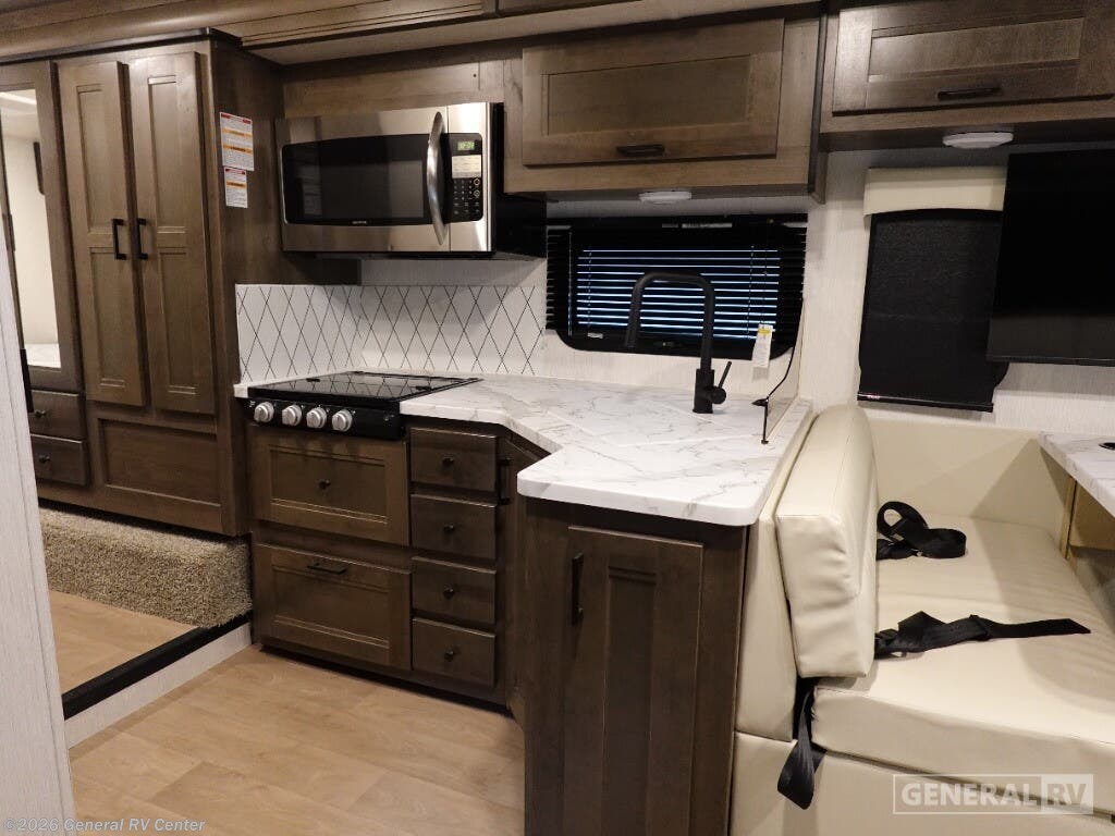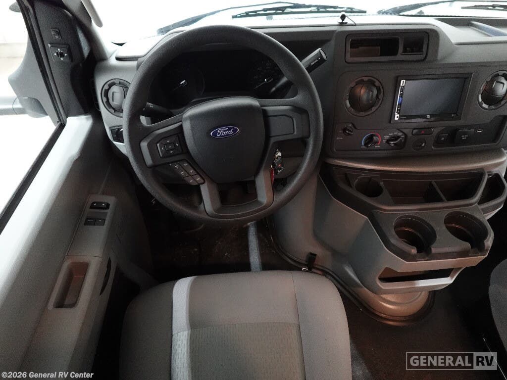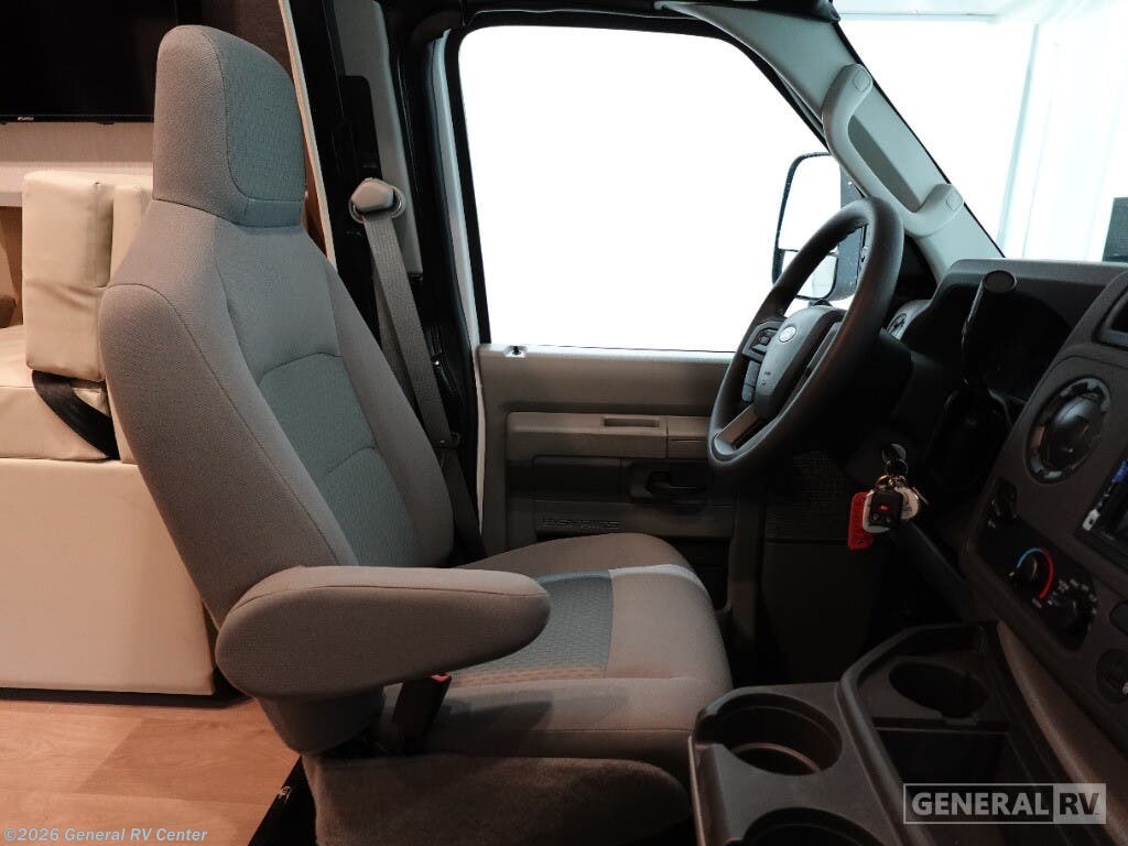 The 2025 NeXus RV Triumph 30T is a masterpiece of modern RV design, offering both comfort and style for your adventures. This motorhome, built on the robust Ford E450 chassis, combines power and reliability with its 325 horsepower engine and 450 lb-ft of torque. Measuring just over 31 feet, it provides a spacious yet manageable driving experience, perfect for families or groups of up to eight. The full-size and queen beds, along with convertible sleeping areas, ensure everyone has a cozy place to rest. The front living area is designed for relaxation, featuring a plush sofa and dinette, ideal for gathering and entertainment. The center kitchen is a chef’s delight, equipped with a full-size electric refrigerator, convection cooking, and a three-burner cooktop, making meal prep a breeze. The center bath, complete with a shower curtain, offers convenience and privacy. As you move towards the rear, the bedroom provides a serene retreat with ample storage, thanks to multiple closets and a dresser. The powered retractable awning invites you to enjoy the outdoors, while the automatic heater keeps you warm on cooler nights. With a 60-amp electrical service and a generous fresh water capacity of 40 gallons, this RV is ready for extended journeys. For more information or to experience the Triumph 30T in person, visit your nearest General RV dealership.