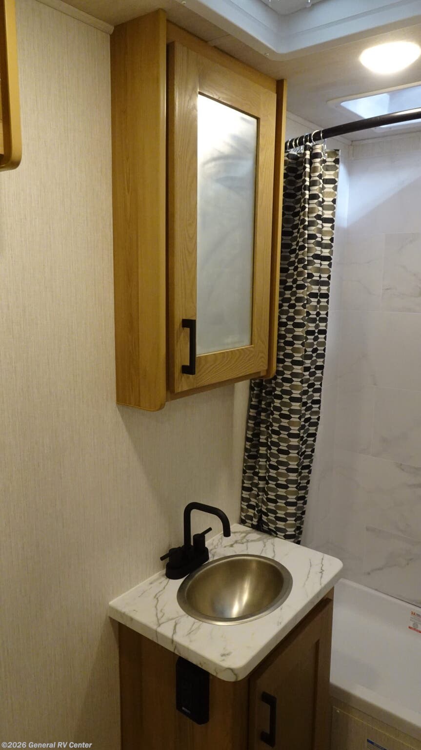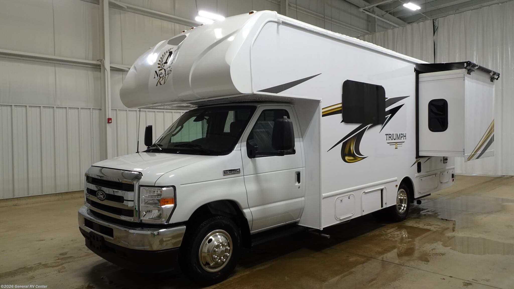 Experience the open road like never before with the 2026 NeXus RV Triumph Sport 22TS. This compact yet spacious RV is built on the reliable Ford E350 chassis, offering a powerful 325 horsepower engine to take you wherever your heart desires. With a sleek length of just over 25 feet, this RV is perfect for both novice adventurers and seasoned travelers. Its aerodynamic design and powered retractable awning ensure that you're always ready for both travel and relaxation. Inside, the Triumph Sport 22TS is designed for comfort and convenience. The front living area welcomes you with a cozy convertible dinette, perfect for meals or game nights. The center kitchen, equipped with a full-size electric refrigerator and a three-burner cooktop, allows you to whip up your favorite meals while on the go. At the rear, unwind in the private bath with a shower curtain for easy access. Sleeping arrangements are a breeze with a queen bed, a full-size bed, and a convertible option, accommodating up to six people comfortably. With ample storage, including a wardrobe and pantry, and a 60-amp electrical service, this RV ensures every journey is as enjoyable as the destination. For more details, visit your nearest General RV dealership.