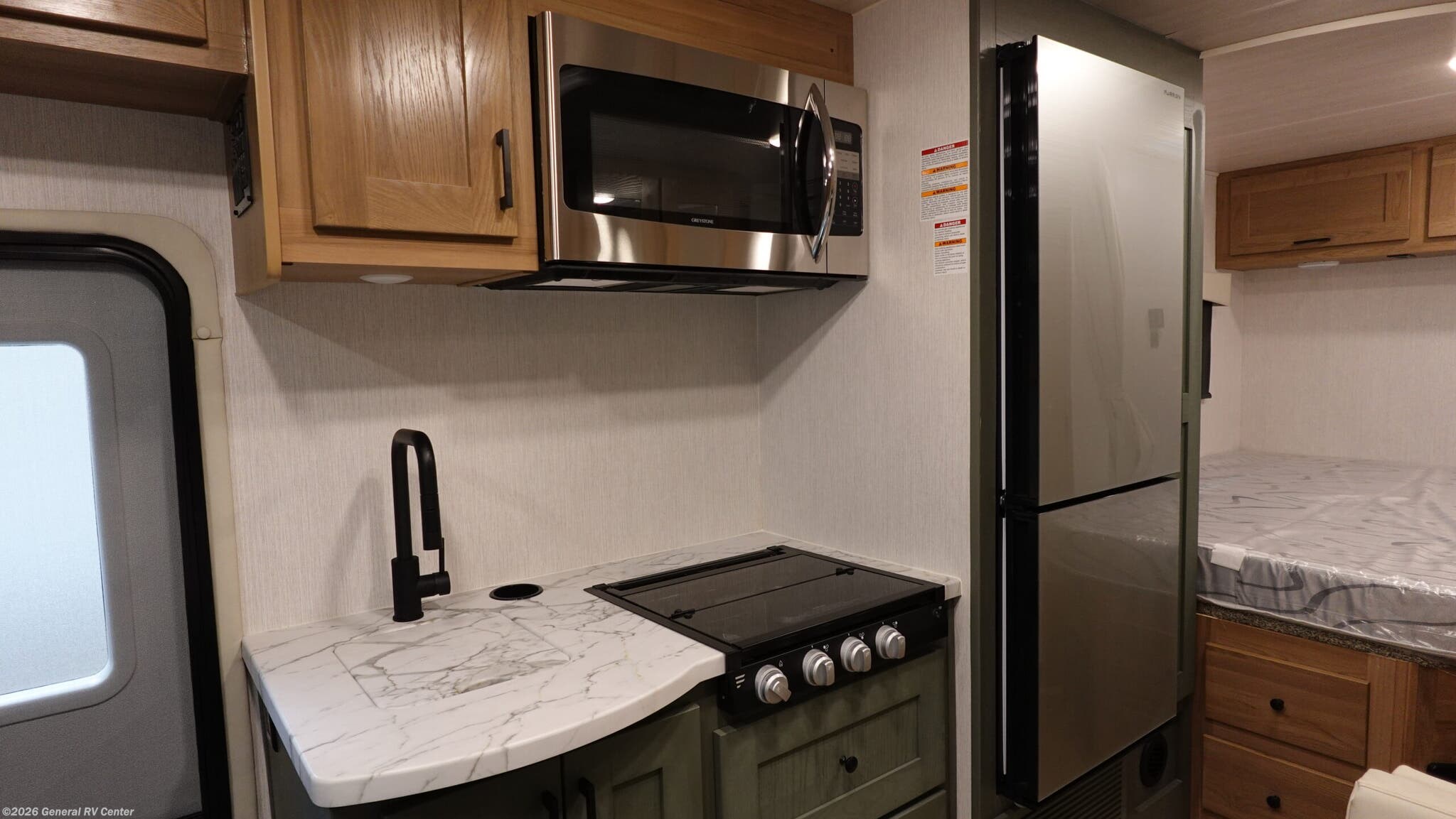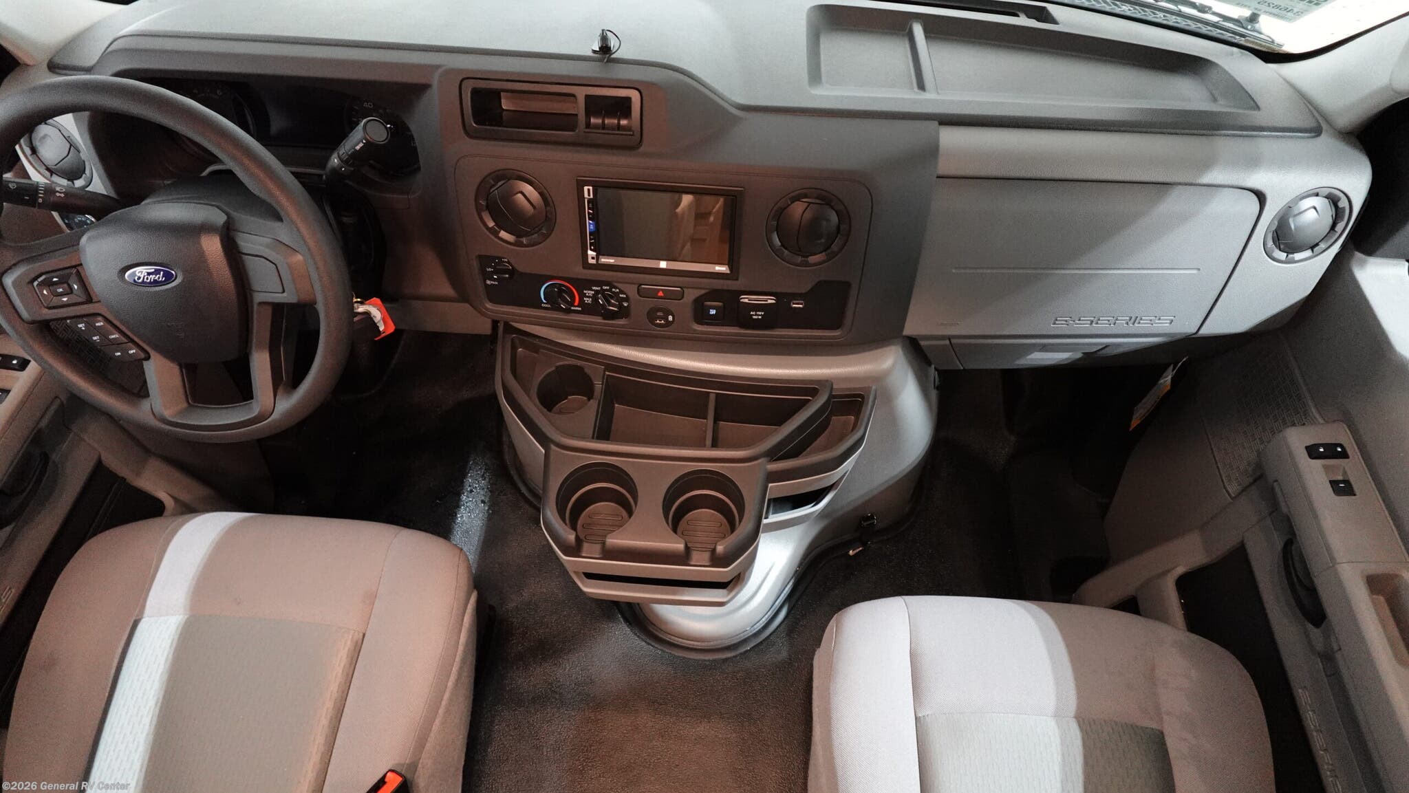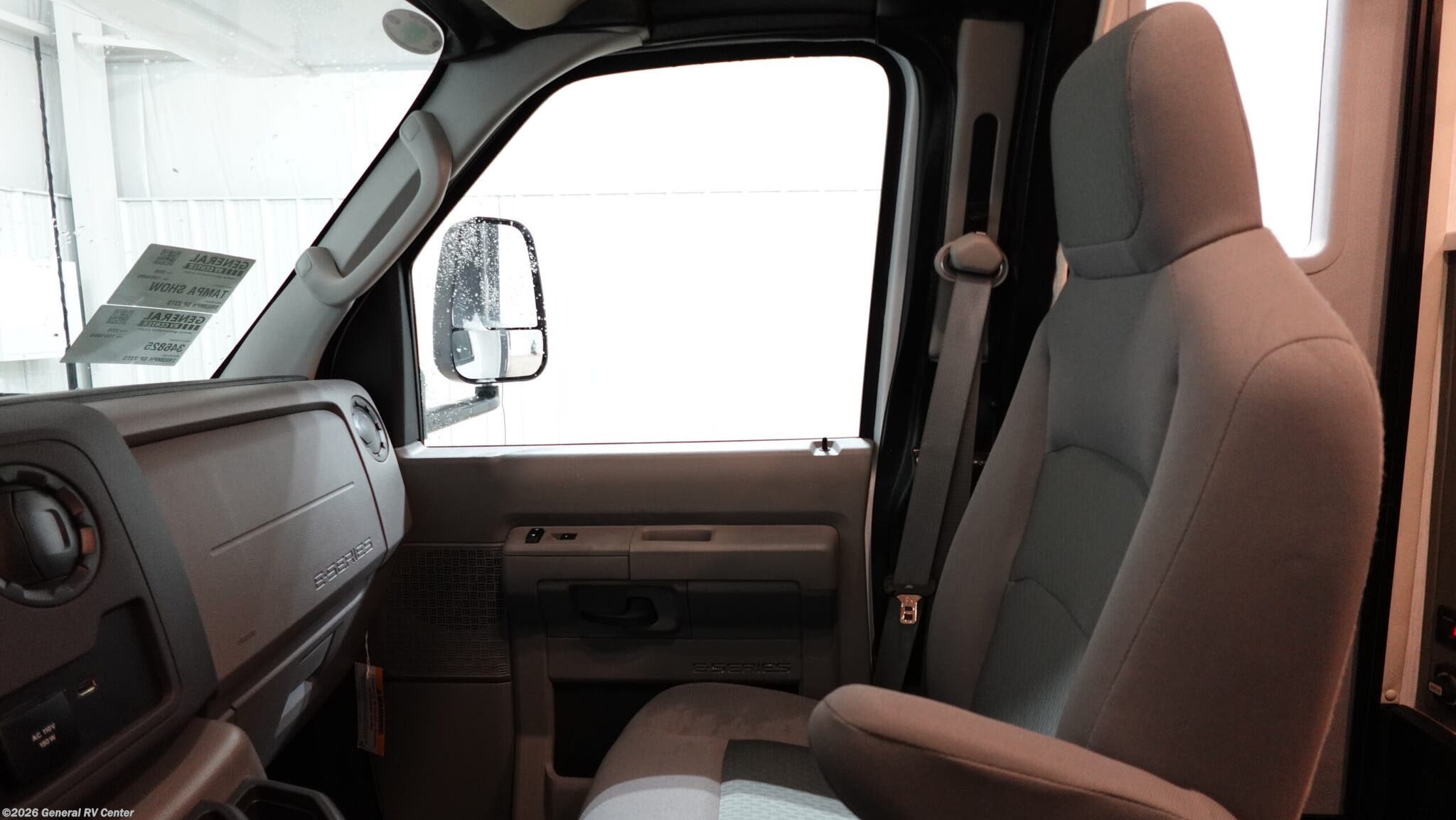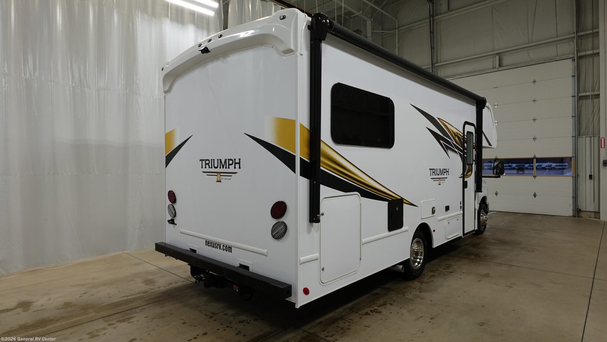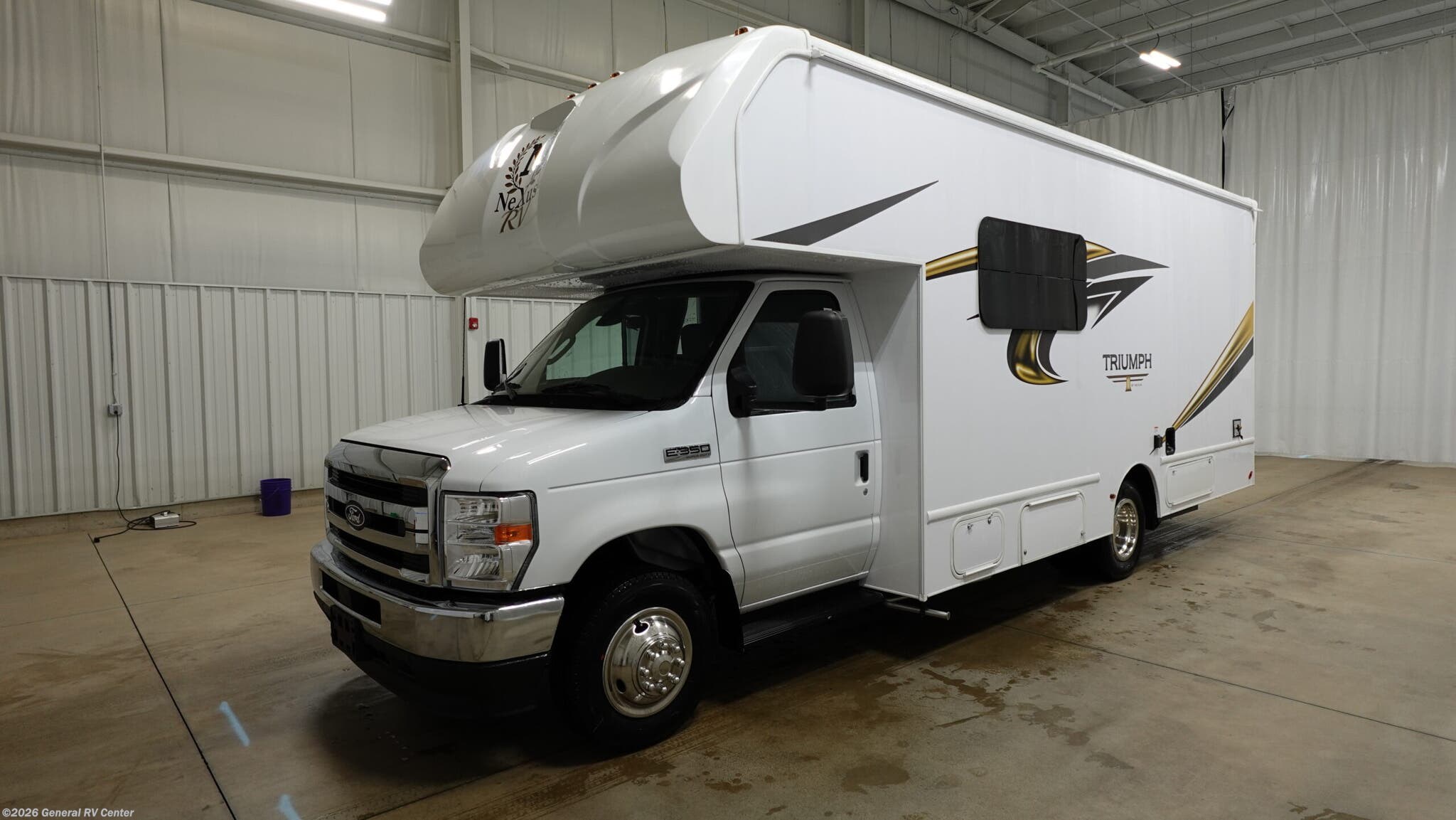 Welcome to the 2026 NeXus RV Triumph Sport 23TS, a compact yet spacious motorhome designed to elevate your travel adventures. Built on the sturdy Ford E350 chassis and powered by a robust 325-horsepower engine, this RV promises a smooth and reliable journey. Its sleek exterior, complemented by a powered retractable awning, invites you to relax and enjoy the great outdoors, rain or shine. Inside, the Triumph Sport 23TS boasts a thoughtfully designed layout that maximizes comfort and functionality. The front living area features a cozy cabover bunk and a convertible dinette, perfect for family meals or game nights. The center kitchen is equipped with a full-size electric refrigerator, three-burner cooktop, and convection cooking capabilities, ensuring you can whip up your favorite meals on the go. Retreat to the rear of the RV where a comfortable queen bed awaits, adjacent to a well-appointed bathroom with a curtain shower. With ample storage, including overhead cabinets and a wardrobe, you'll have plenty of space for all your essentials. Whether you're embarking on a weekend getaway or a cross-country adventure, the Triumph Sport 23TS offers the perfect blend of style, comfort, and practicality. For more information or to see it in person, visit your nearest General RV dealership.