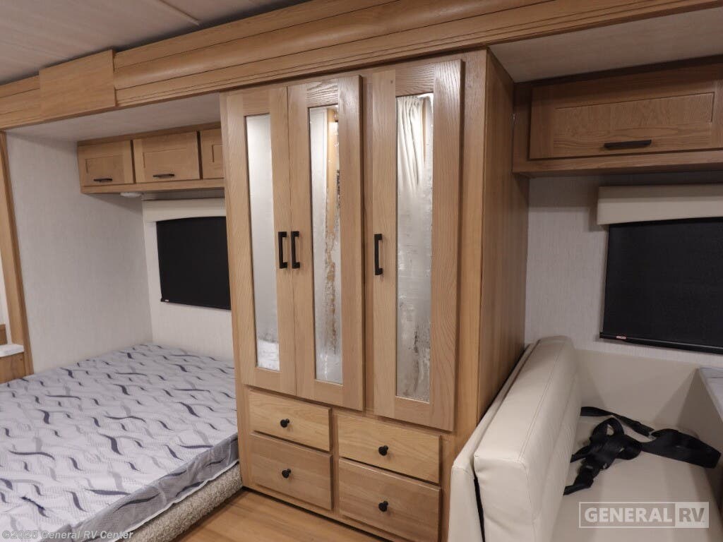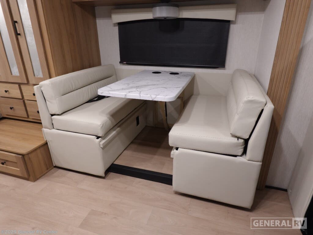Step into the 2026 NeXus RV Triumph Sport 24TS, where adventure meets comfort in a beautifully compact design. This RV is built on the robust Ford E350 chassis, offering 325 horsepower and 450 torque, making it a powerful companion for all your road trips. With a length of 25 feet, it's perfectly sized for both city streets and open highways. The floorplan is thoughtfully designed with a front living area that invites relaxation, while the center kitchen becomes the heart of your travels, featuring a full-size electric refrigerator, convection cooking, and a three-burner cooktop to whip up your favorite meals on the go. Inside, the Triumph Sport 24TS comfortably sleeps up to six, with a queen bed, a full-size convertible bed, and additional sleeping space in the dinette area. The rear bath provides privacy and convenience with a shower curtain setup. Enjoy the outdoors with the powered retractable awning, perfect for creating shaded retreats wherever you park. With a 40-gallon fresh water capacity and ample gray and black water storage, your journey is as self-sufficient as it is exciting. For more details or to experience this RV in person, visit your nearest General RV dealership.