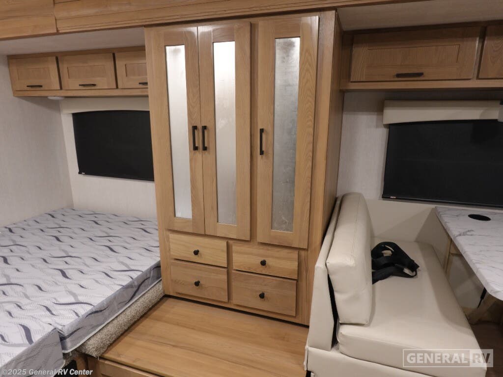Step into the 2026 NeXus RV Triumph Sport 24TS, where adventure meets comfort in a beautifully compact design. This RV is built on the robust Ford E350 chassis, offering 325 horsepower and 450 torque, making it a powerful companion for all your road trips. With a length of 25 feet, it's perfectly sized for both city streets and open highways. The floorplan is thoughtfully designed with a front living area that invites relaxation, while the center kitchen becomes the heart of your travels, featuring a full-size electric refrigerator, convection cooking, and a three-burner cooktop to whip up your favorite meals on the go. Inside, the Triumph Sport 24TS comfortably sleeps up to six, with a queen bed, a full-size convertible bed, and additional sleeping space in the dinette area. The rear bath provides privacy and convenience with a shower curtain setup. Enjoy the outdoors with the powered retractable awning, perfect for creating shaded retreats wherever you park. With a 40-gallon fresh water capacity and ample gray and black water storage, your journey is as self-sufficient as it is exciting. For more details or to experience this RV in person, visit your nearest General RV dealership.