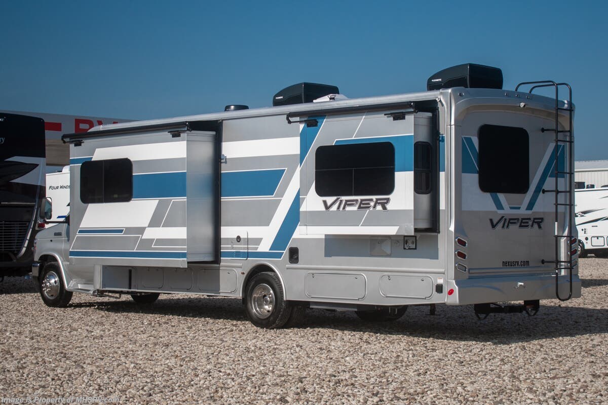 M.S.R.P. $190,733- New 2026 Nexus Viper B+ 29V RV for Sale at Motor Home Specialist; the #1 Volume Selling Motor Home Dealership in the World. This unit is approximately 30 feet 8 inches in length. Options include the viper value package, electric blue full body paint, convection microwave, oven, second A/C with EMS, TV in bedroom, outside entertainment center, gateway 4G LTE wifi router, glass shower door, theater seats, swivel passenger seat, roof ladder, side view camera, full automatic leveling jacks, heated and remote mirrors. This amazing B+ RV also features the Viper Value Package which includes a water filtration system throughout, composite substrate in walls & roof IPO wood, High strength low alloy steel frame, HVAC metal ducting and an outside shower. Additional features found in the Nexus RV include galvanized steel storage boxes, heated and enclosed holding tanks. Strength, Safety and Customer Satisfaction are the 3 cornerstones found in every Nexus RV. The construction of the Nexus RV far exceeds the industry norm. First, and arguable foremost, the Nexus RV boast an all STEEL cage construction instead of the normal aluminum framed construction found in the competition. Steel cage construction is 72% stronger than aluminum and is only common place on RVs such as the Foretravel Realm or a Prevost bus conversion; both of which would have an M.S.R.P. value well over $1 million dollars! That same commitment to strength and safety is found throughout the Nexus line-up. You will also find construction highlights such as 2 layers of Azdel substrate in the sidewalls & roof! The Azdel product provides 3X the insulation value of wood and is 50% lighter which will help optimize your engine’s performance and fuel economy, and because it is not a wood material harvested from the rain forest it is both greener and provides a less that 1% chance of retaining any moisture that could ever lead to wall separation or mold. It is also formaldehyde free, impact resistant and a sound absorbing material creating a much quieter RV. To further protect and insulate the RV from the elements Nexus utilizes high grade UV protected automotive window seals. The roof is a pre-stamped metal roof truss system that is further highlighted by the exterior layer of seamless fiberglass as opposed to the normal TPO or "rubber roofs" found in most RVs built today. The steel roof is also designed to incorporate Nexus RV's Easy-Flow Air Distribution system. This HVAC ducting is a tried-and-true system that provides more evenly distributed A/C throughout the coach as well as helps promote cleaner air and reduce allergens. Shop hundreds of class C gas RVs at 1 location! Choose from Fleetwood Altitude - Gulf Stream BT Cruiser - Thor Chateau - Four Winds - Geneva and Quantum - Entegra Coach Odyssey Odyssey SE and Esteem - East to West Entrada - Forest River Forester - Forester LE - Nexus Phantom - Viper and much more. We also sell quality pre-owned models such as Jayco Greyhawk – Redhawk - Redhawk SE - Thor Magnitude - Winnebago Spirit - and Minnie Winnie - Coachmen Freelander and Leprechaun - Forest River Sunseeker Classic - Sunseeker LE – Solera - Holiday Rambler Incline and much more. Visit for our complete line-up and the sale prices that have made us the #1 volume selling motor home dealership in the world 12 years in a row! For additional details on this unit and our entire inventory including brochures, window sticker, videos, photos, reviews & testimonials as well as additional information about Motor Home Specialist and our manufacturers please visit us at or call 800-335-6054. At Motor Home Specialist, we DO NOT charge any prep or orientation fees like you will find at other dealerships. All sale prices include a 200-point inspection, interior & exterior wash, detail service and a fully automated high-pressure rain booth test and coach wash that is a standout service unlike that of any other in the industry. You will also receive a thorough coach orientation with an MHSRV technician, a night stay in our delivery park featuring landscaped and covered pads with full hook-ups and much more! Read Thousands upon Thousands of 5-Star Reviews at and See What They Had to Say About Their Experience at Motor Home Specialist. WHY PAY MORE? WHY SETTLE FOR LESS?